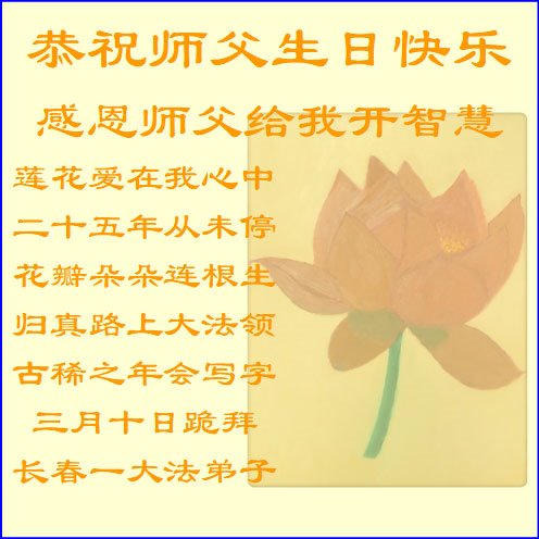 “修炼法轮大法让我对很多事情有了不同的理解,也让我越走越踏实。我感到非常荣幸能有机会修炼法轮大法,感恩大法师父。”