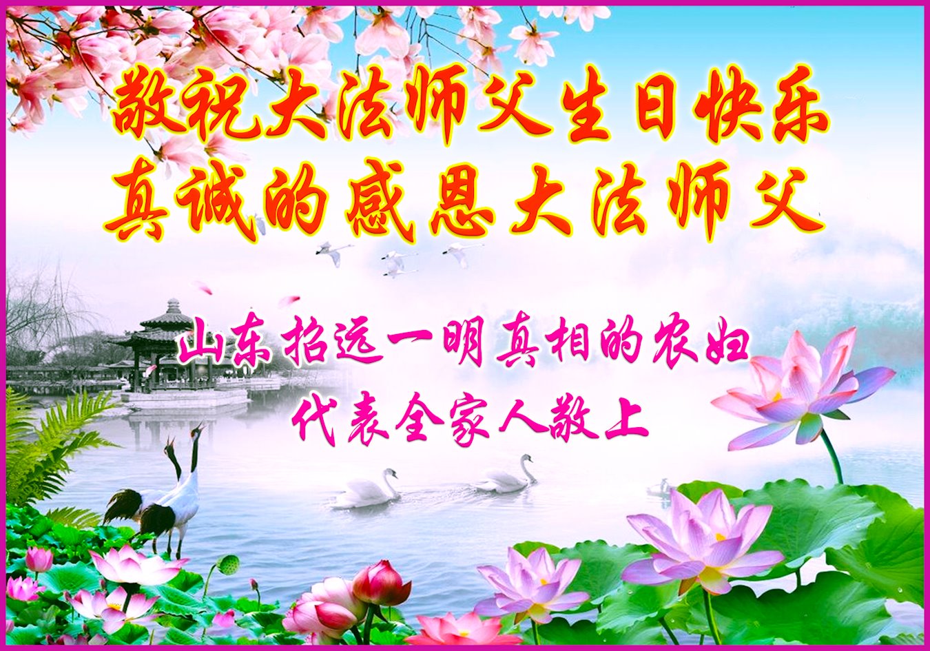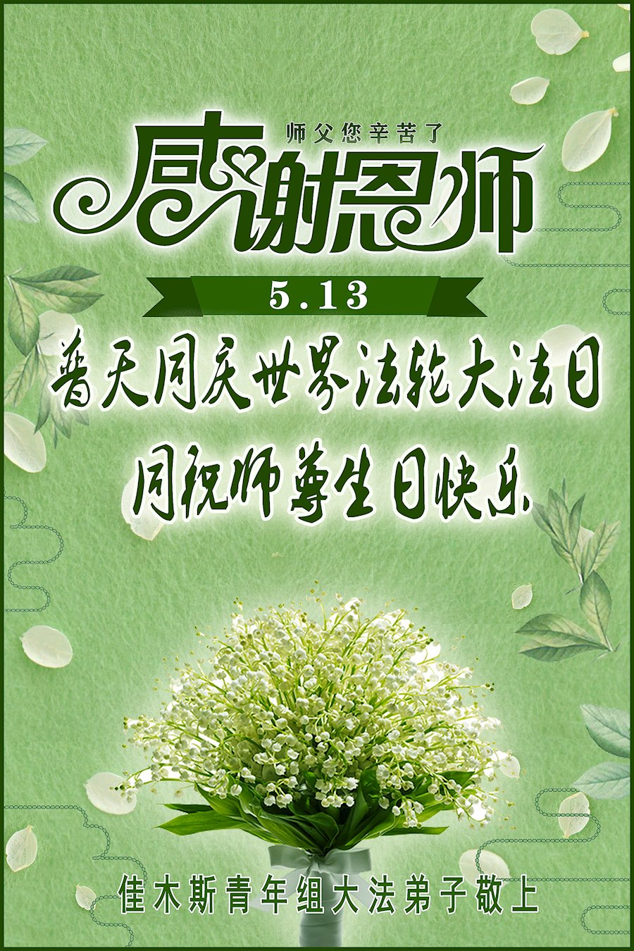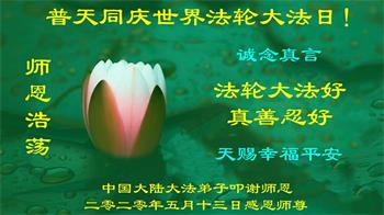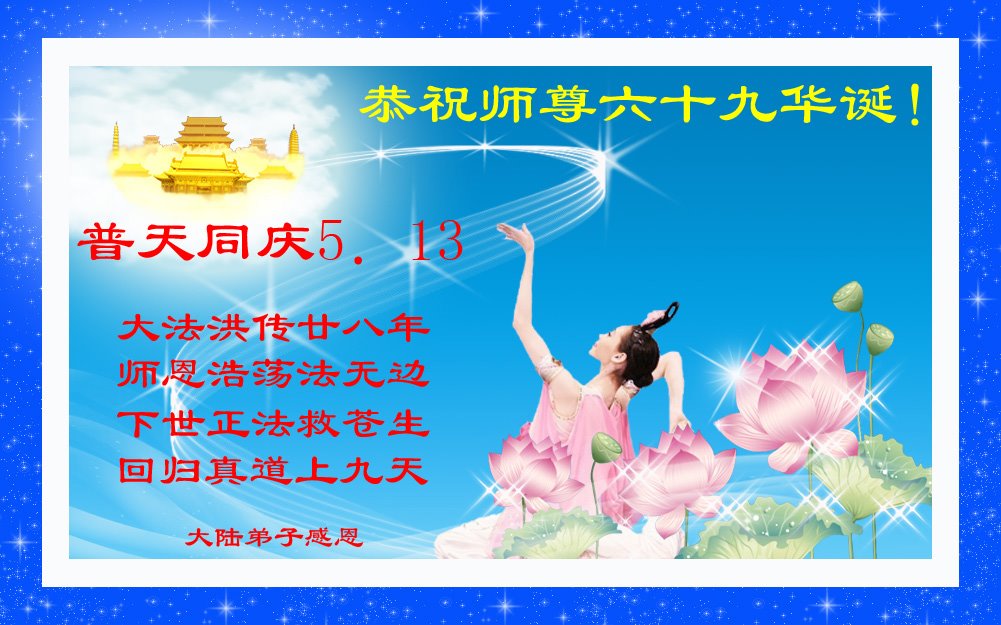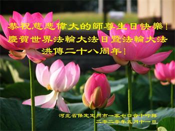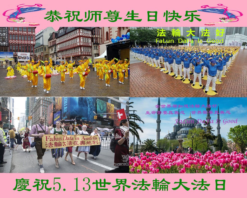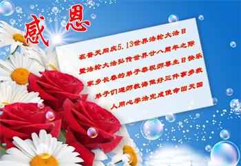 他们在各自的环境中践行着法轮大法“真、善、忍”原则,获得身心健康和道德升华,并把修炼的美好带给身边的人。回首二十多年的修炼路,学员们对李洪志师父的感恩无以言表,唯有“感谢师恩,感谢师恩,感谢师恩”。