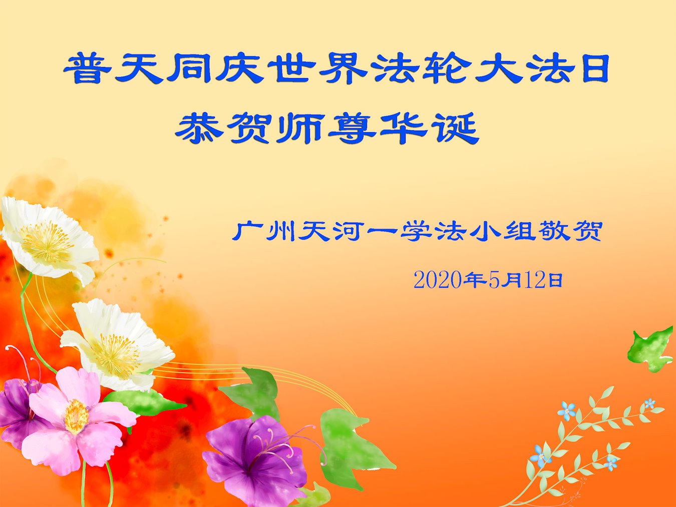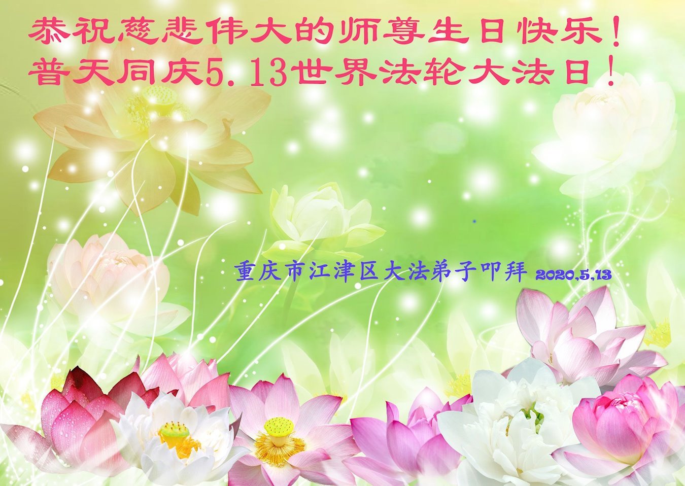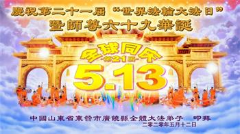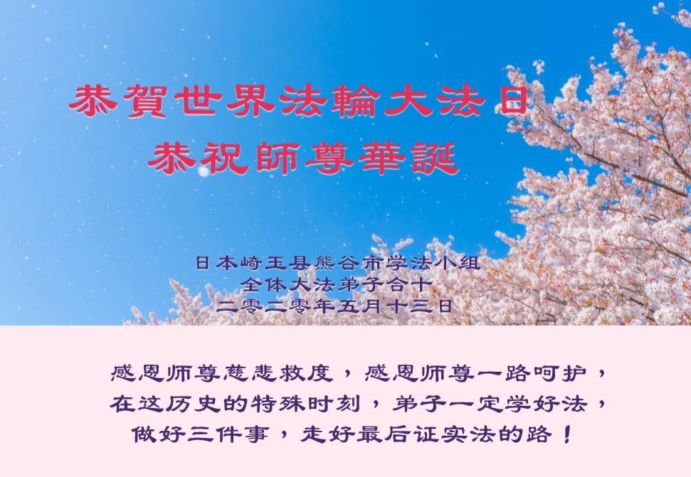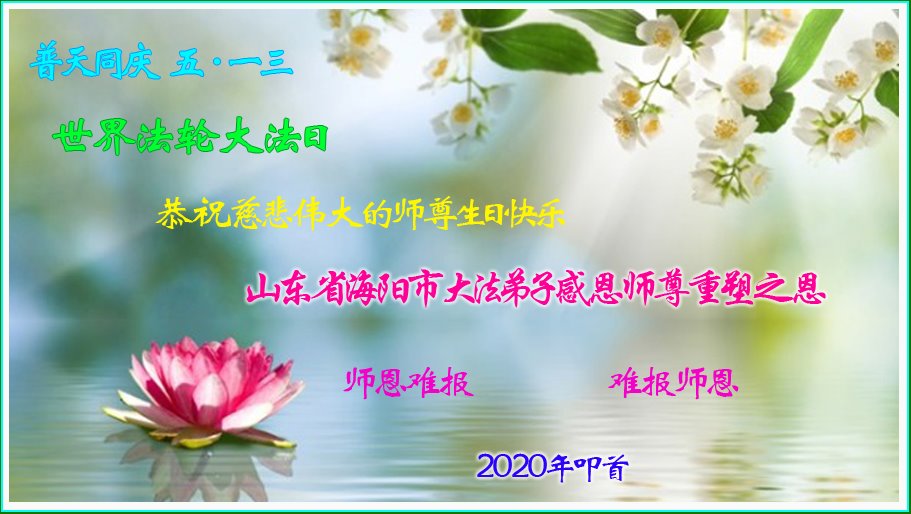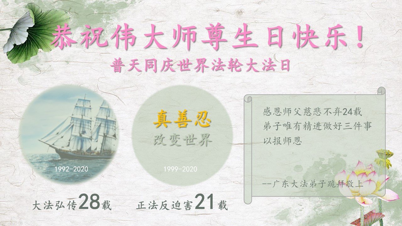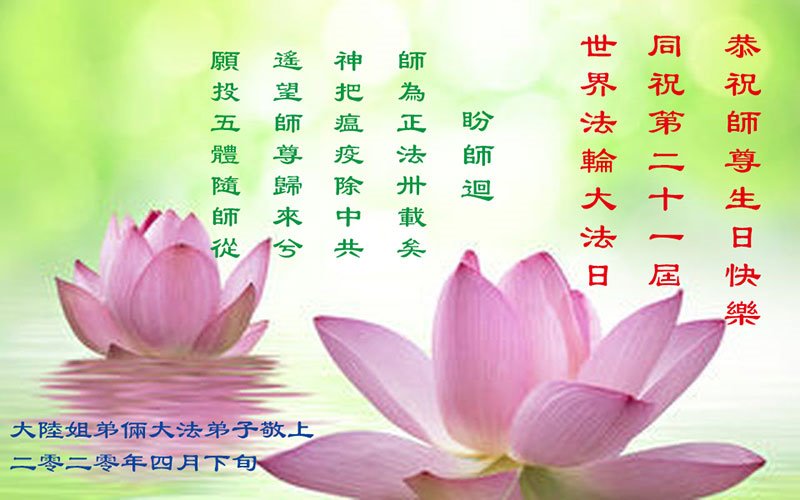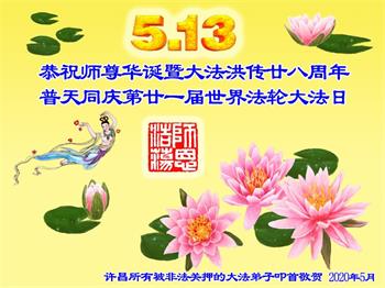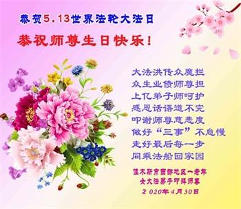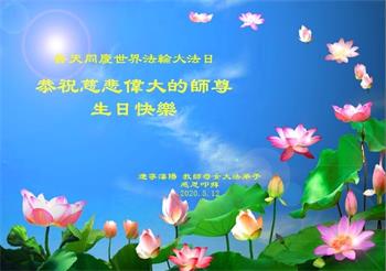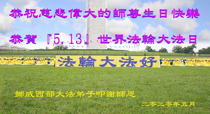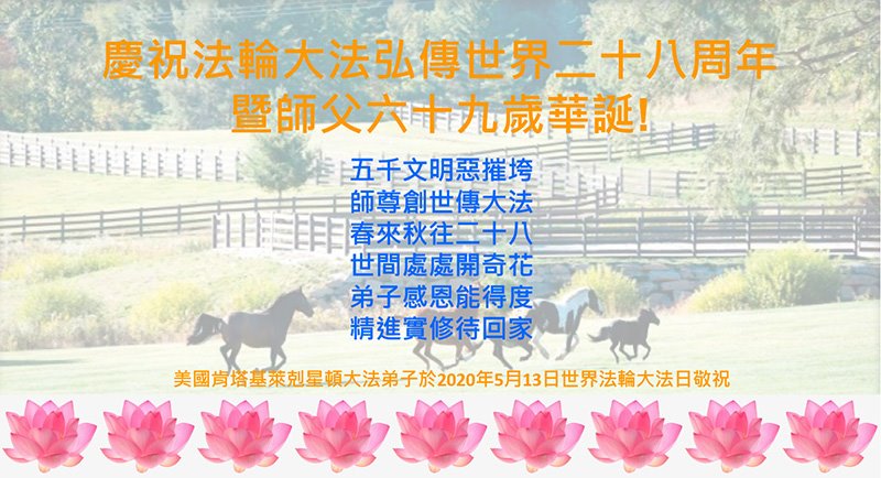 【明慧网二零二零年五月十四日】今年五月十三日是“第二十一届世界法轮大法日”,大法弘传二十八周年,暨大法李洪志师父六十九华诞。二零二零年五月十日,美国首都华盛顿及周边地区的法轮功学员通过网络庆祝法轮大法日,一些学员回忆了李洪志师父一九九六年以来在美国和世界各地传法的珍贵故事,也交流了学法修心的心得体会。
