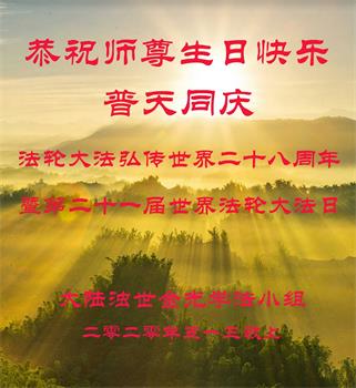 “法轮大法让我神性复苏,第一次明白了生命的意义。没有语言能表达我对李洪志师父的感恩。”