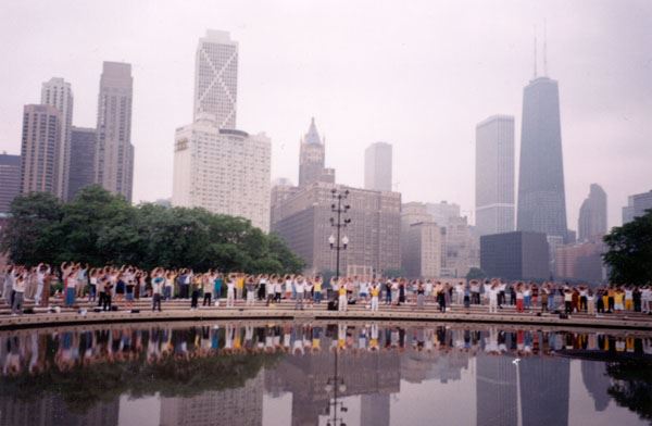一九九八年在马里兰大学的中国新年欢庆上,看到有人在摊位上介绍法轮功。出于好奇,他拿了一份传单回去,根据网址找到了《转法轮》,一口气读完,感觉很好,就去了炼功点。第一次抱轮的时候能量场很强,好象有球在来回荡漾,因为他练过很多气功,知道这个功法不简单。就这样,走入了法轮功的修炼。