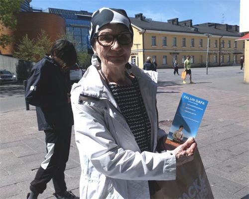 莉娜(Nina)是一位芬兰瑞典人。她也是直接过来签名支持法轮功反迫害。她说:“我的兄弟一直致力于智利的人权工作,反对当时的独裁政权(皮诺切特独裁政权)。所以我知道你们所做的事情是非常重要。”她还说:“祝你们好运!中共掩盖太多,现在是时候让世界清醒了。我们有很多事情可以做。”