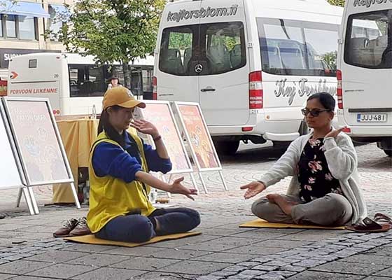 芬兰法轮功学员6月18日在波尔沃市举办活动,向市民弘扬法轮大法的美好,揭露中共对法轮学员残酷迫害,甚至活摘法轮功学员器官的罪行。