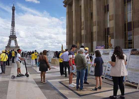 六月二十八日,巴黎法轮功学员又来到了巴黎著名的人权广场,向民众展示法轮功的美好,同时也揭露发生在中国大陆对法轮功及其修炼者的残酷迫害与镇压的恶行。
