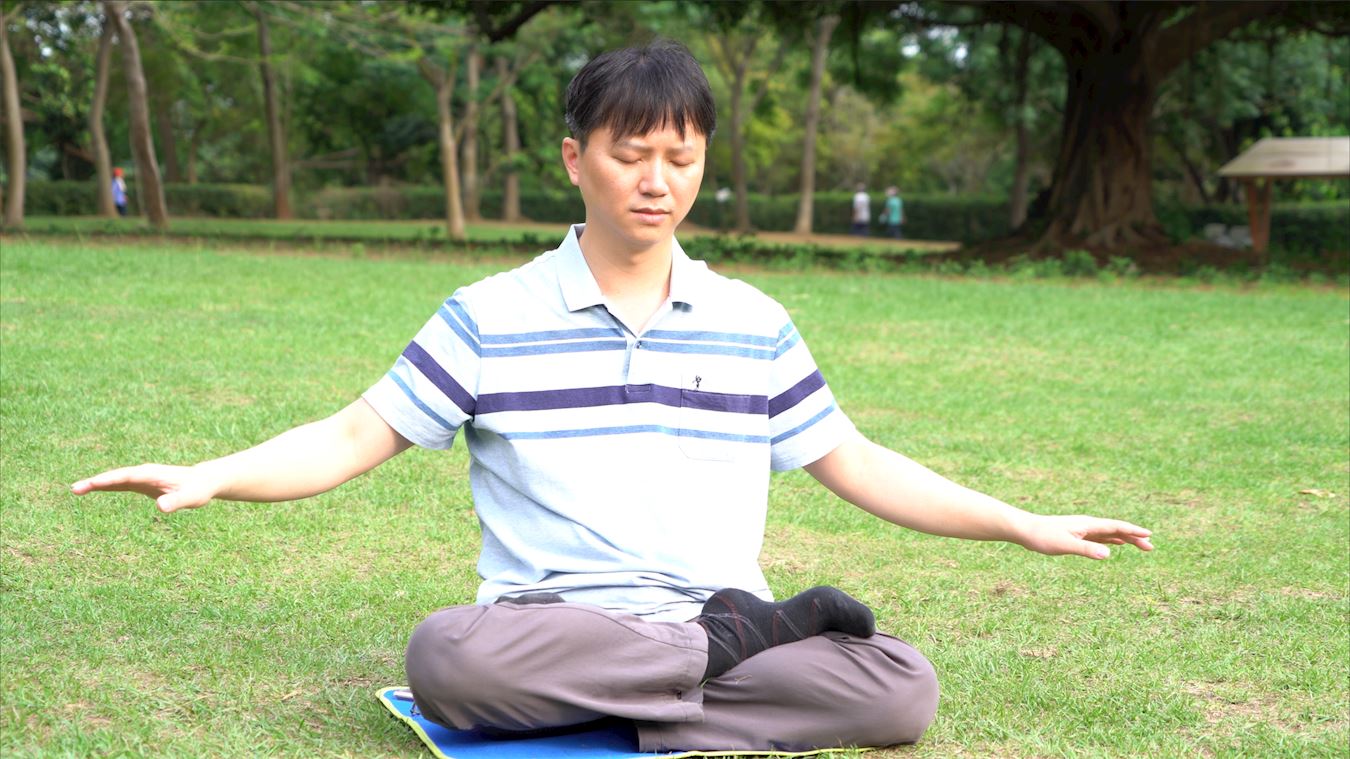 ![]() 图2:黄士维正炼法轮功第五套功法——神通加持法。 |