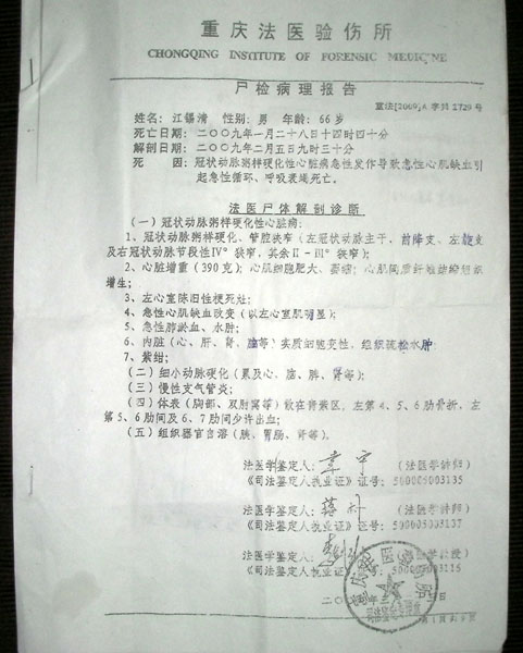 申银秀十年前头部患有肿瘤病,应该手术但是没有做,平时常头痛。最近被疑为脑中风,住院治疗。她在参加学习班的当天凌晨三点出院,在医院的候诊室呆了一段时间,没有回家直接就来到九天班学习,那天只睡了四个小时。