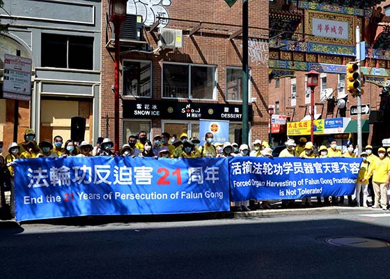 七月十八日,美国大费城地区部份法轮功学员数十人,在美国国家独立历史公园的费城自由钟广场和中国城举办活动,纪念法轮功学员反迫害二十一周年。