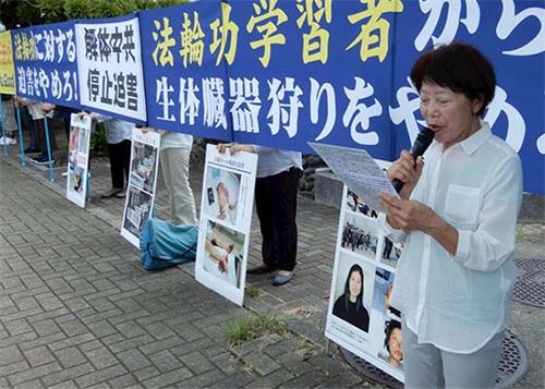 日本熊本地区的法轮功学员7月19日先后在福冈中领馆和长崎中领馆前,抗议中共邪党对法轮功长达21年的残酷迫害。