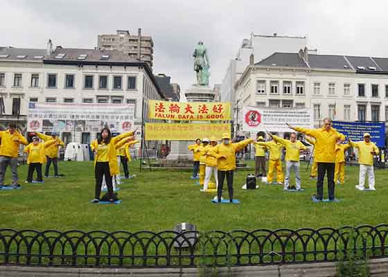 七月十六日,法轮功学员在比利时首都布鲁塞尔举办活动,揭露中共对法轮功长达二十一年的残酷迫害。