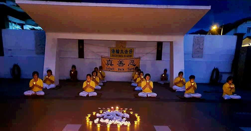 七月二十日同一天,巴生加埔路炼功点部份法轮功学员于傍晚七点三十分举行了烛光悼念,悼念被中共迫害致死的无数法轮功学员。