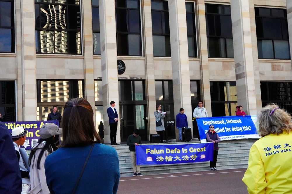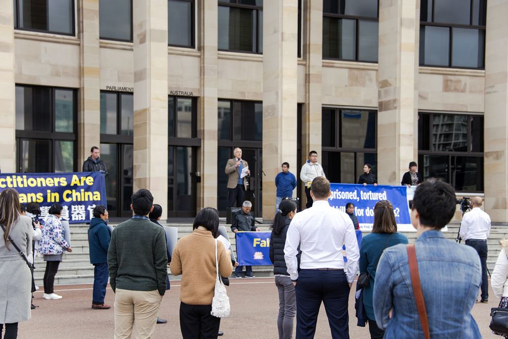 现场发言嘉宾包括西澳政治和法律界人士,他们支持法轮功学员21年来反迫害的和平诉求。