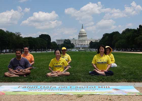 二零二零年七月四日(周六)是美国独立日,当天上午,有多位法轮功学员来到美国国家广场集体炼功,向过往的民众传播法轮功的美好和真相。