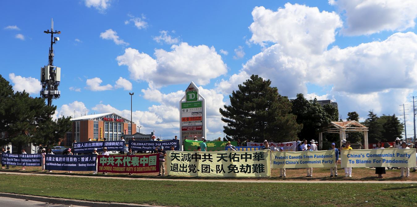 ![]() 图1~3:二零二零年八月八日上午,多伦多法轮功学员和民众在大多伦多地区的万锦市的太古广场前,举行了声援三退大潮的集会和汽车游行。 |