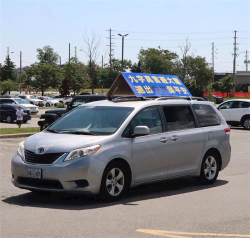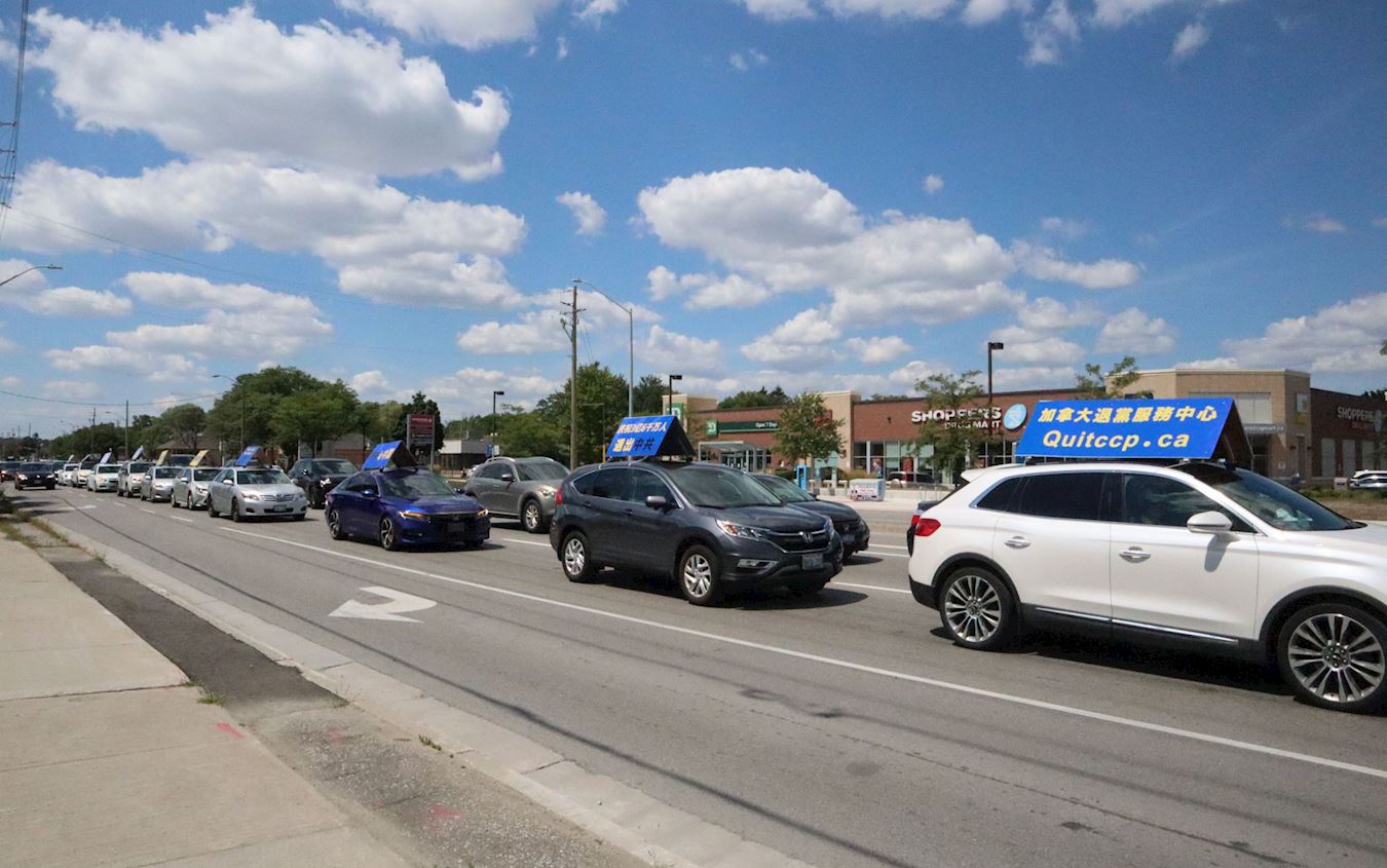 集会结束后,法轮功学员们用汽车真相展板的形式组成“真相车队”,33辆汽车从太古广场沿三条线路出发,来回巡游,在华人聚居的士嘉堡、万锦市及约克区的主要繁忙街道,包括芬奇大街(Finch Ave.)、斯蒂尔斯大街(steels Ave.)及7号公路(HWY 7)等来回巡游,时间持续1个半小时。