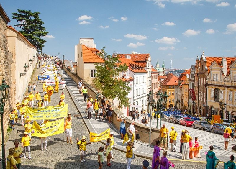 【明慧网二零二零年八月十三日】二零二零年八月八日至九日两天,欧洲法轮功学员在捷克首都布拉格举行了盛大集会、游行。欧洲多个国家的法轮功学员,克服了疫情带来的各种障碍,冒着高温酷暑,聚集布拉格,向有缘相遇的世人展示法轮大法的美好,警示人们远离邪恶中共。