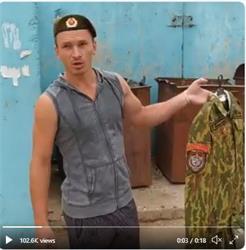 '一位白俄罗斯军人把军服扔到了垃圾桶(网络截图)'