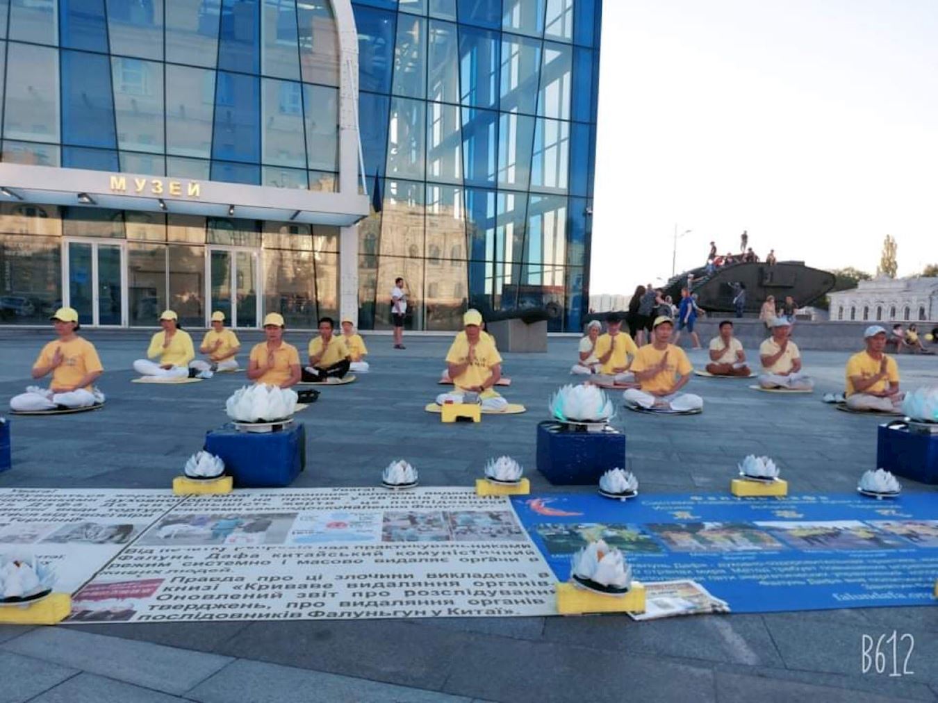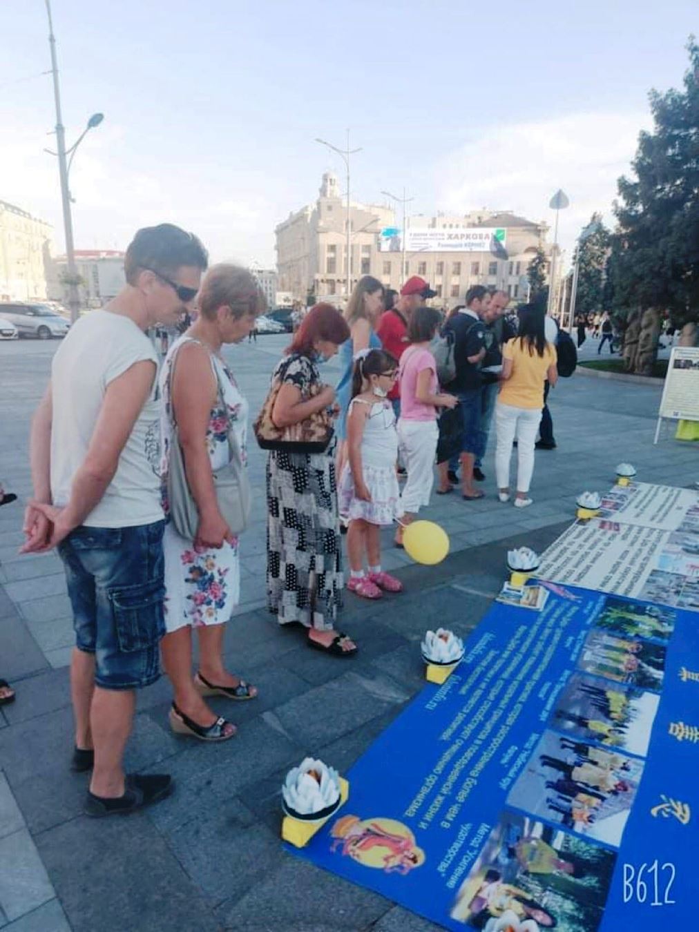 '图5:哈尔科夫市民众认真阅读法轮功真相。'