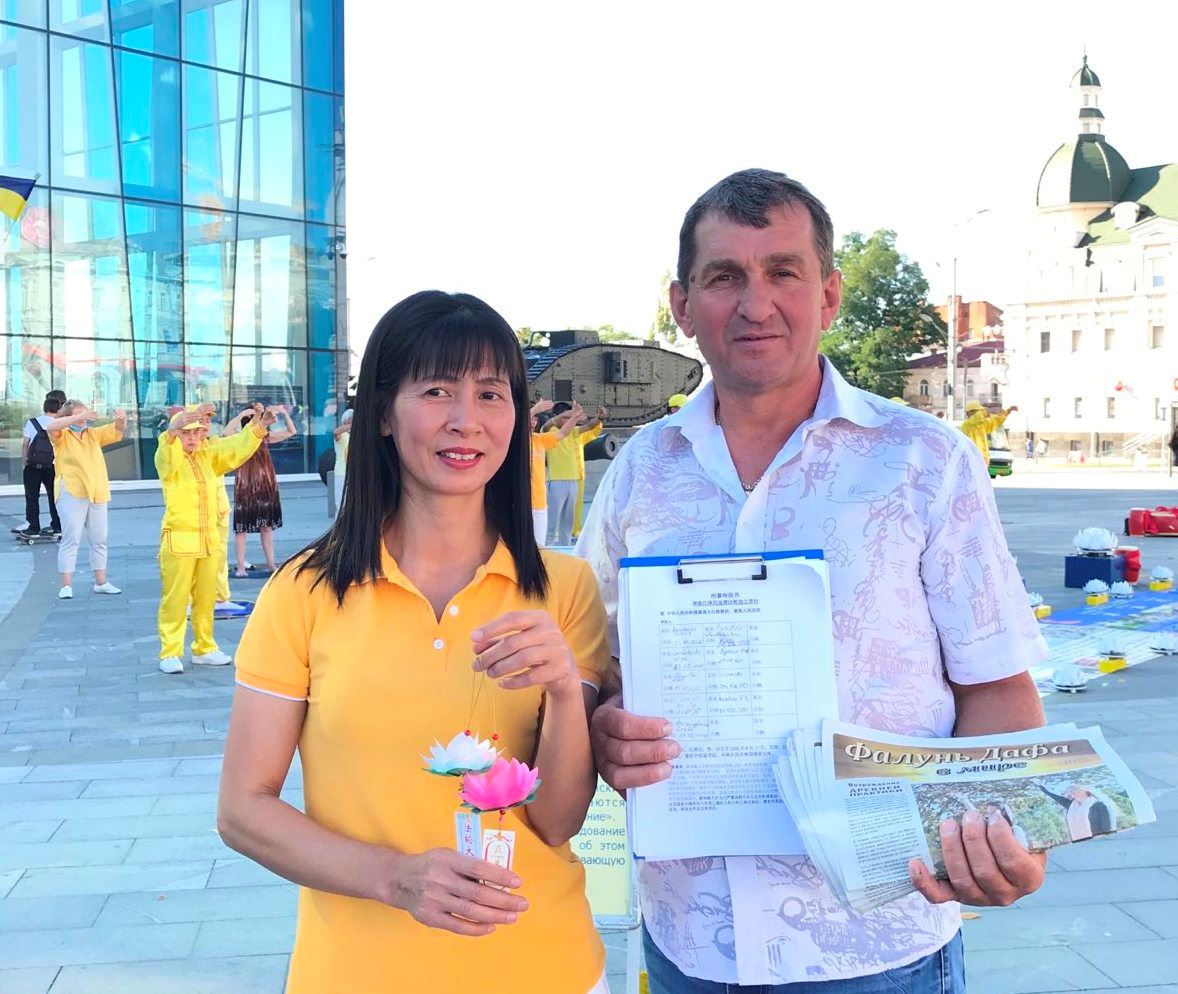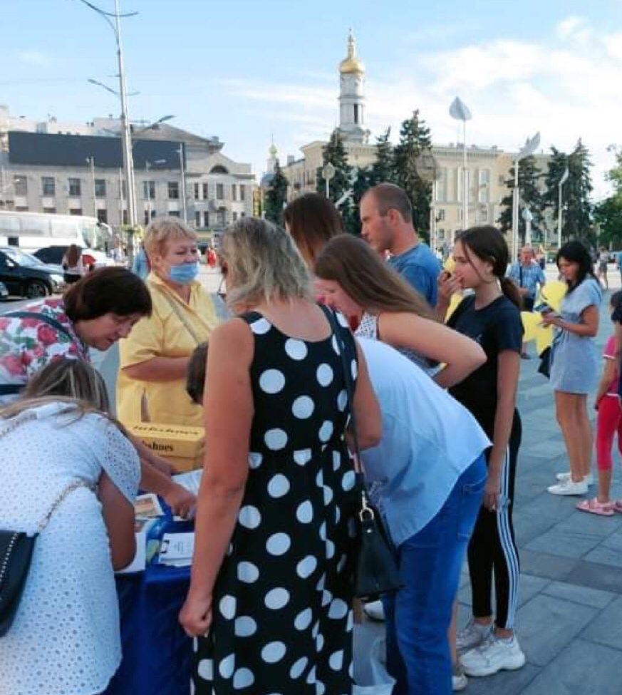 【明慧网二零二零年八月二十八日】二零二零年八月二十四日是乌克兰国家独立日,第涅伯罗市和哈尔科夫市举行庆祝活动。法轮功学员参加庆祝活动,与民众分享“真善忍”信仰的美好,获得民众的支持。