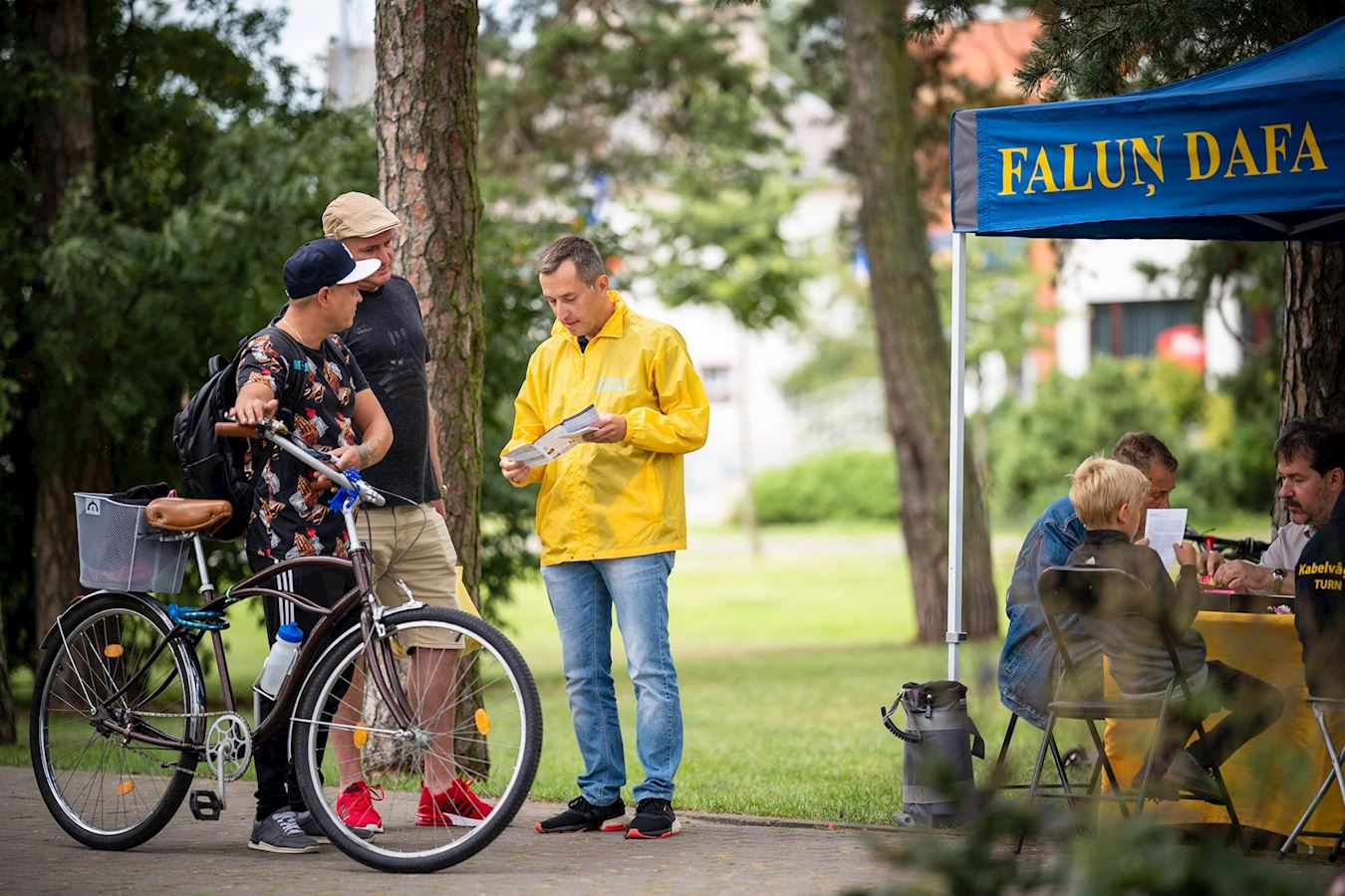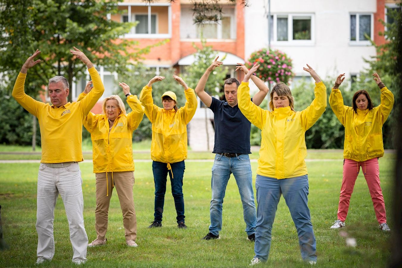 有一家人路过Dubulti活动地点,当他们看到法轮功学员的帐篷后,径直过来。法轮功学员告诉他们,有兴趣的人都有机会认识法轮大法,全球包括拉脱维亚在内已有一百多个国家和地区的人都在修炼法轮功。法轮功是基于“真、善、忍”的准则,在日常生活中,学员们努力遵循这个准则去做,还有五套简单易学的功法,能提高人的身体素质和道德水准,提升人的精神层面。