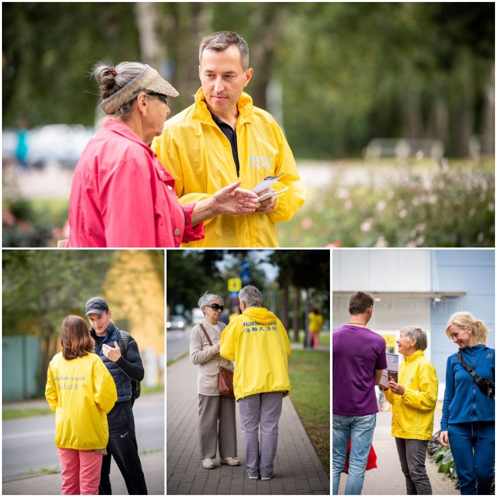 很多人祝福法轮功学员,不少人想进一步了解法轮功和在拉脱维亚的炼功点,人们踊跃在请愿书上签名,谴责中共迫害,并感谢法轮功学员的无私奉献。