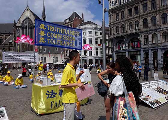 荷兰学员四大城市传播真相 民众支持