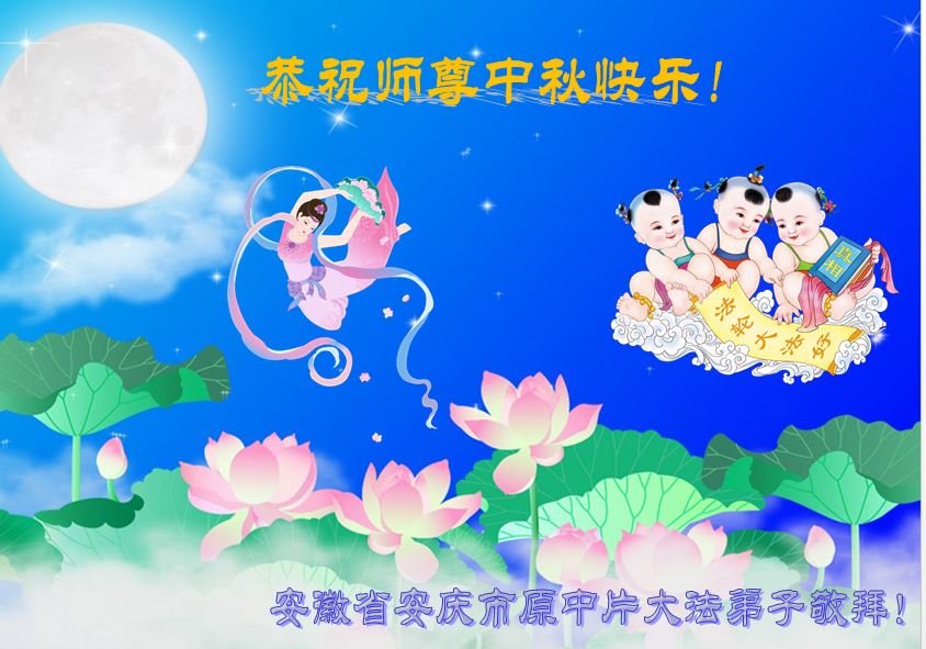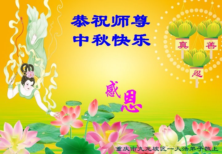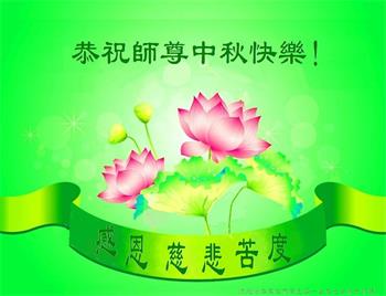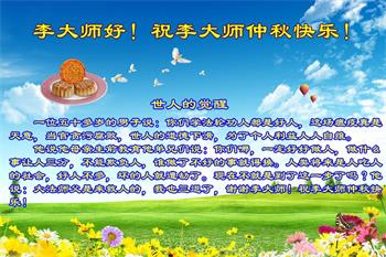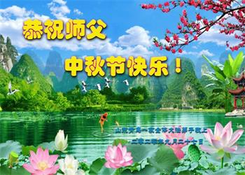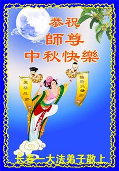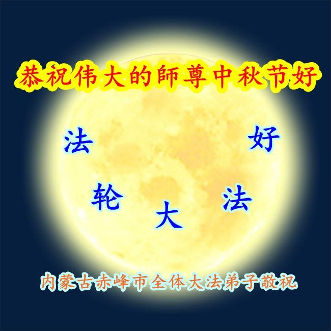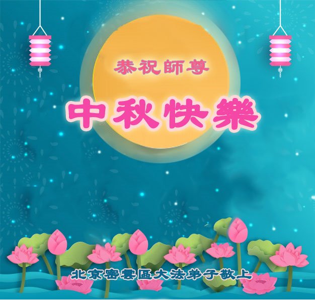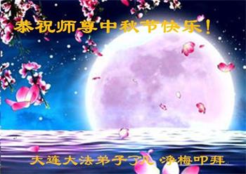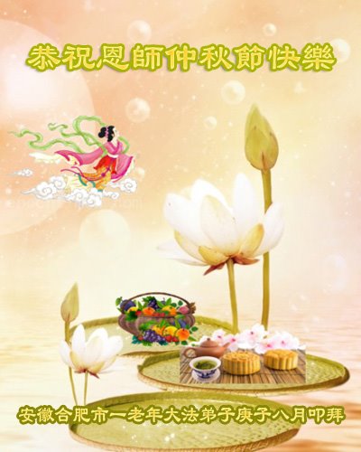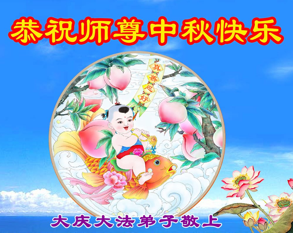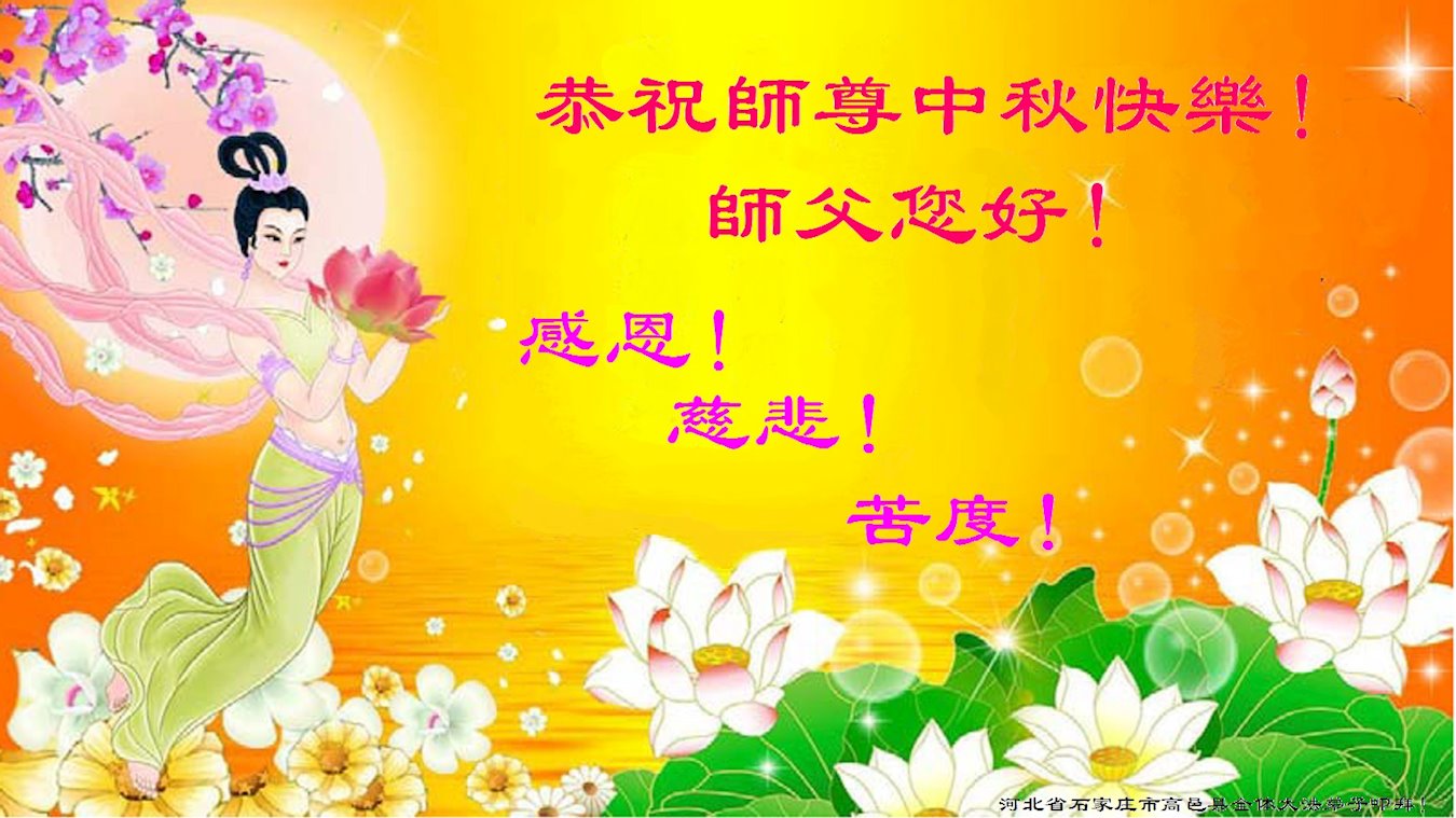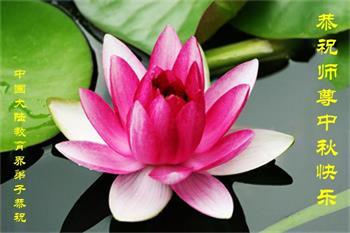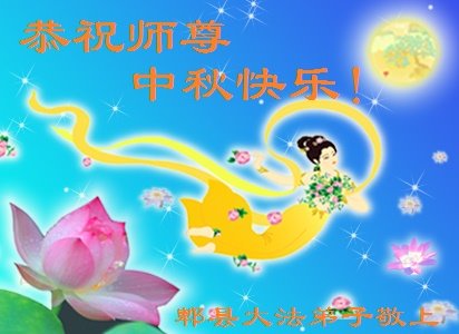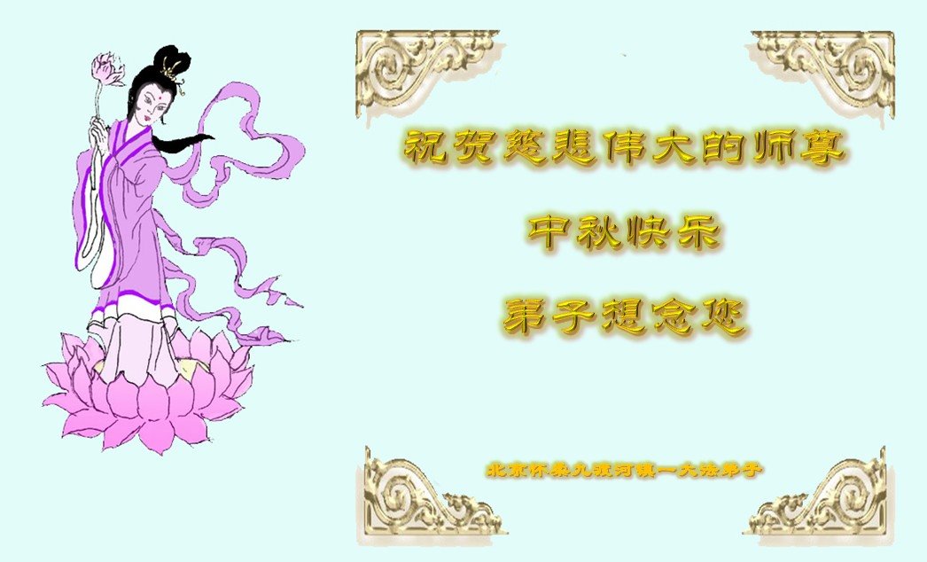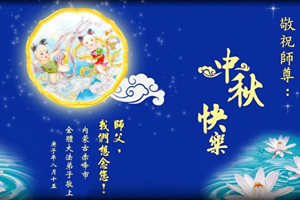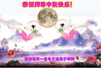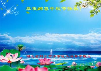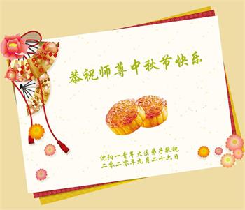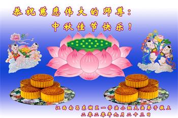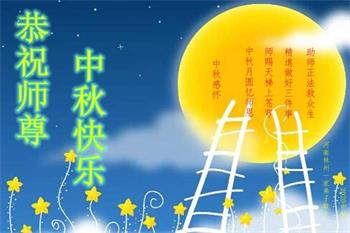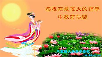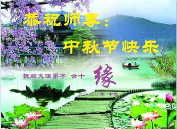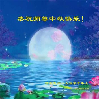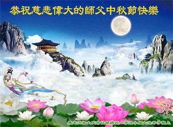 中国民众在贺词中写道:在中秋节来临之际,感恩大法师父的慈悲保护!我们盼望您早日回归中土,恩泽百姓,让亿万个家庭解开中共的枷锁,让中华民族五千年的文明在中原再现。
