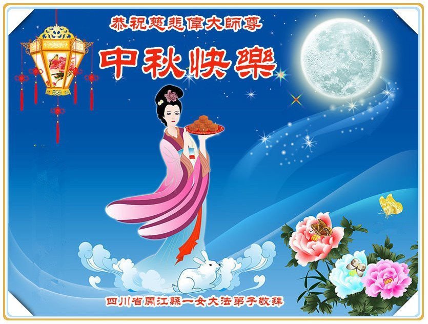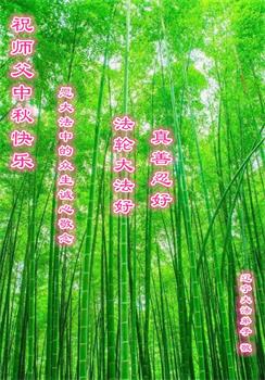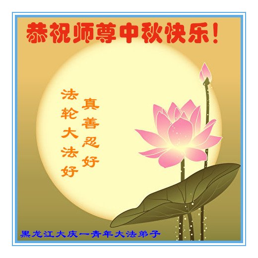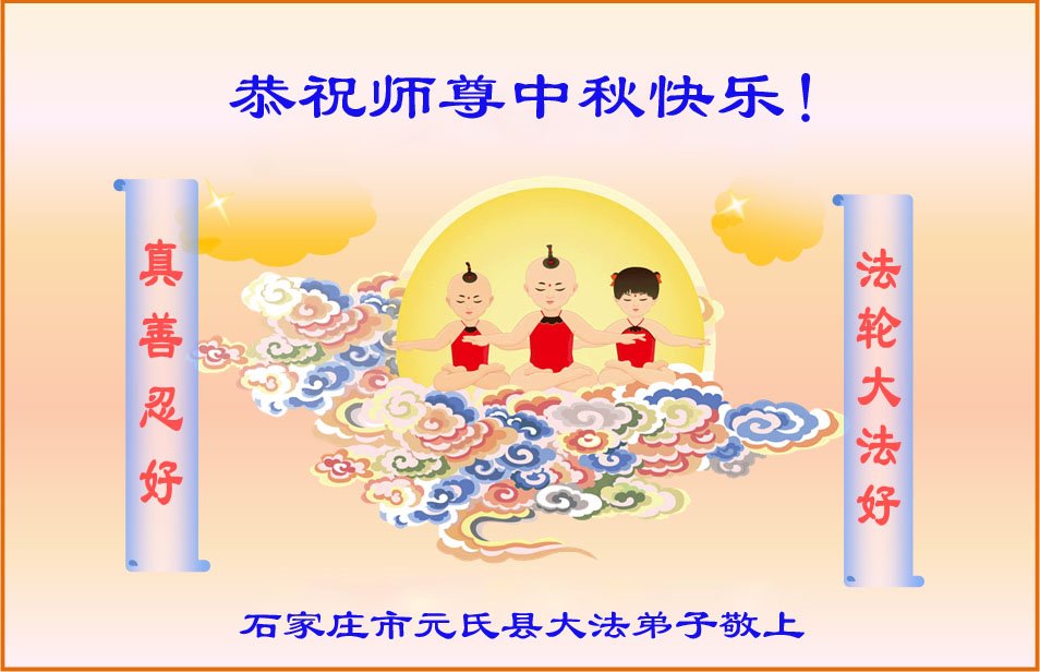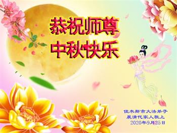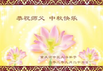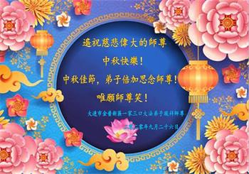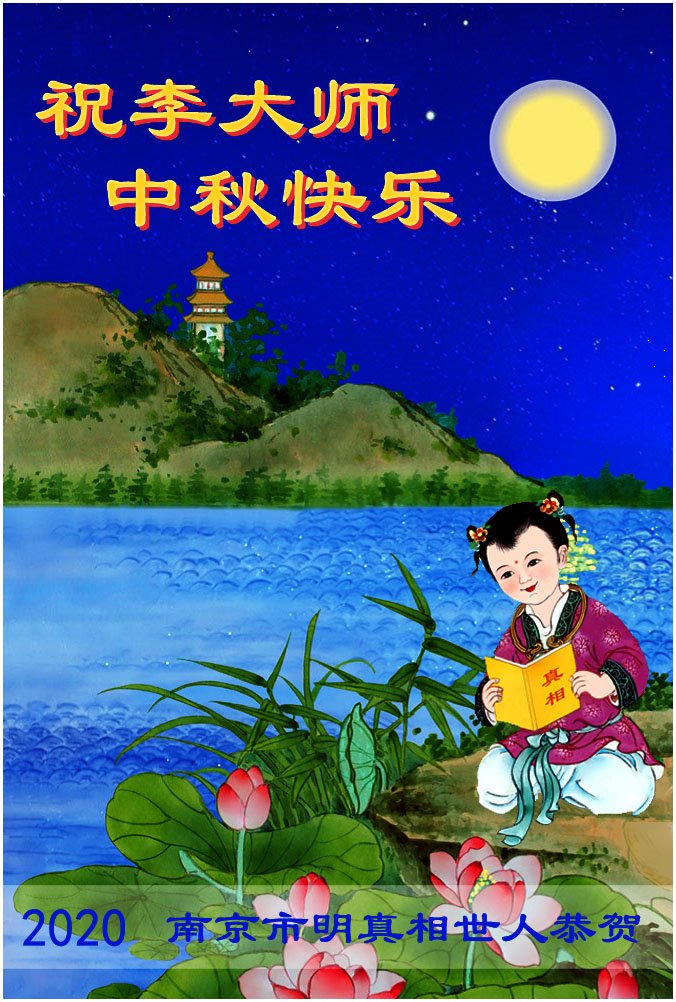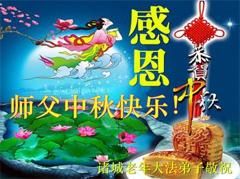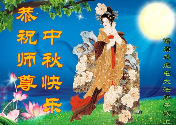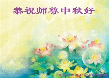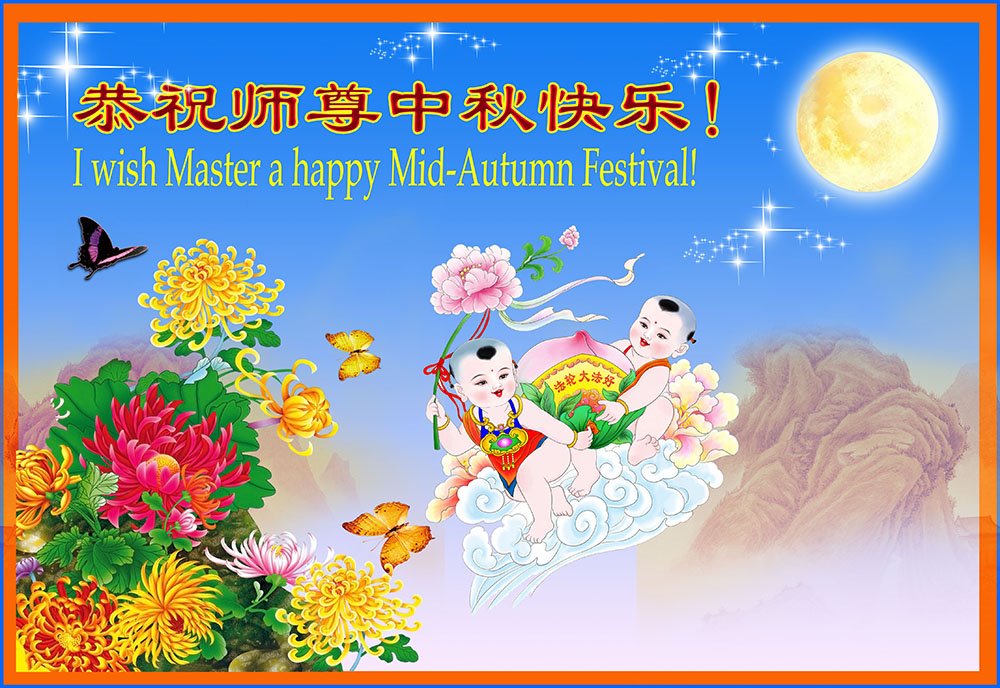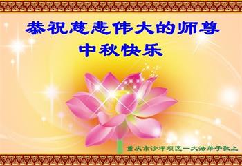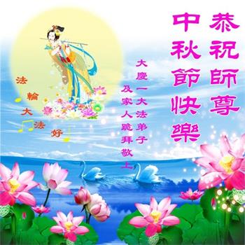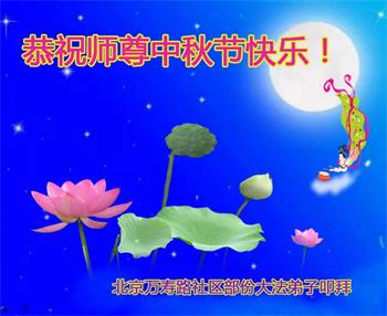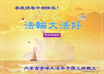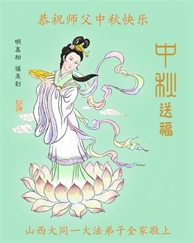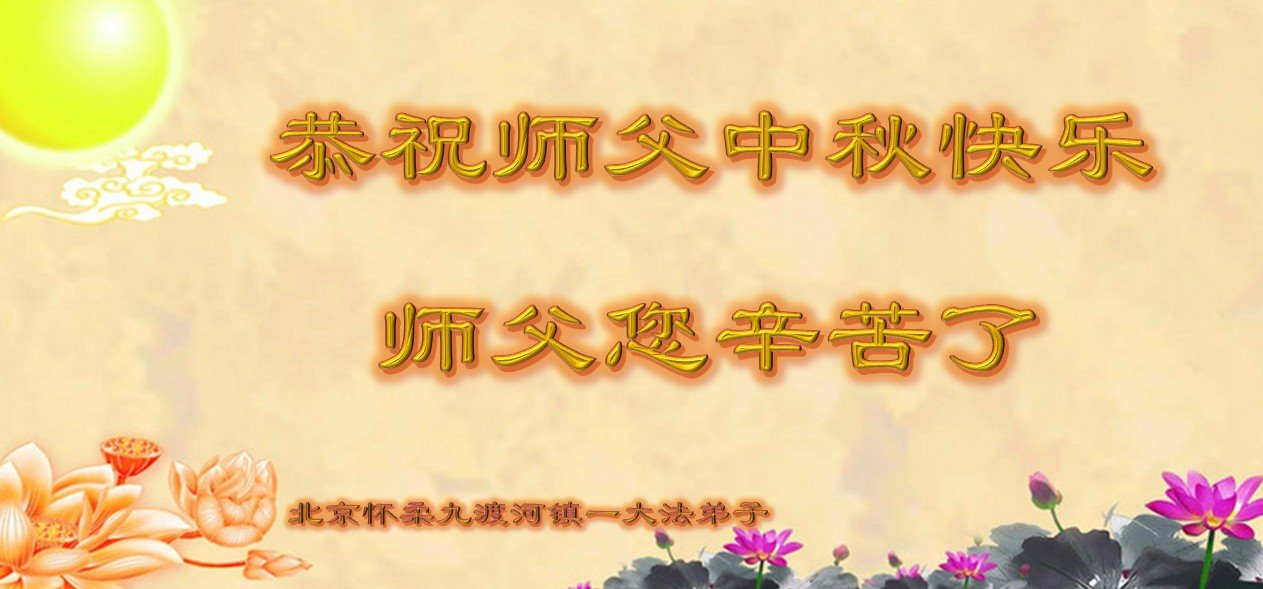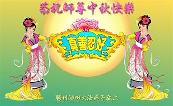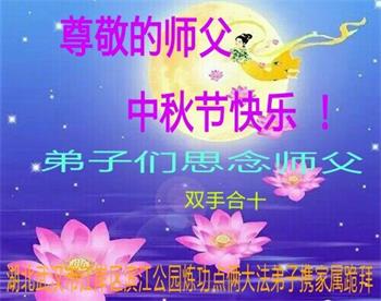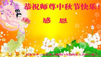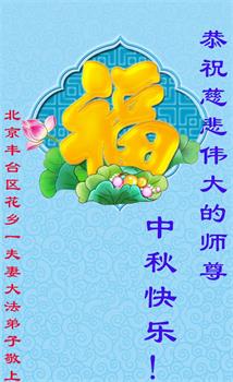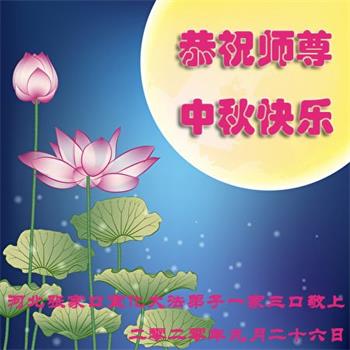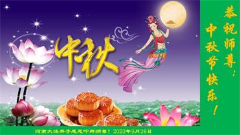 中国民众在贺词中写道:在中秋节来临之际,感恩大法师父的慈悲保护!我们盼望您早日回归中土,恩泽百姓,让亿万个家庭解开中共的枷锁,让中华民族五千年的文明在中原再现。