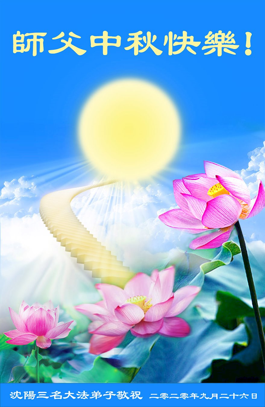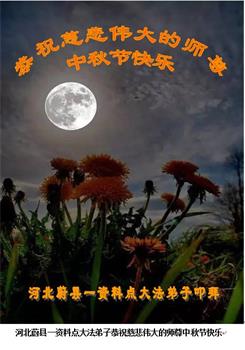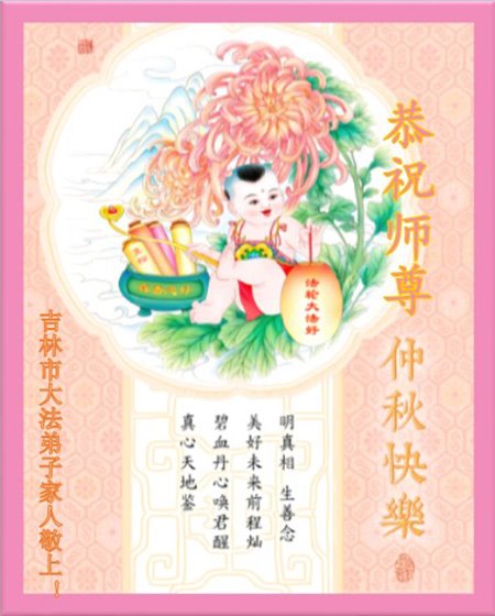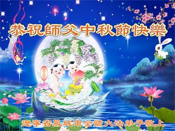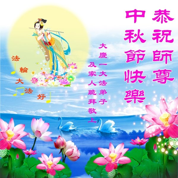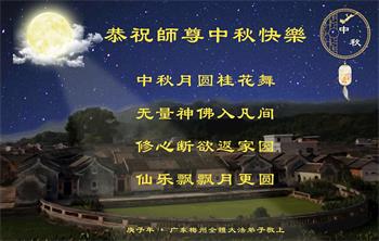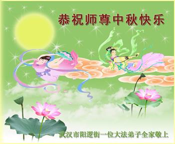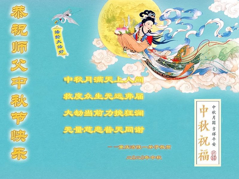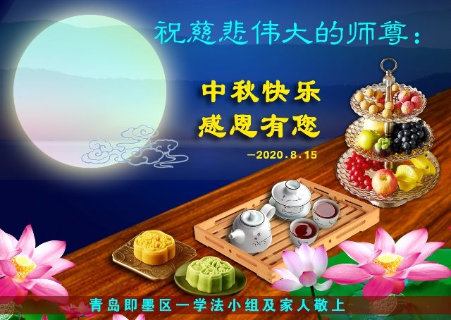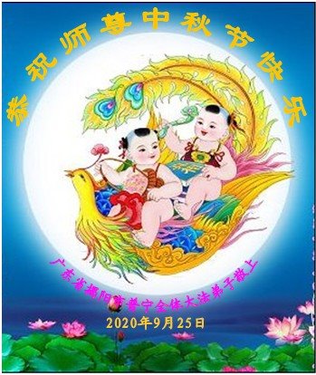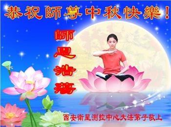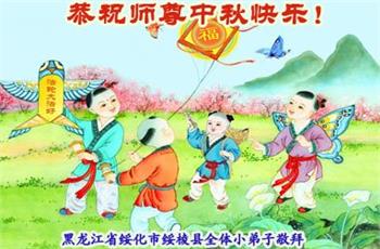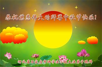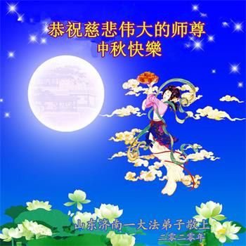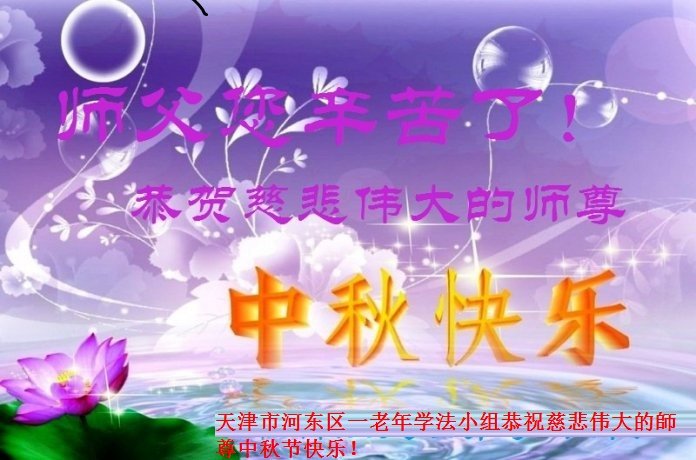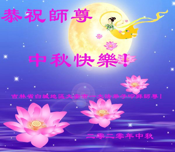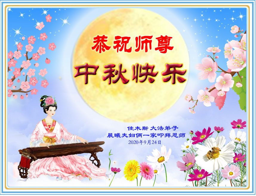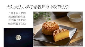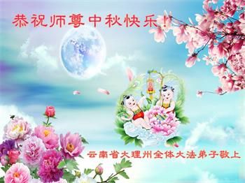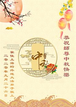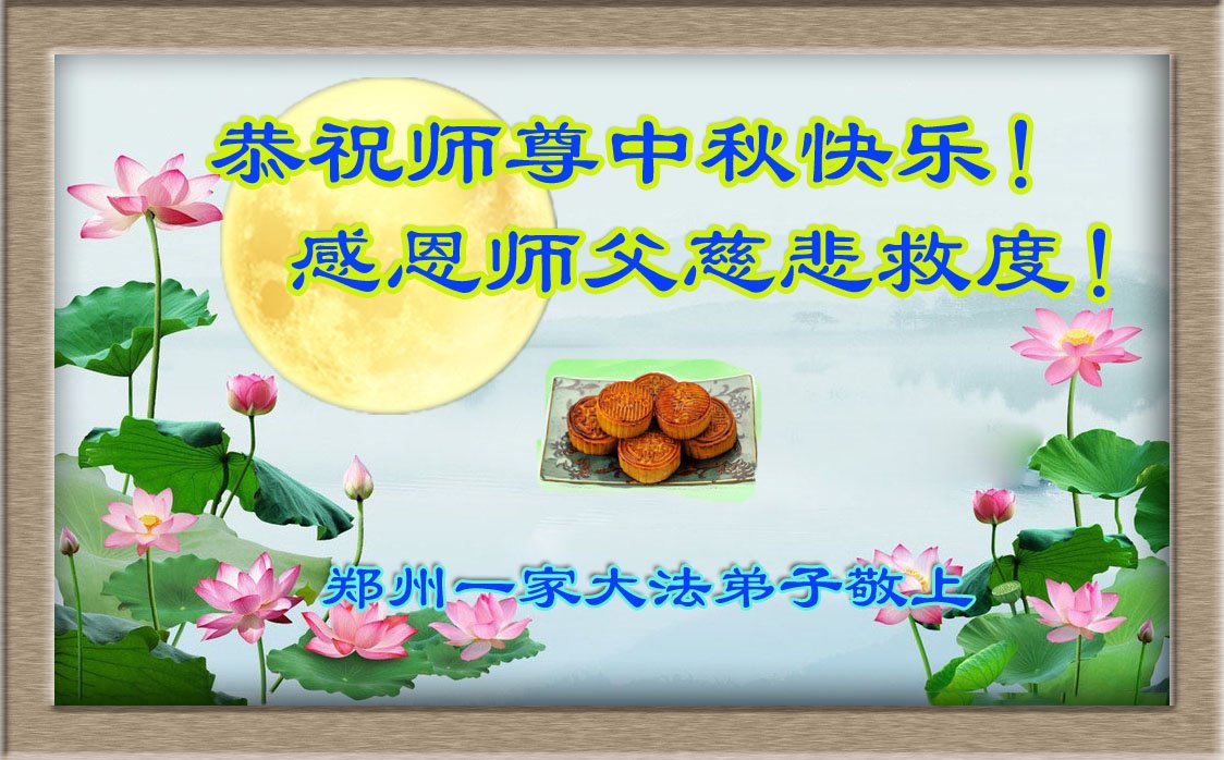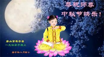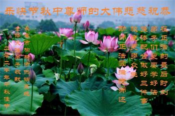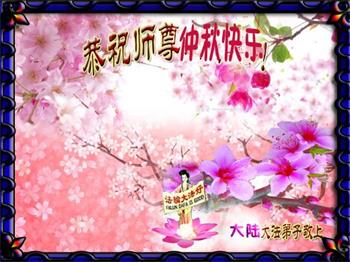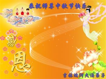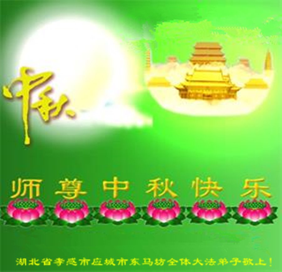 中国民众在贺词中写道:在中秋节来临之际,感恩大法师父的慈悲保护!我们盼望您早日回归中土,恩泽百姓,让亿万个家庭解开中共的枷锁,让中华民族五千年的文明在中原再现。