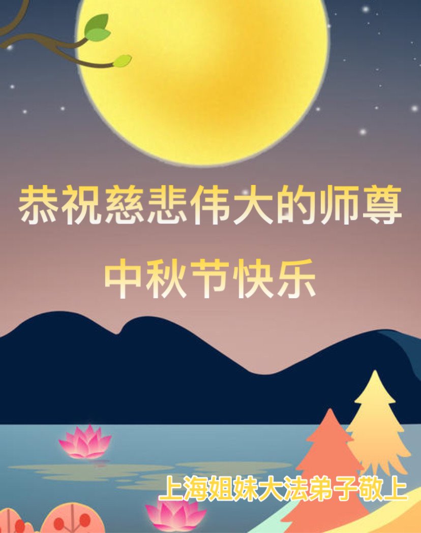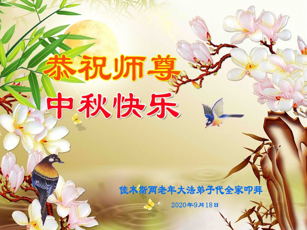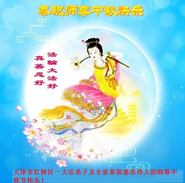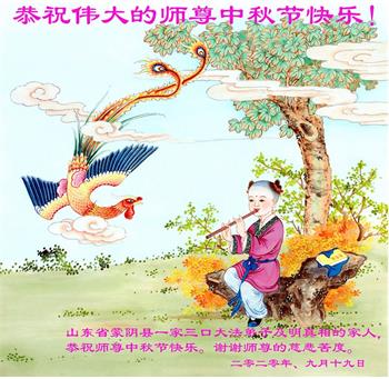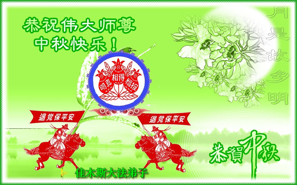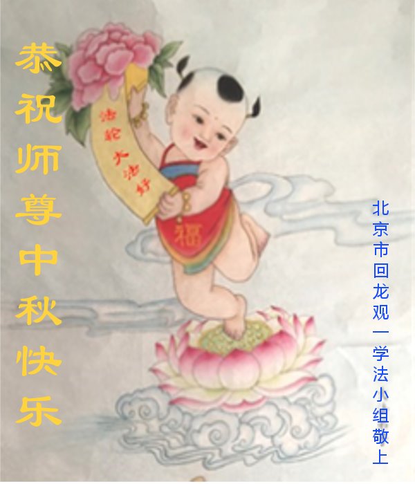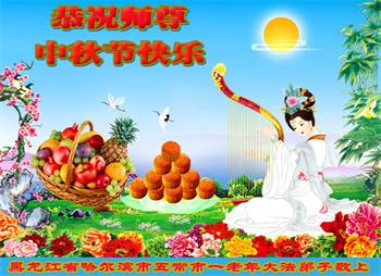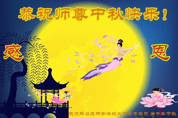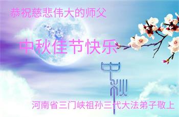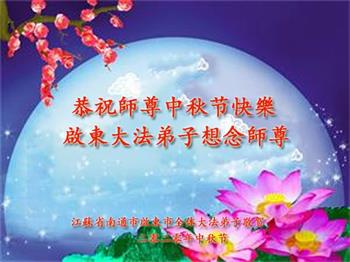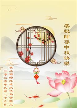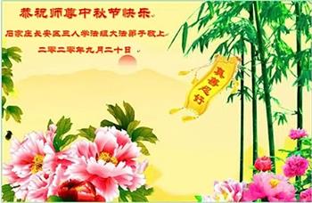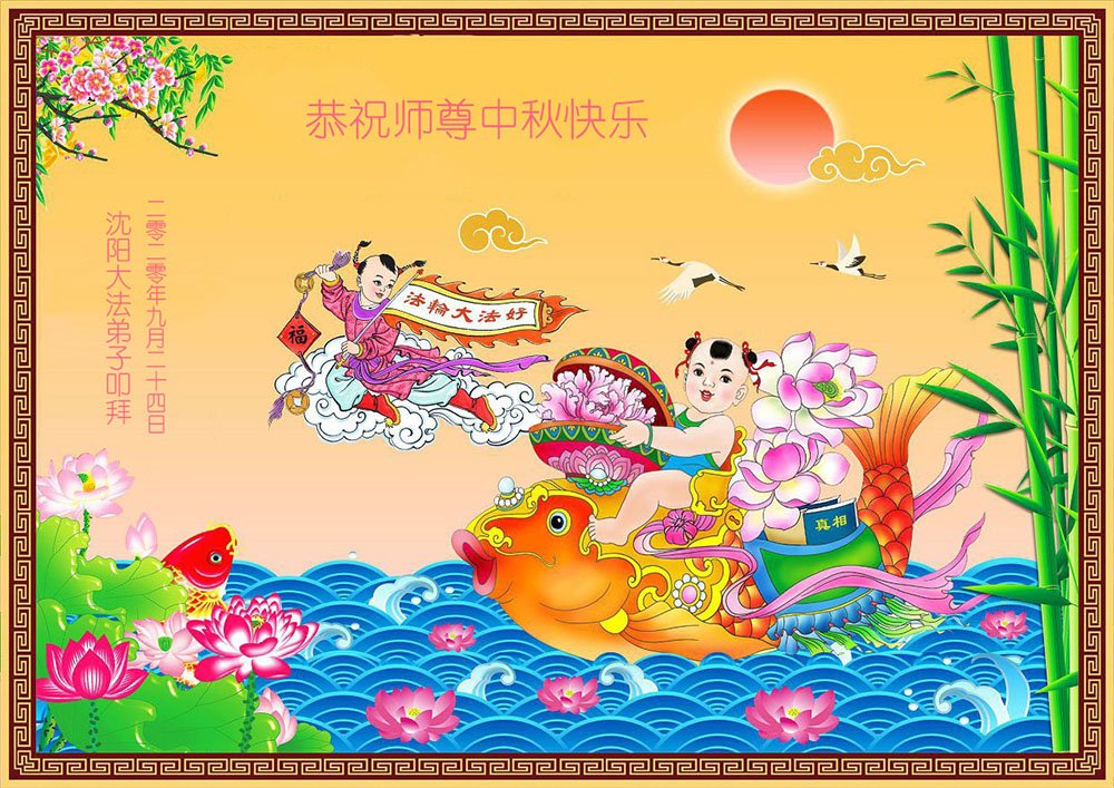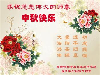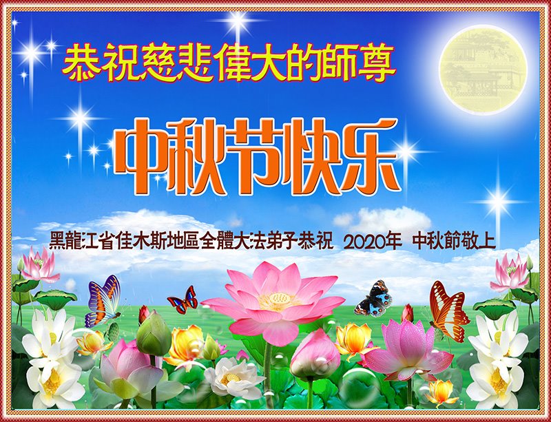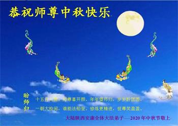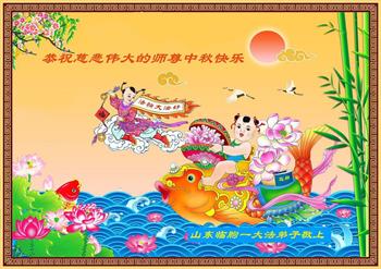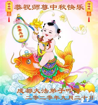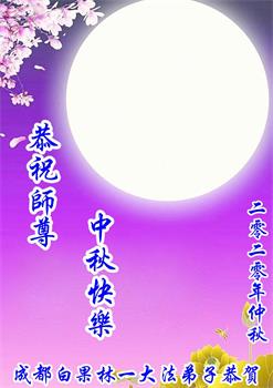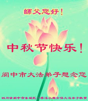中国民众在贺词中写道:在中秋节来临之际,感恩大法师父的慈悲保护!我们盼望您早日回归中土,恩泽百姓,让亿万个家庭解开中共的枷锁,让中华民族五千年的文明在中原再现。