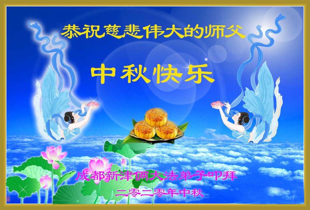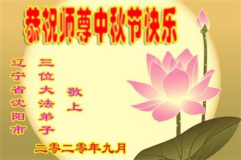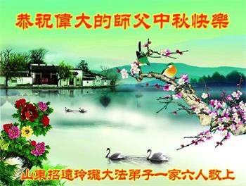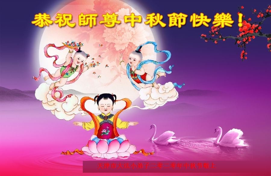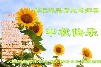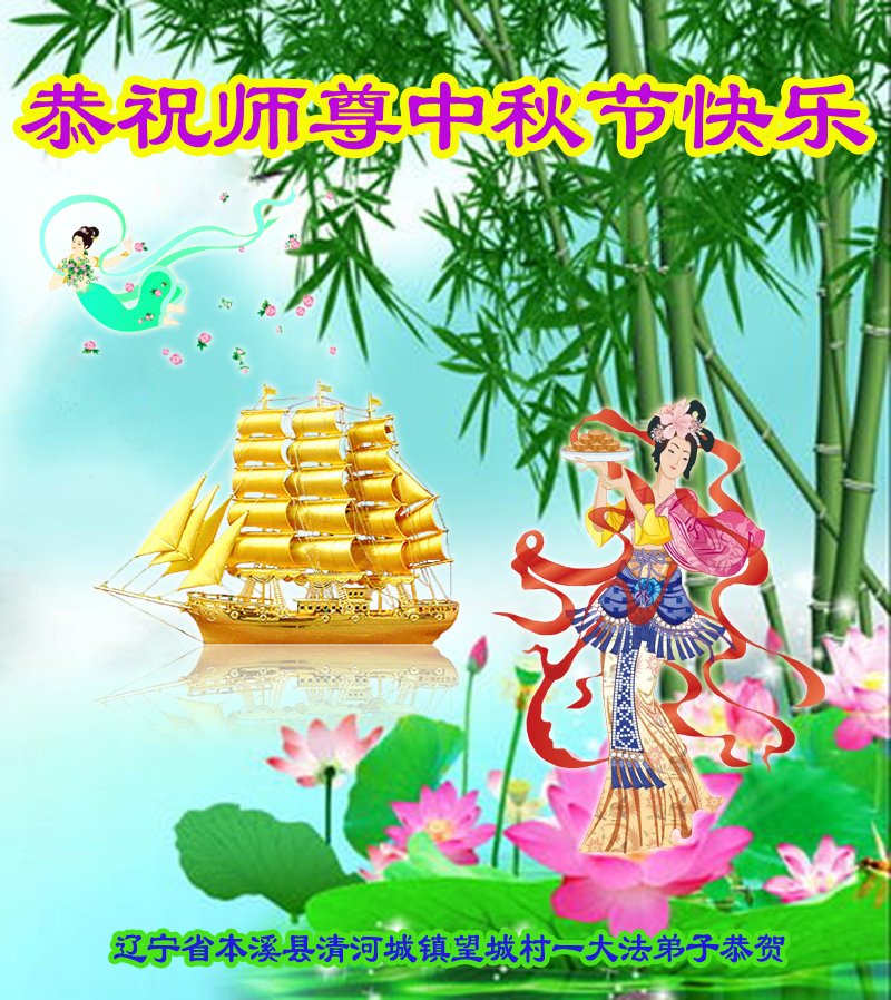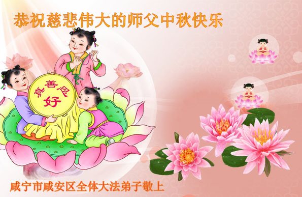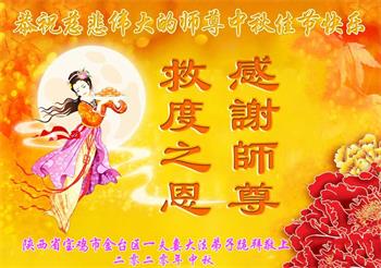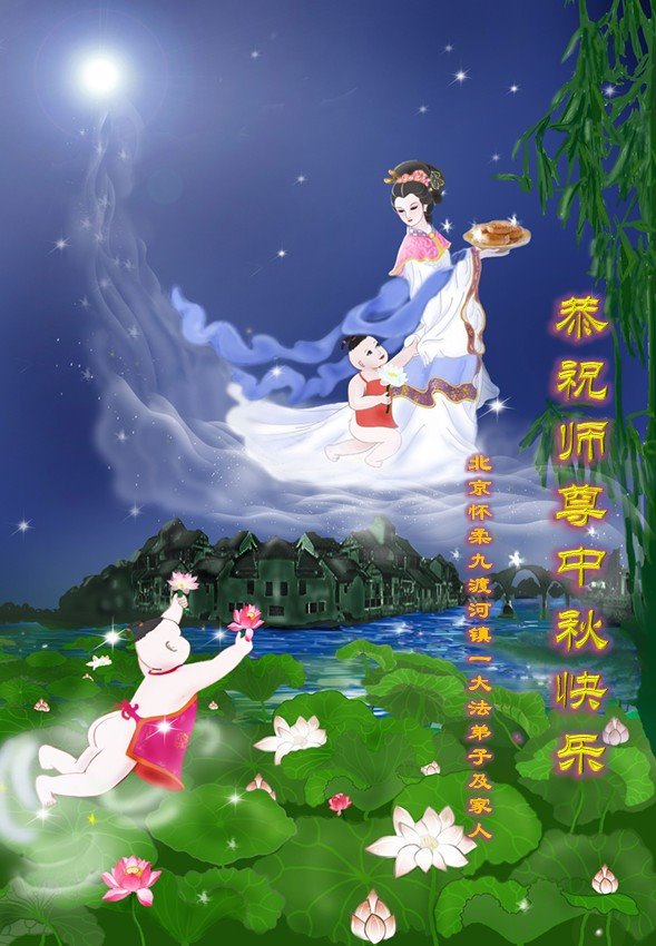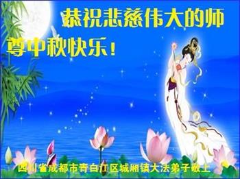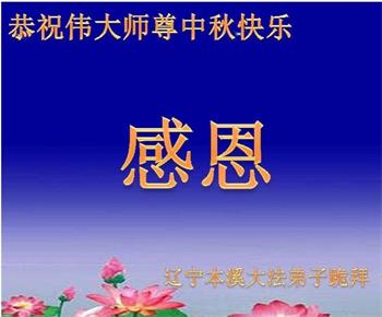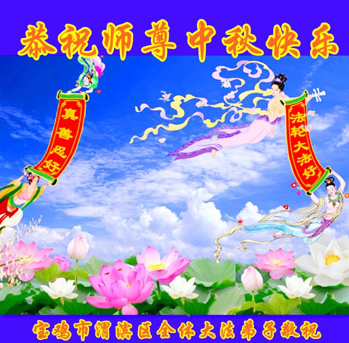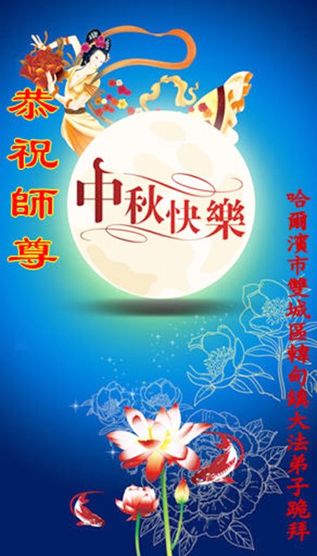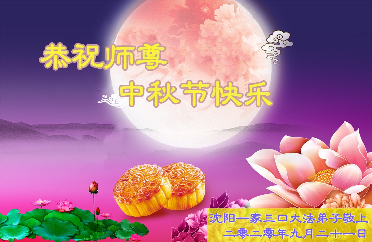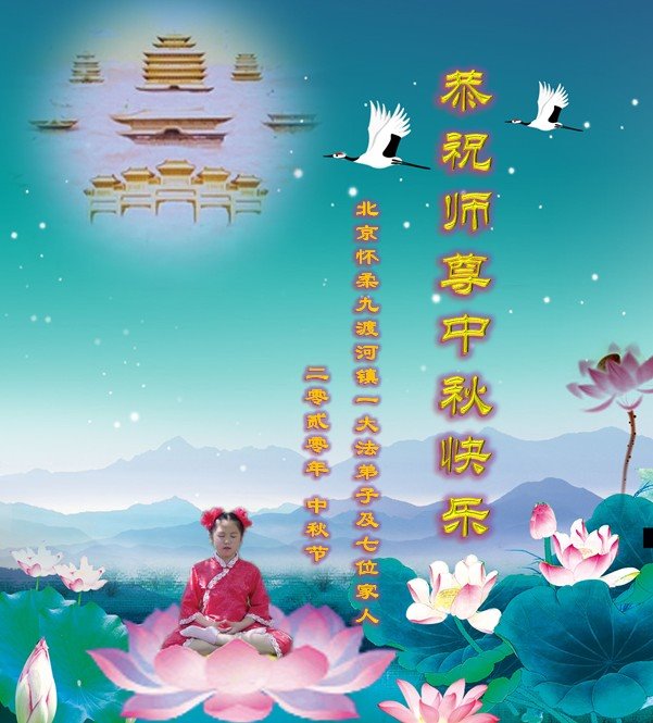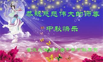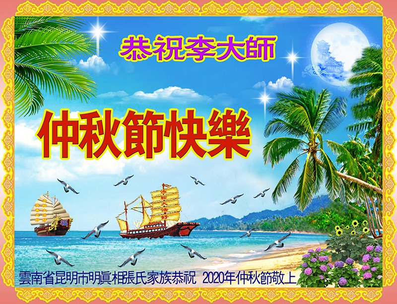 中国民众在贺词中写道:在中秋节来临之际,感恩大法师父的慈悲保护!我们盼望您早日回归中土,恩泽百姓,让亿万个家庭解开中共的枷锁,让中华民族五千年的文明在中原再现。