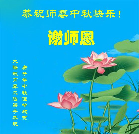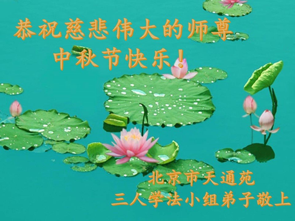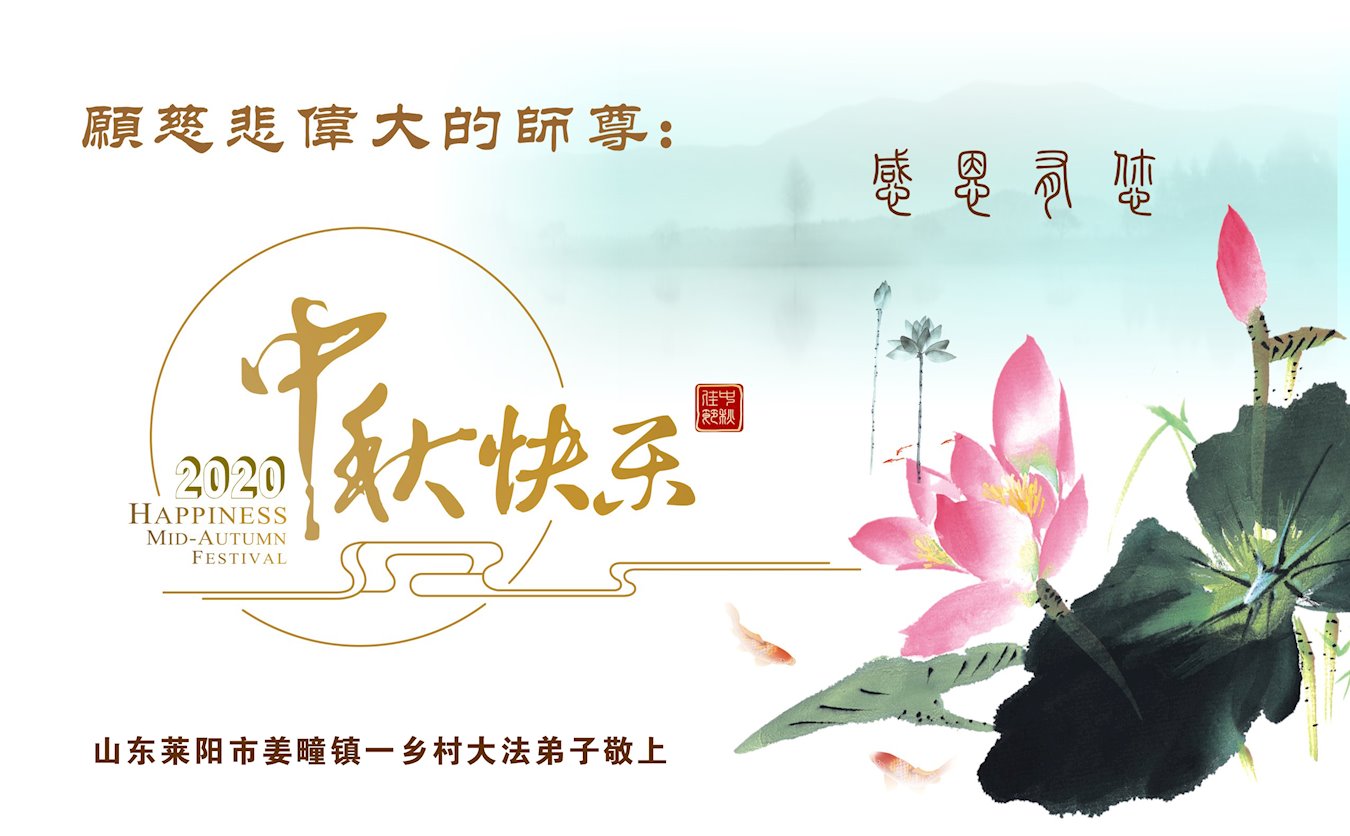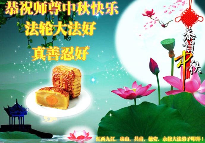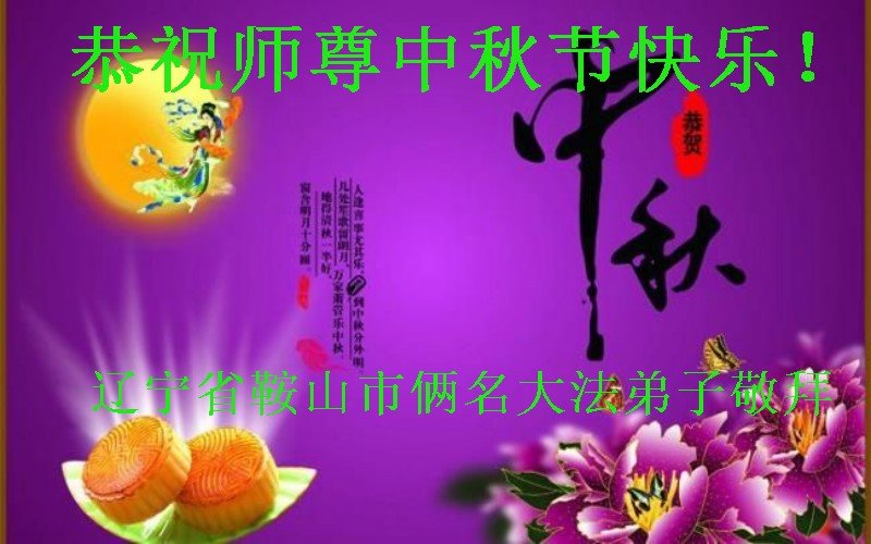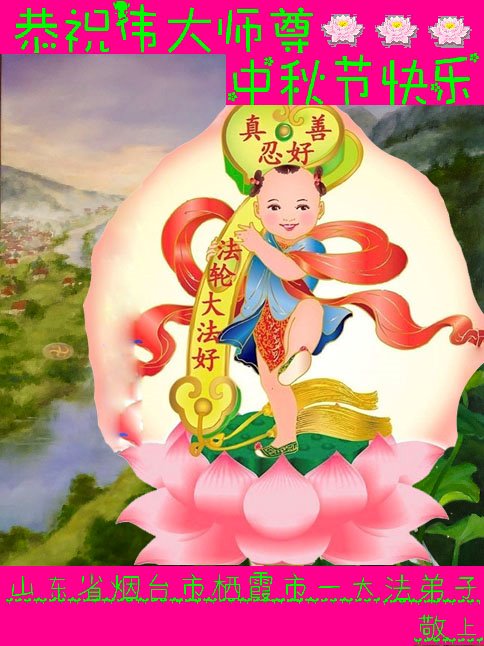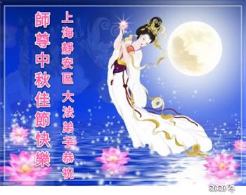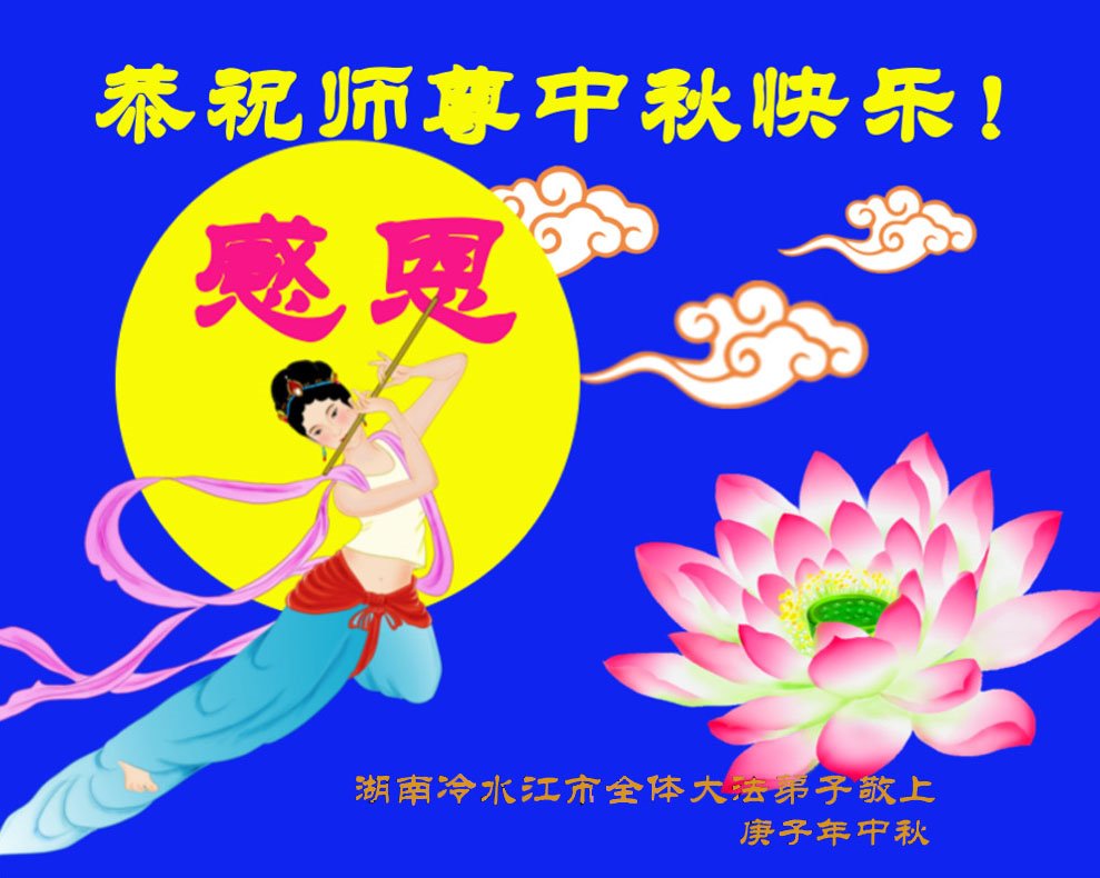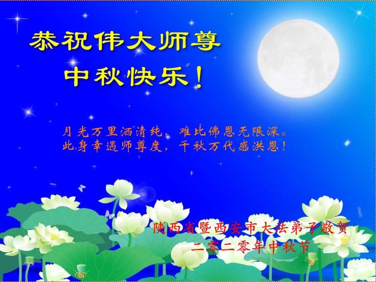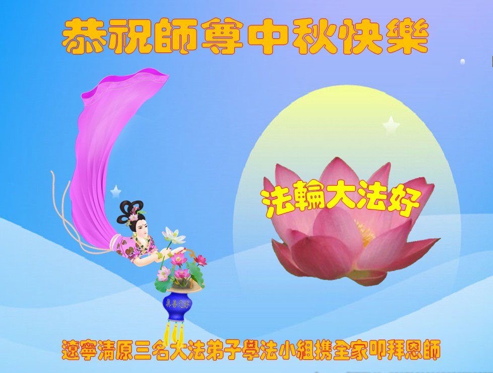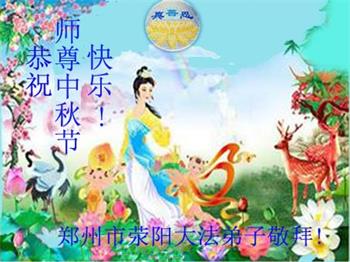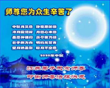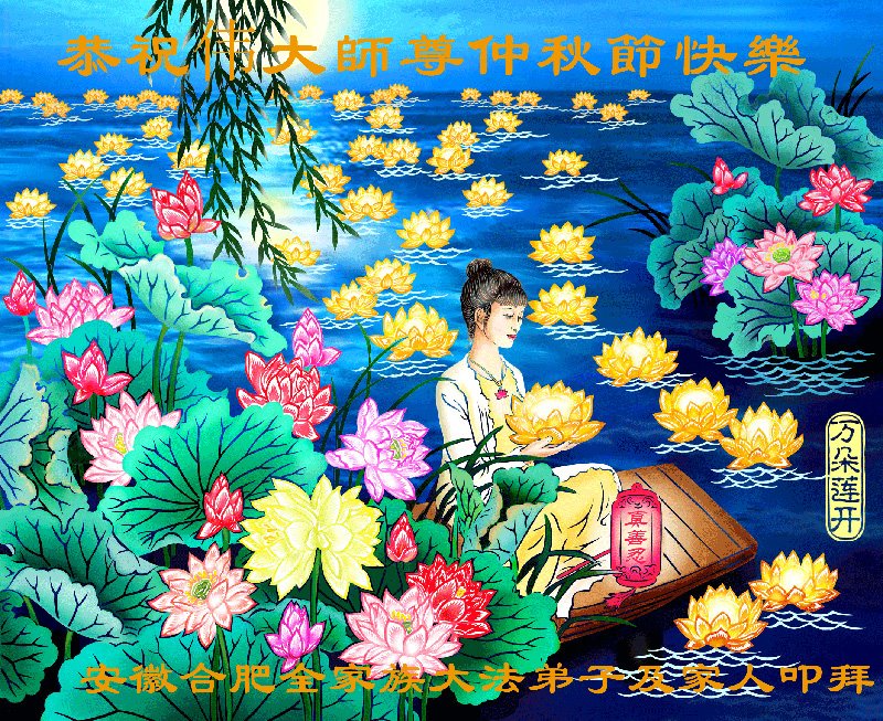 中国民众在贺词中写道:在中秋节来临之际,感恩大法师父的慈悲保护!我们盼望您早日回归中土,恩泽百姓,让亿万个家庭解开中共的枷锁,让中华民族五千年的文明在中原再现。