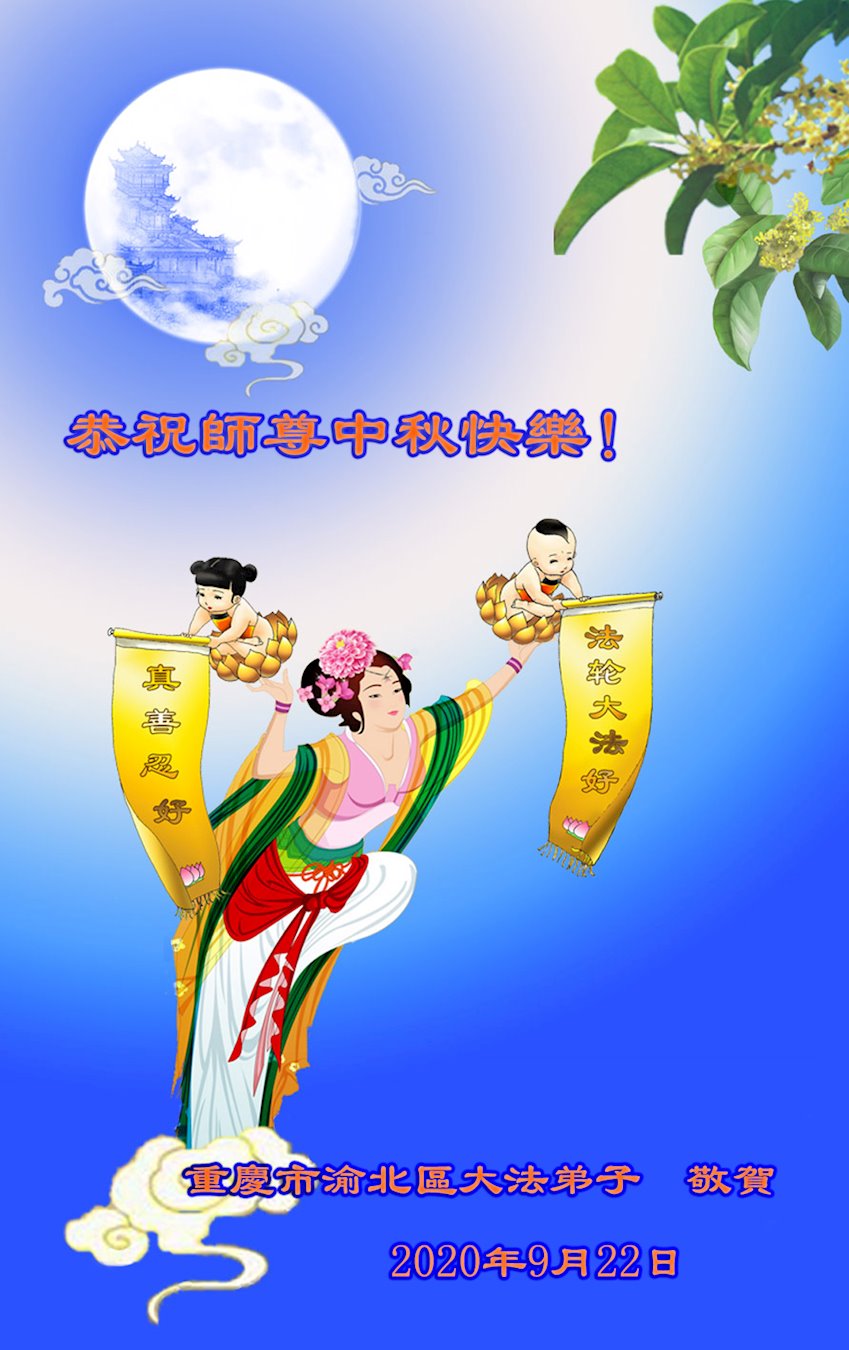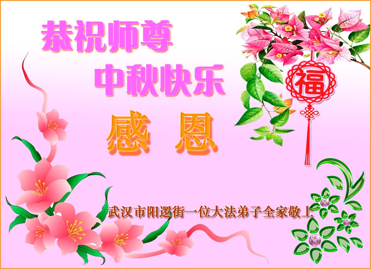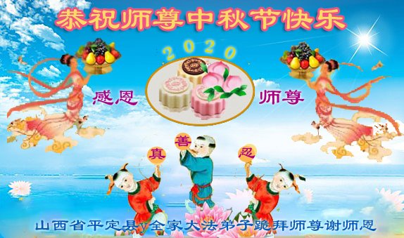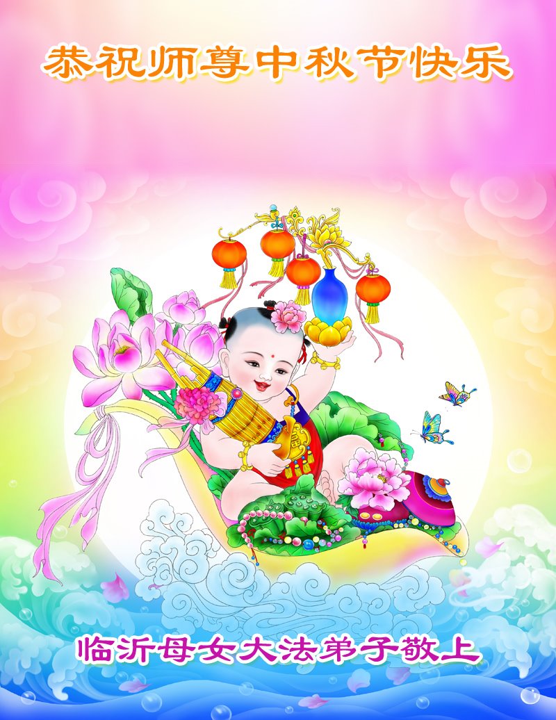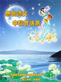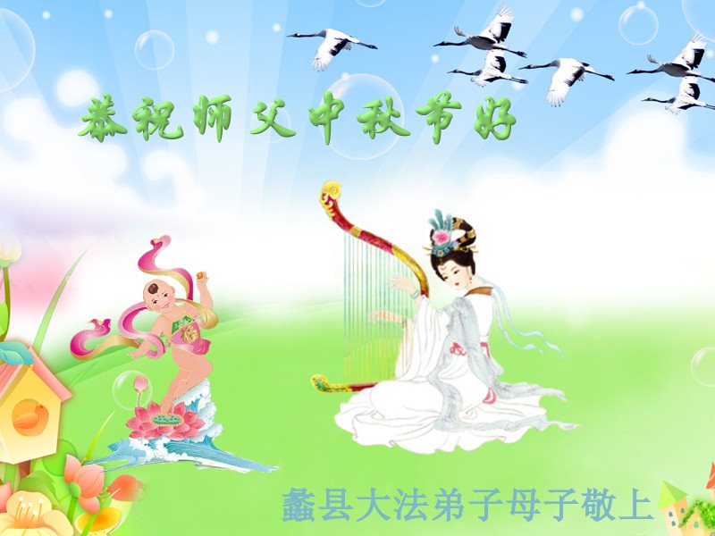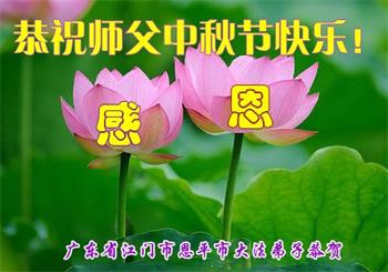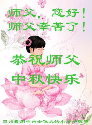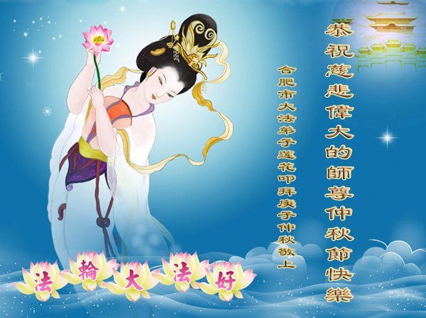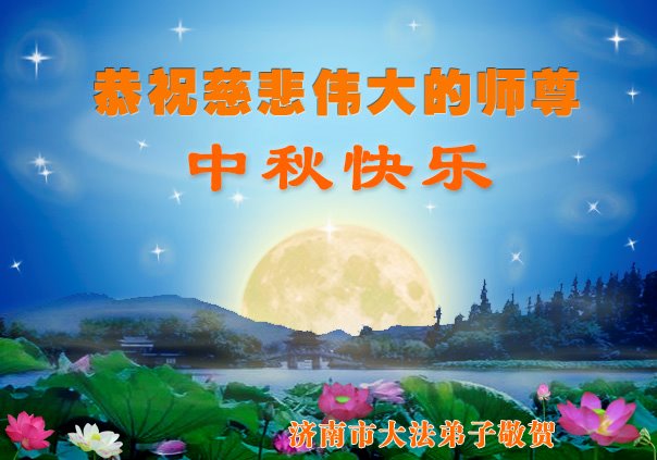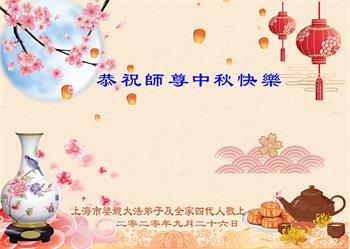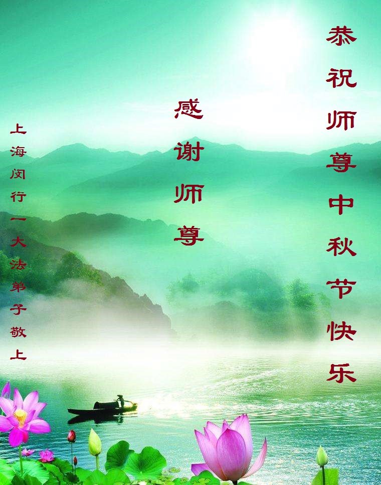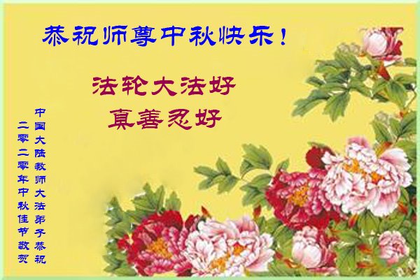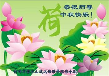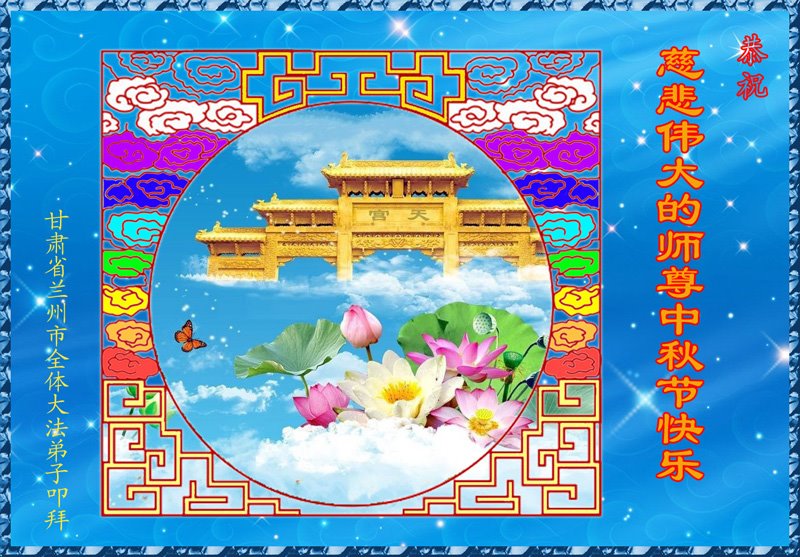 中国民众在贺词中写道:在中秋节来临之际,感恩大法师父的慈悲保护!我们盼望您早日回归中土,恩泽百姓,让亿万个家庭解开中共的枷锁,让中华民族五千年的文明在中原再现。