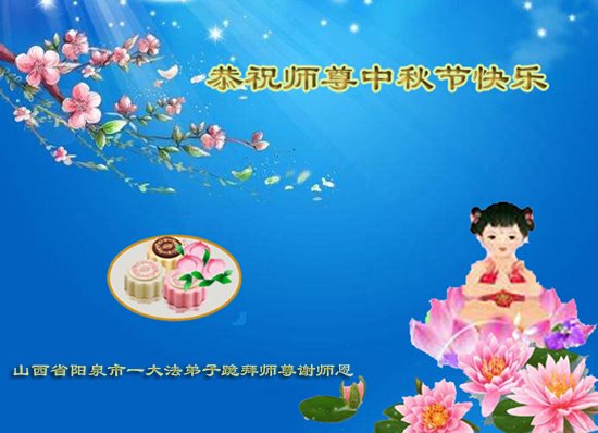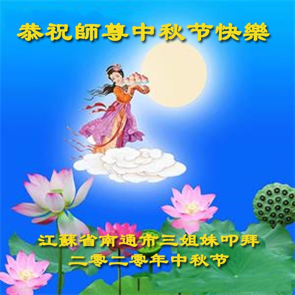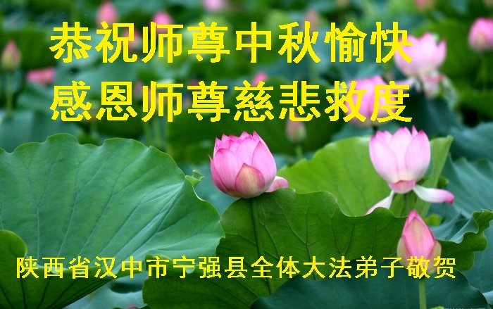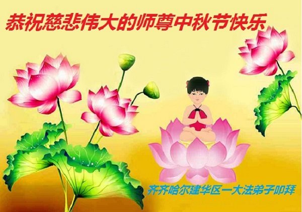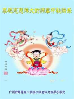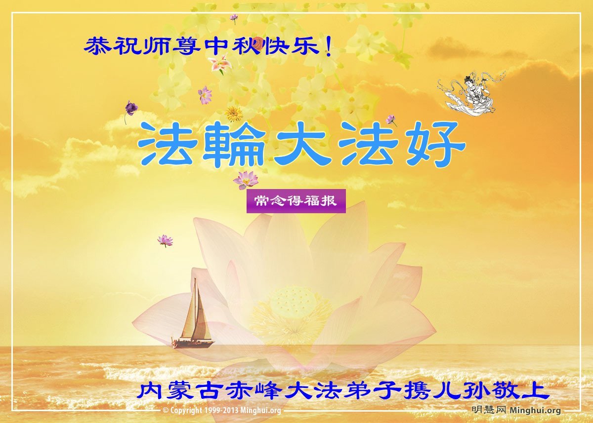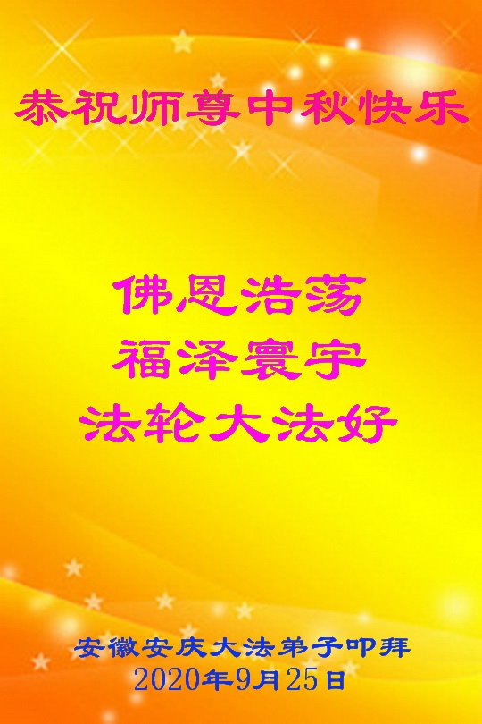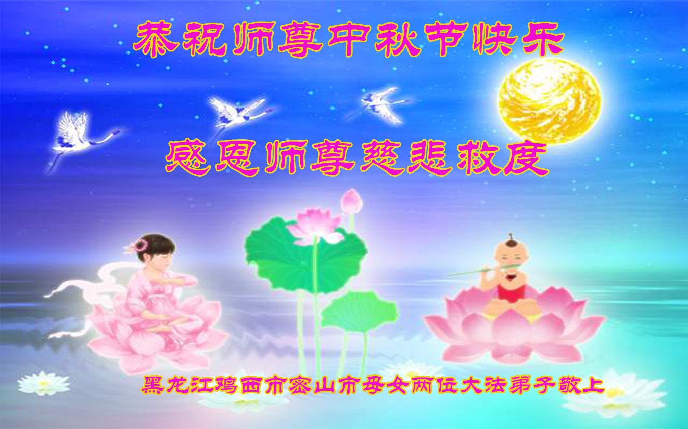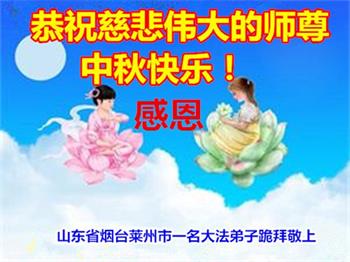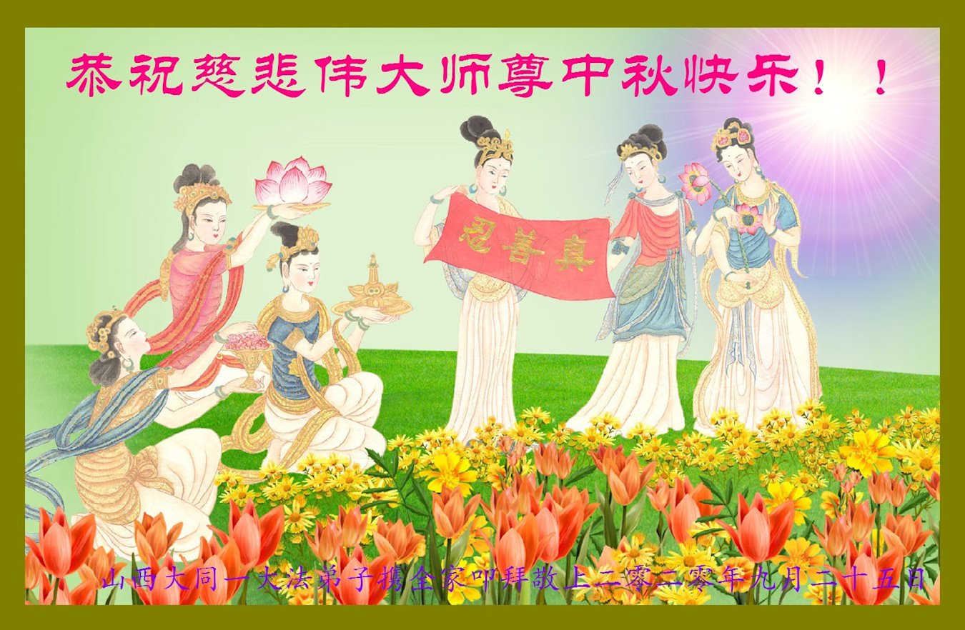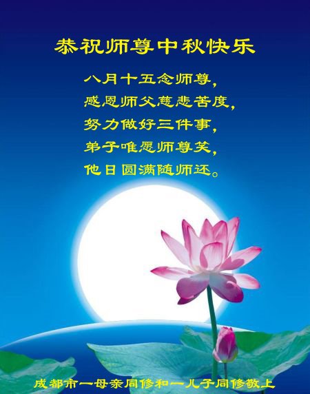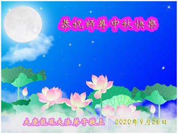 中国民众在贺词中写道:在中秋节来临之际,感恩大法师父的慈悲保护!我们盼望您早日回归中土,恩泽百姓,让亿万个家庭解开中共的枷锁,让中华民族五千年的文明在中原再现。