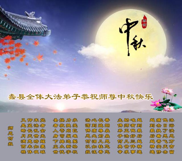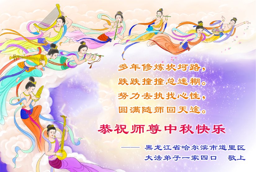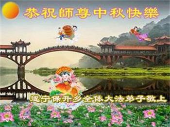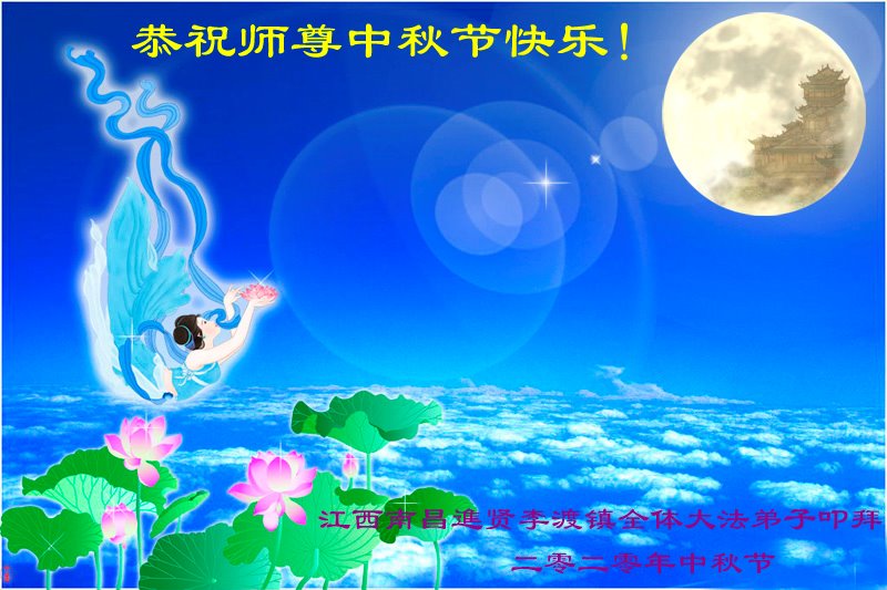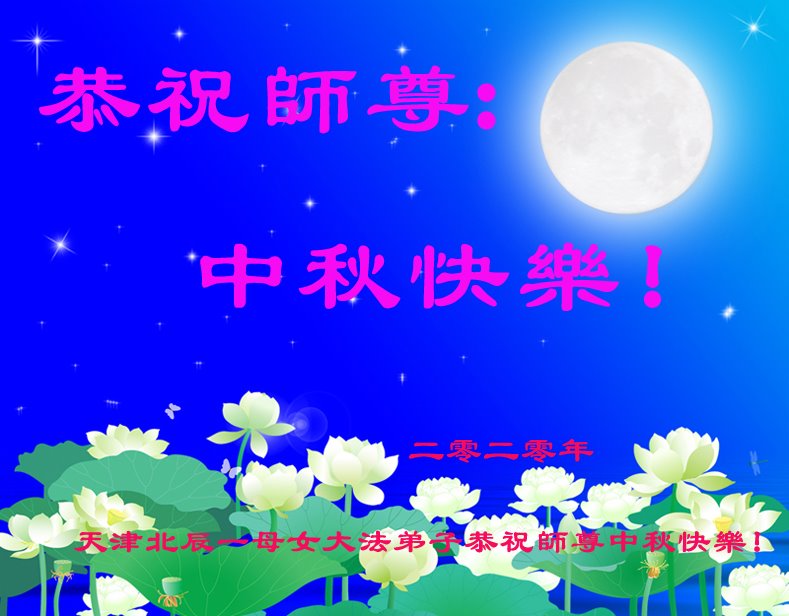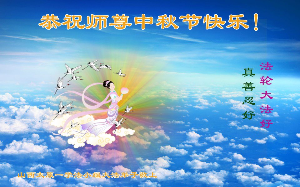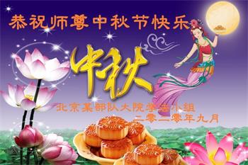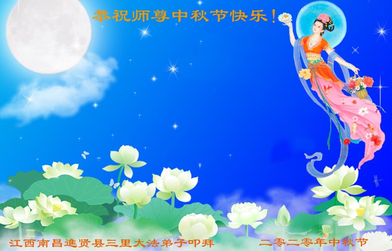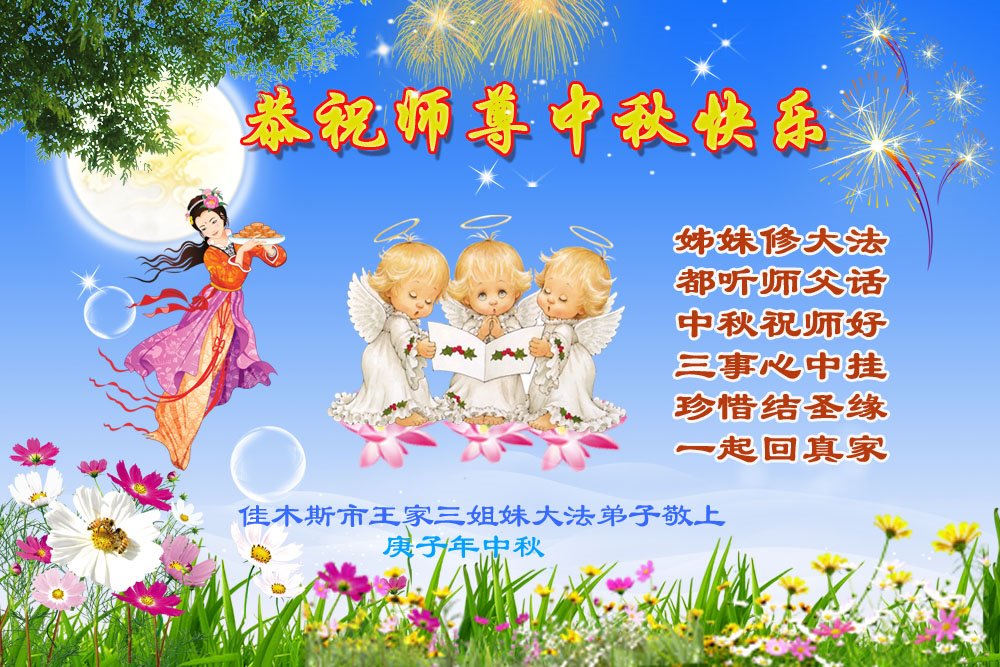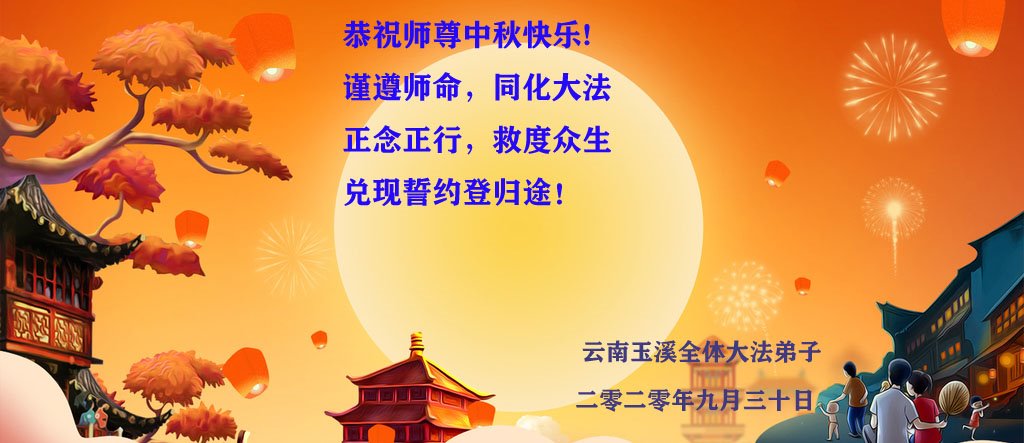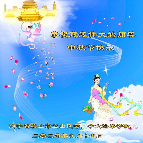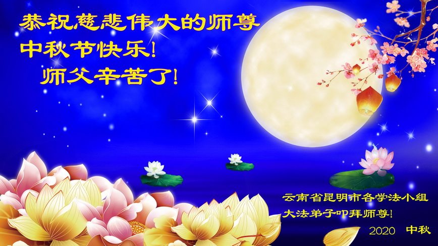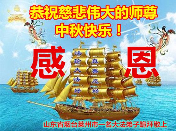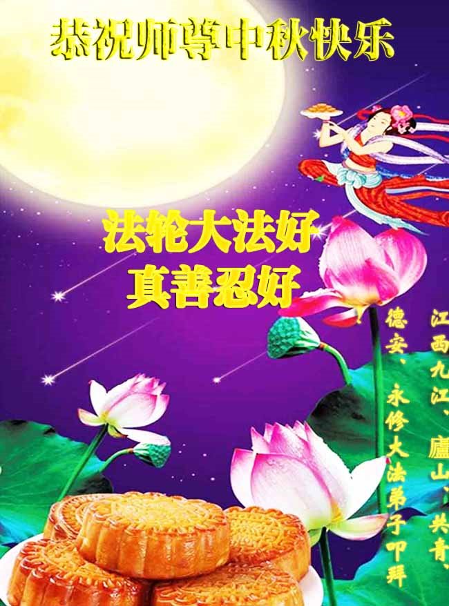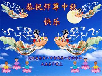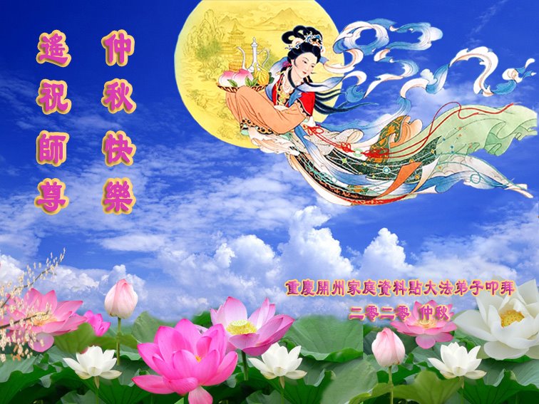中国民众在贺词中写道:在中秋节来临之际,感恩大法师父的慈悲保护!我们盼望您早日回归中土,恩泽百姓,让亿万个家庭解开中共的枷锁,让中华民族五千年的文明在中原再现。