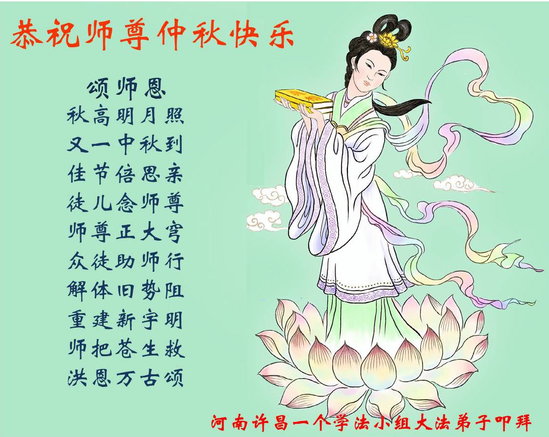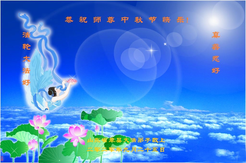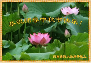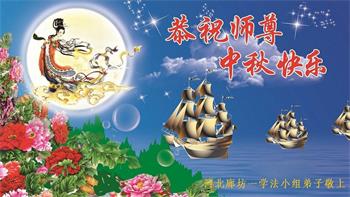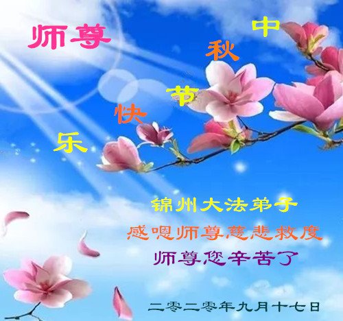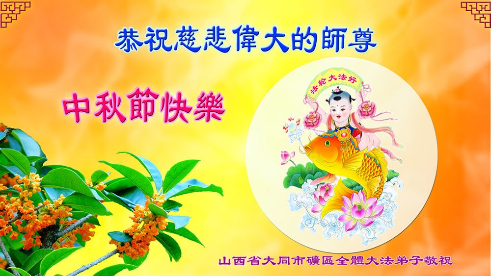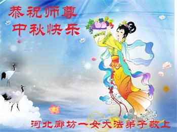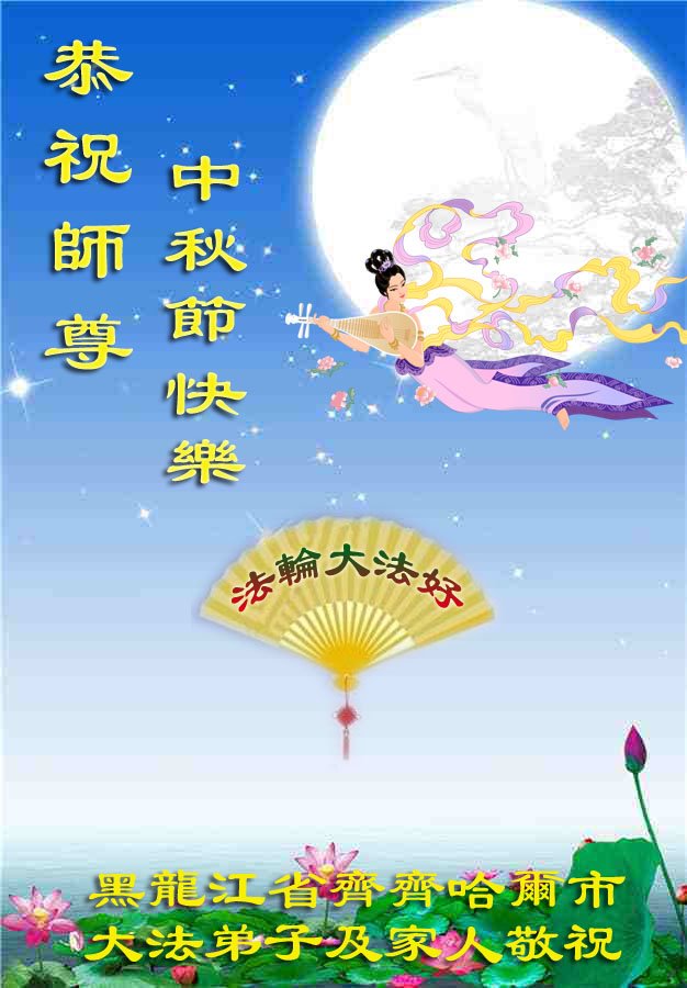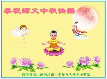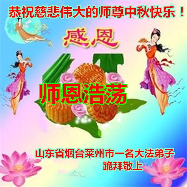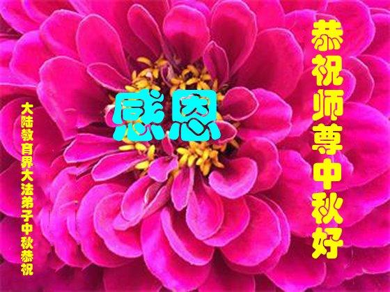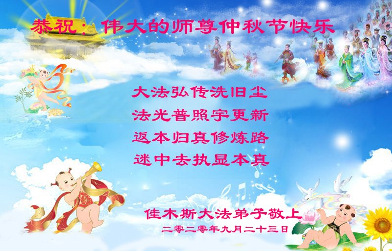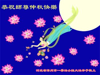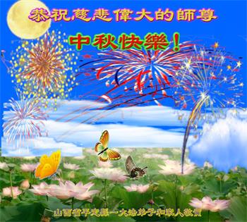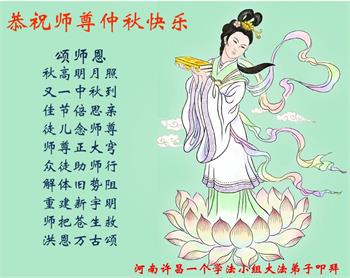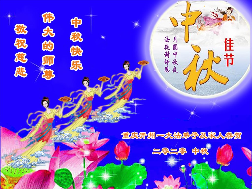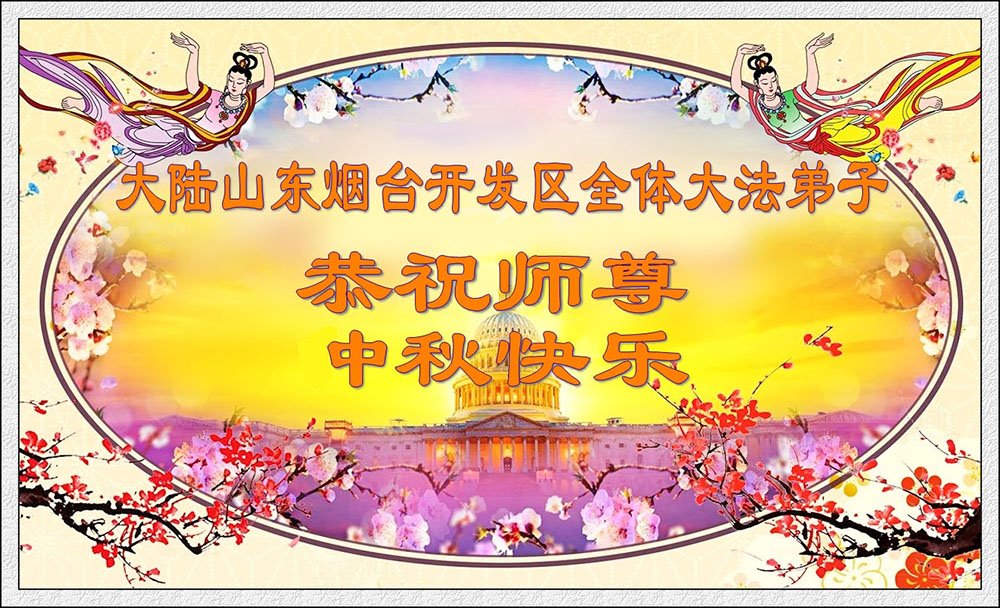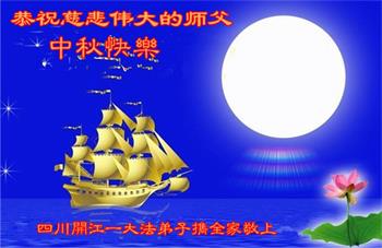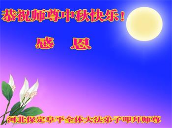 中国民众在贺词中写道:在中秋节来临之际,感恩大法师父的慈悲保护!我们盼望您早日回归中土,恩泽百姓,让亿万个家庭解开中共的枷锁,让中华民族五千年的文明在中原再现。