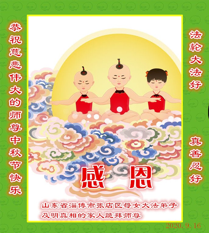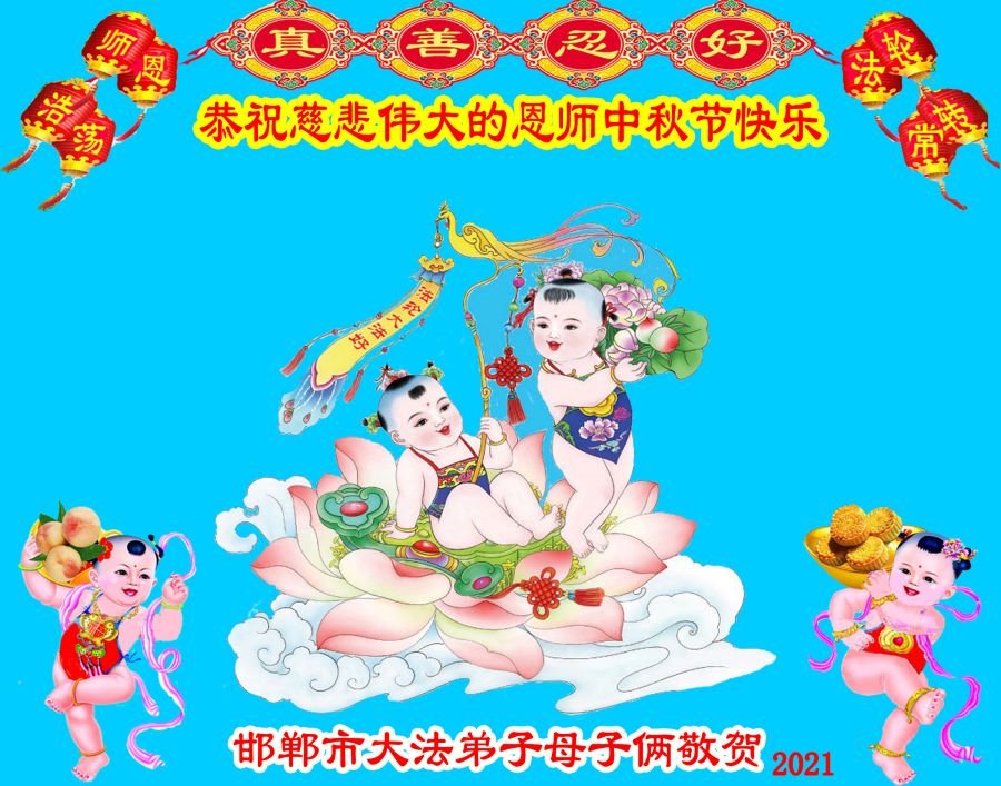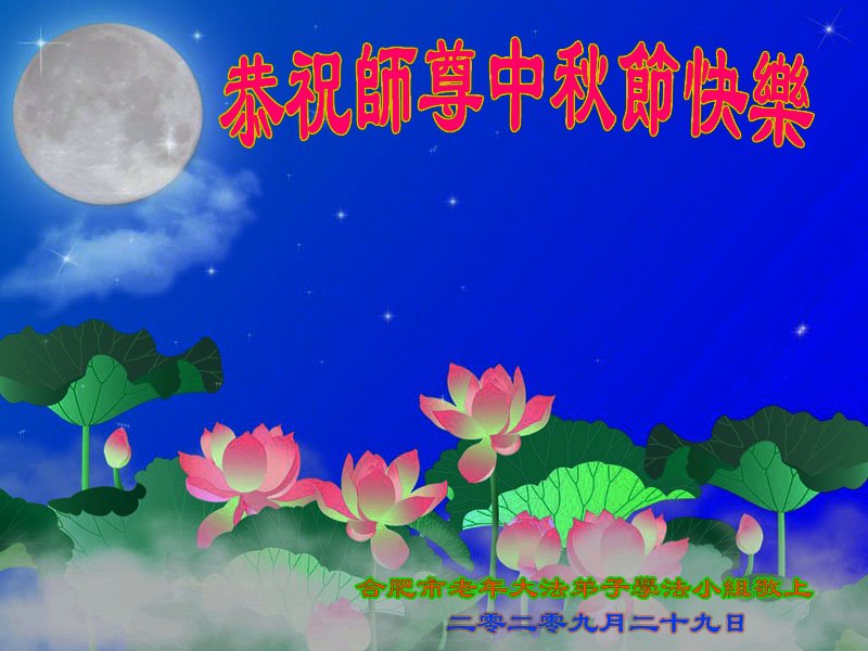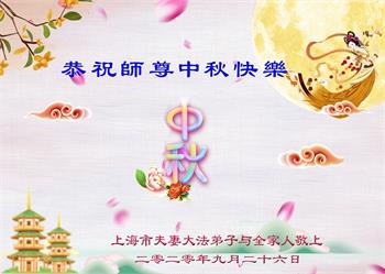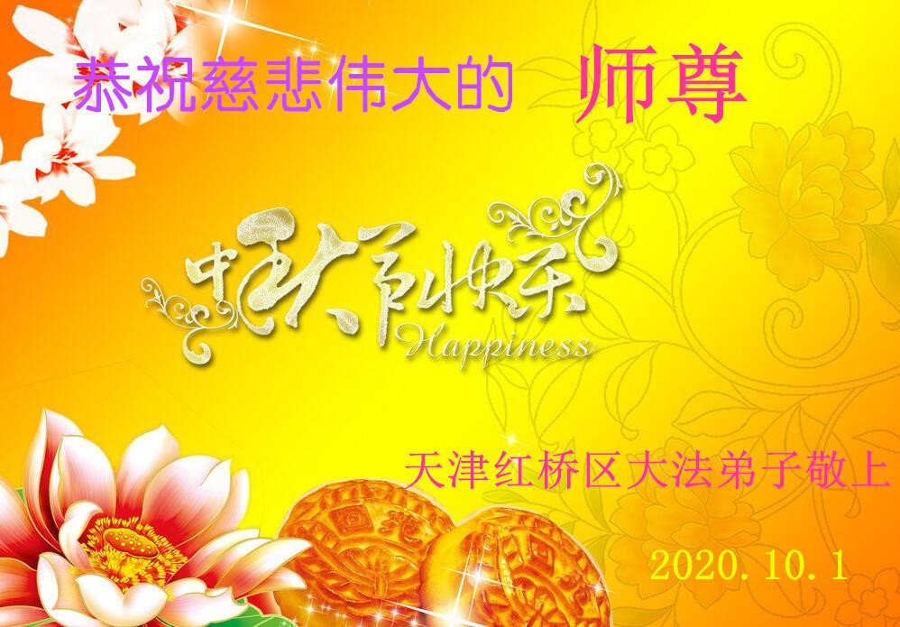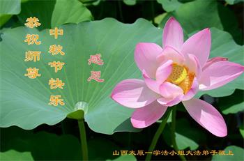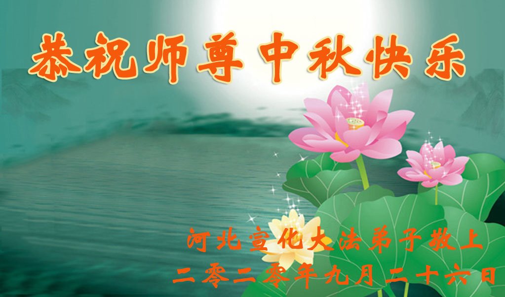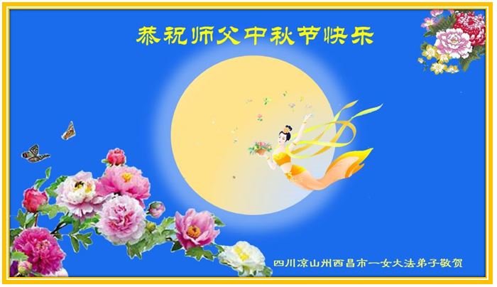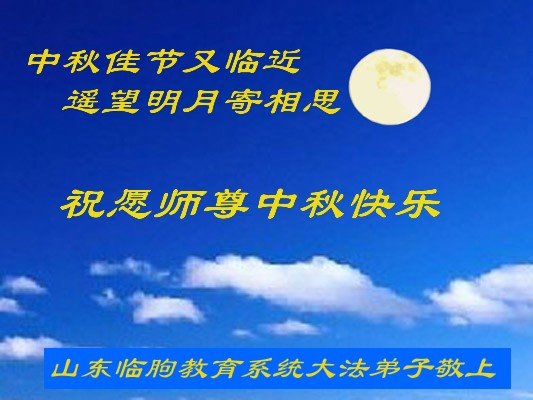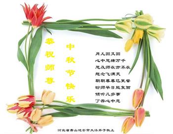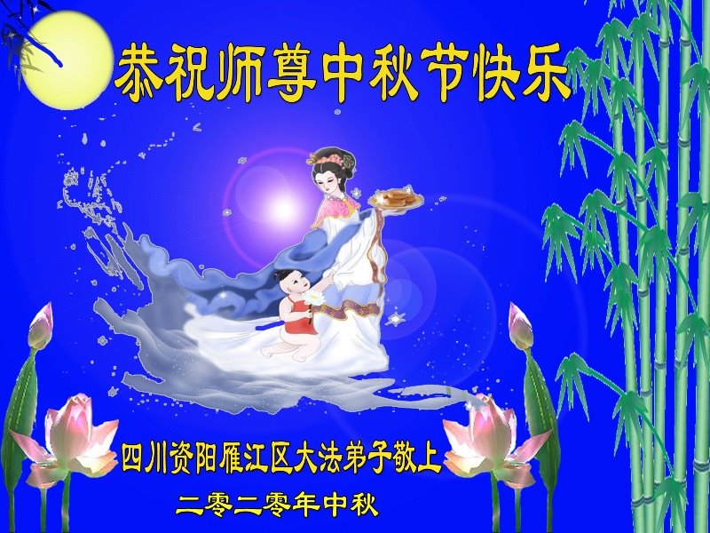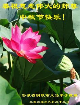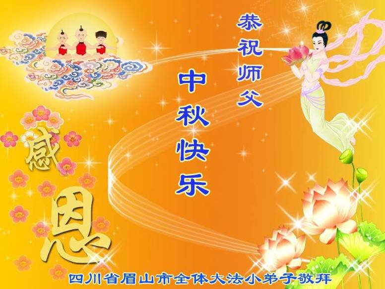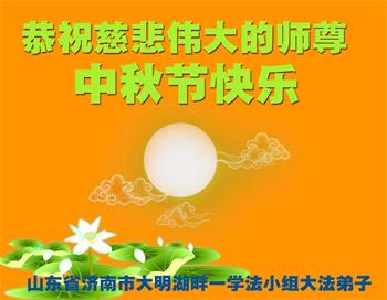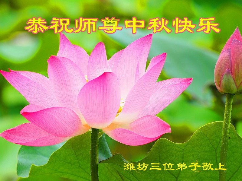 中国民众在贺词中写道:在中秋节来临之际,感恩大法师父的慈悲保护!我们盼望您早日回归中土,恩泽百姓,让亿万个家庭解开中共的枷锁,让中华民族五千年的文明在中原再现。