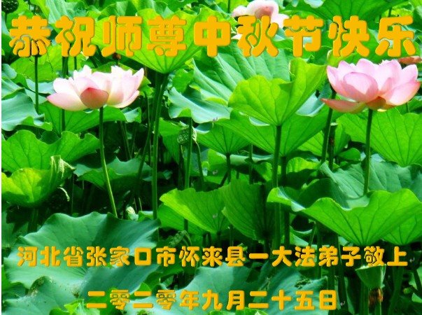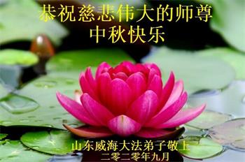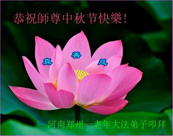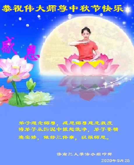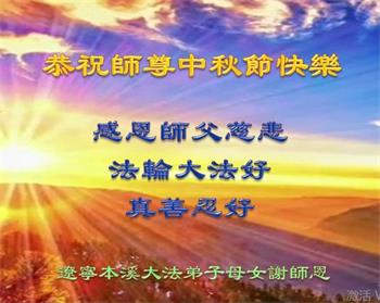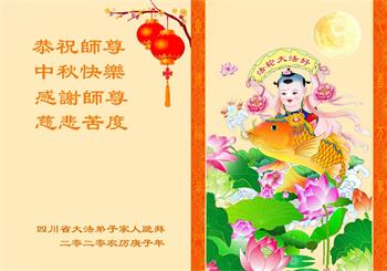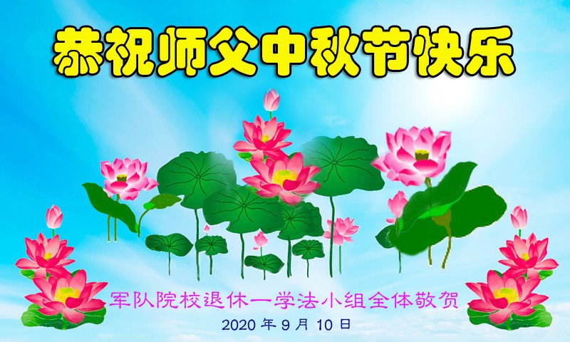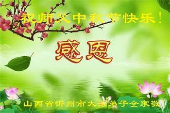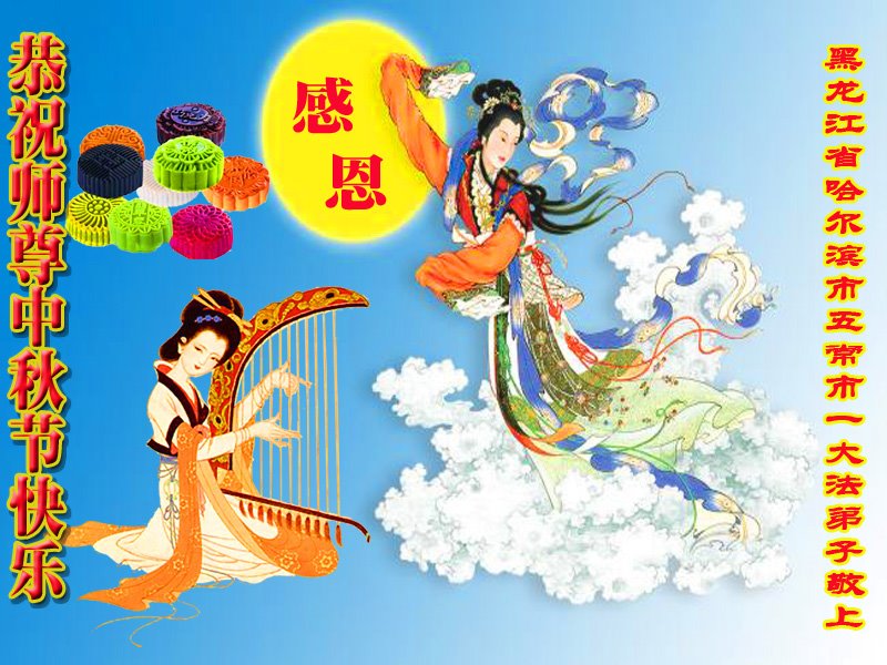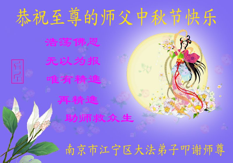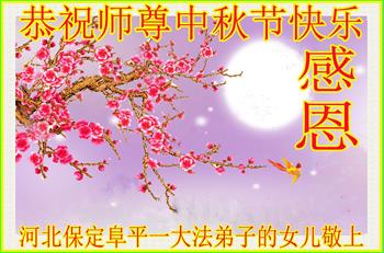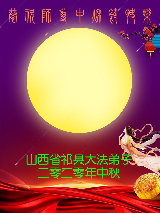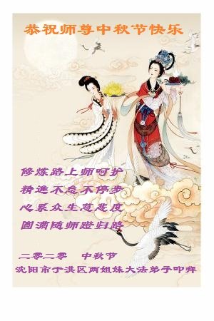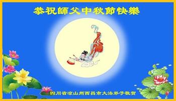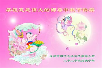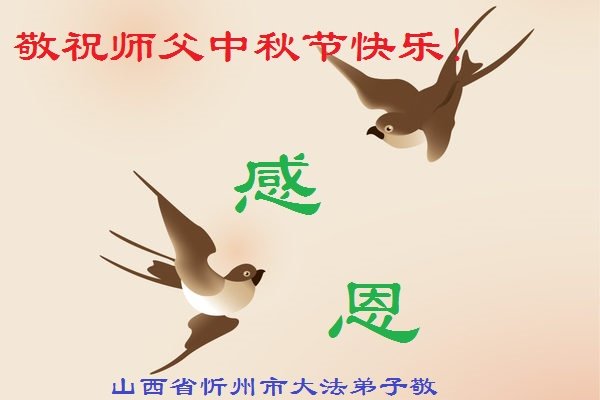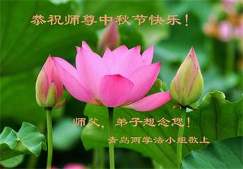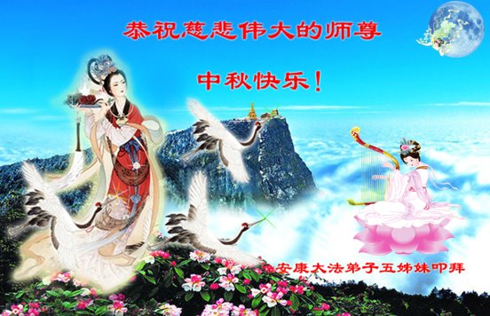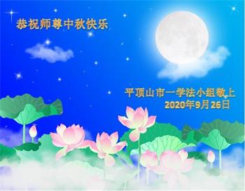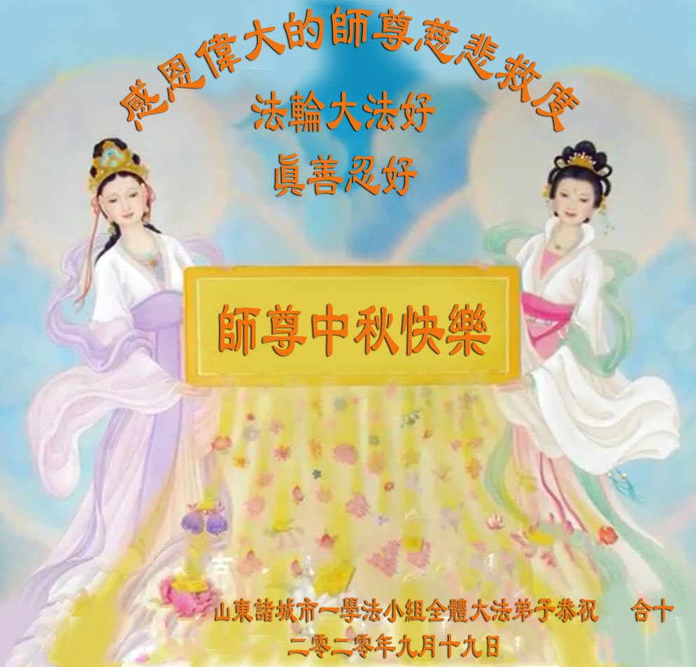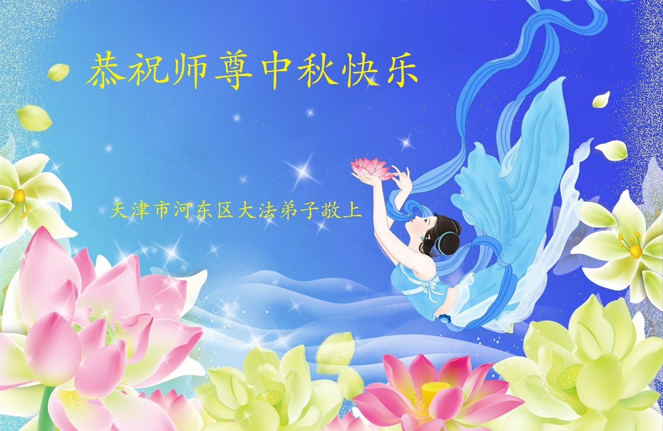 中国民众在贺词中写道:在中秋节来临之际,感恩大法师父的慈悲保护!我们盼望您早日回归中土,恩泽百姓,让亿万个家庭解开中共的枷锁,让中华民族五千年的文明在中原再现。