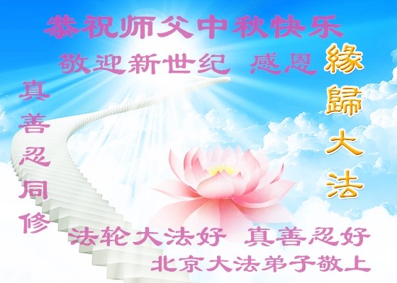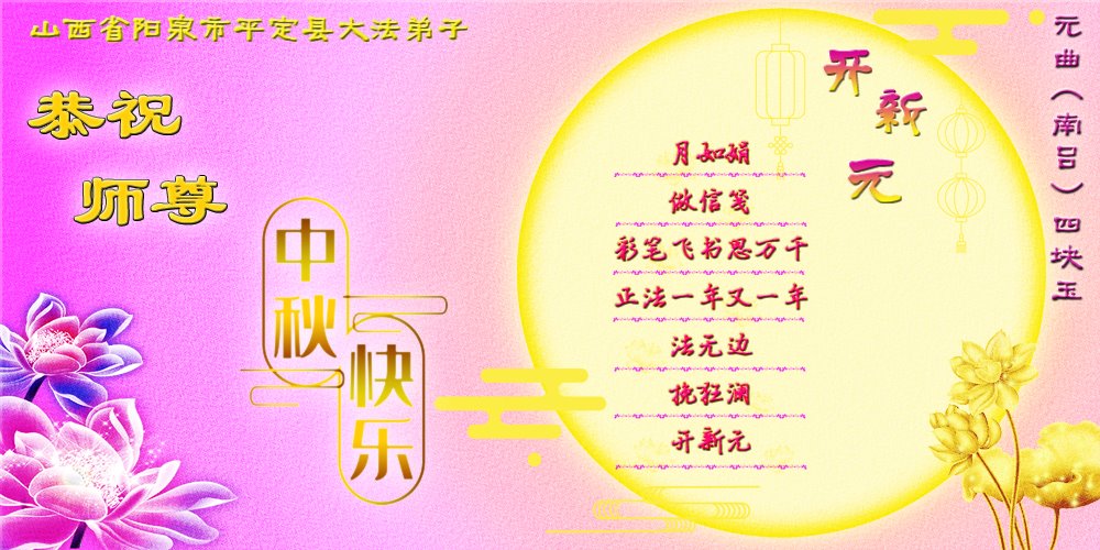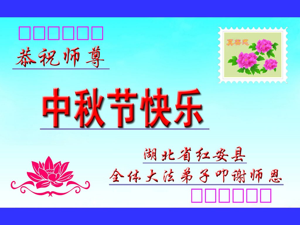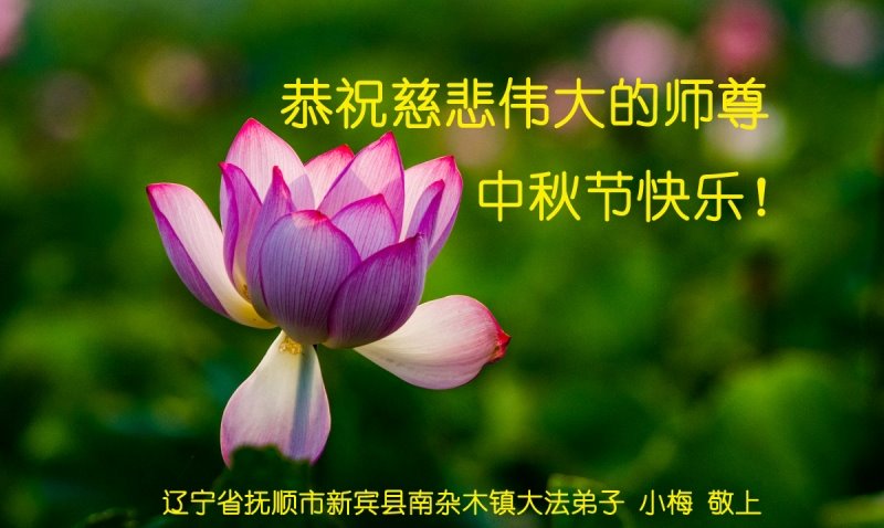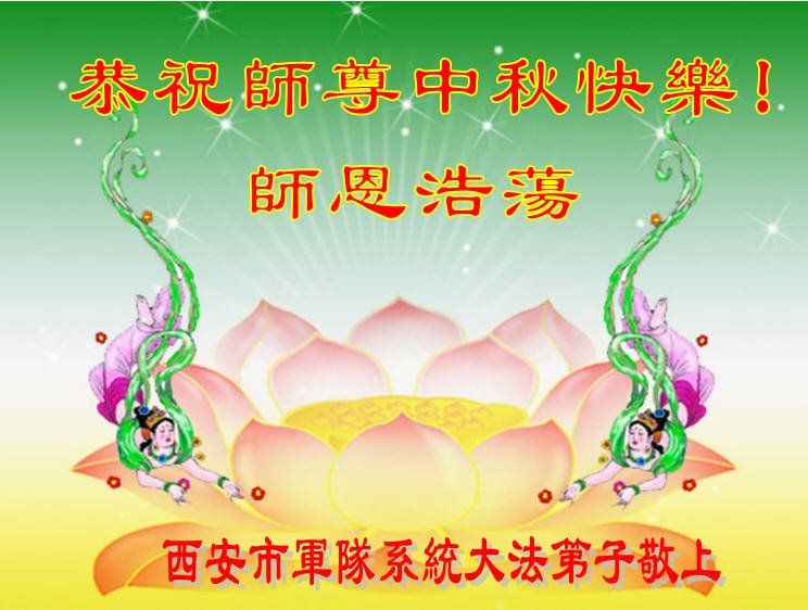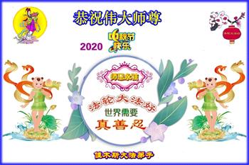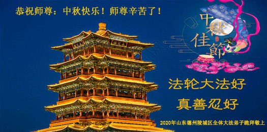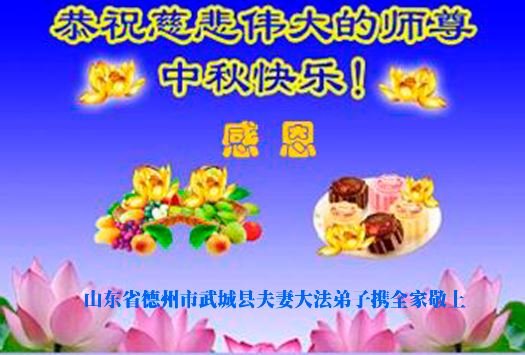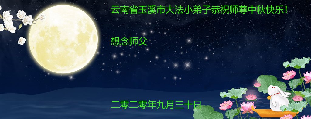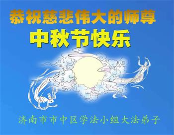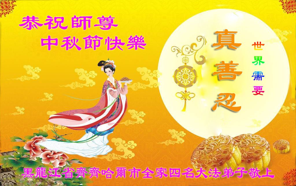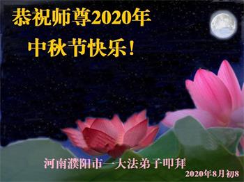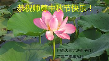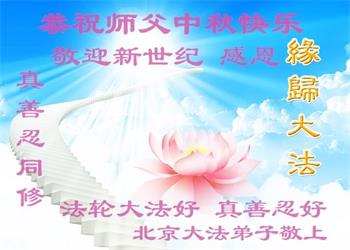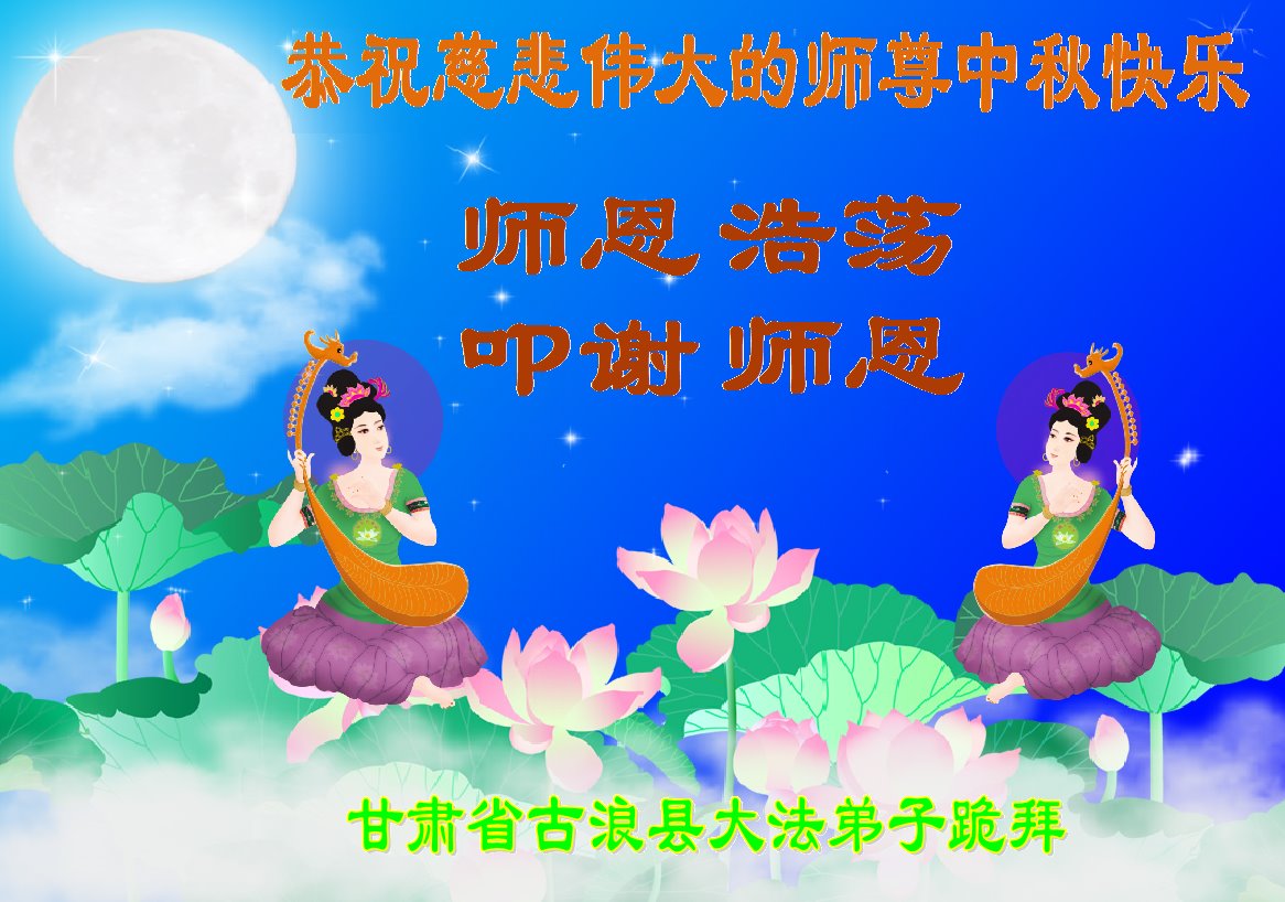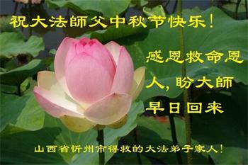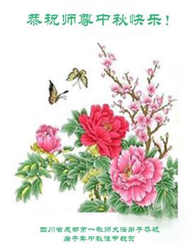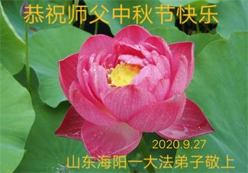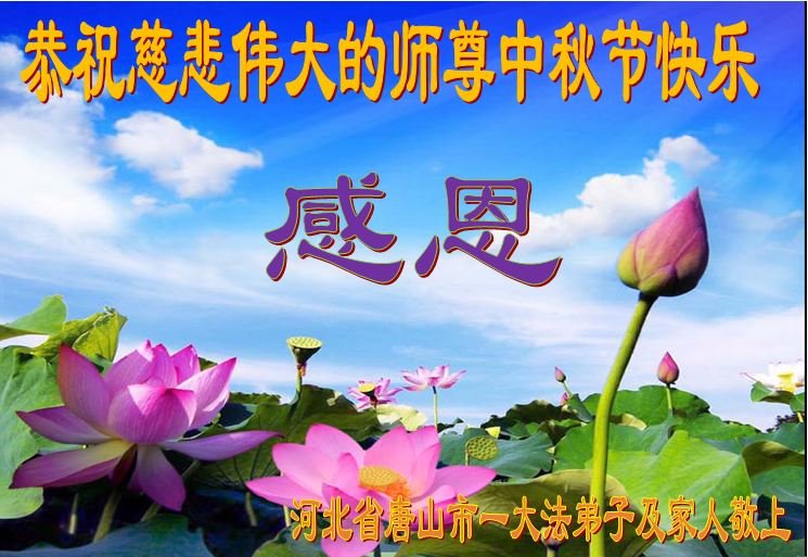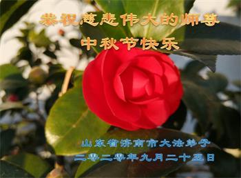 中国民众在贺词中写道:在中秋节来临之际,感恩大法师父的慈悲保护!我们盼望您早日回归中土,恩泽百姓,让亿万个家庭解开中共的枷锁,让中华民族五千年的文明在中原再现。