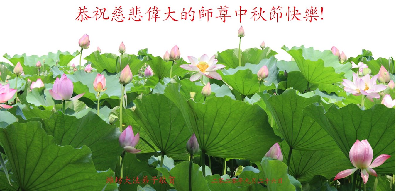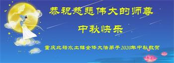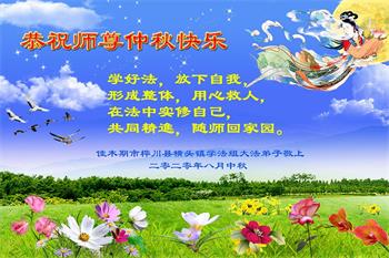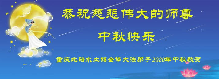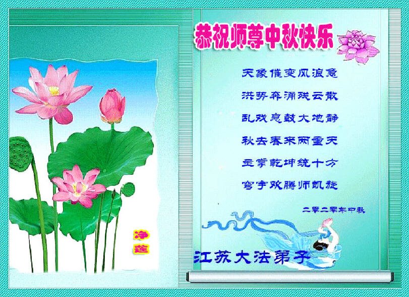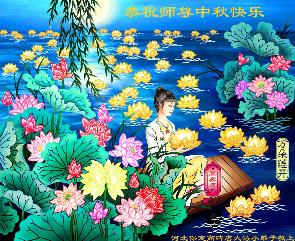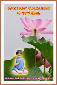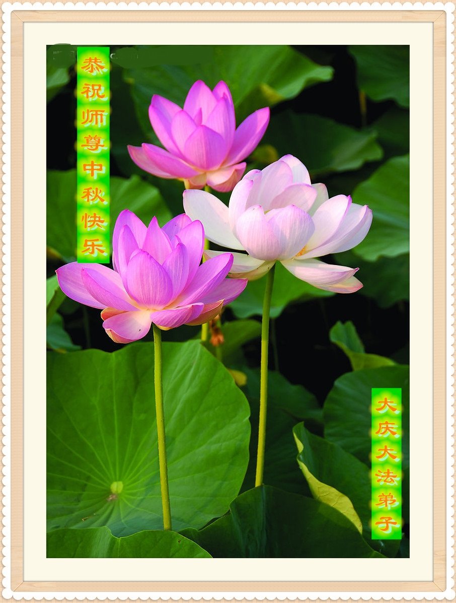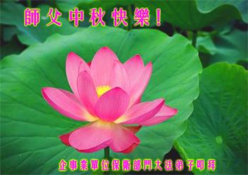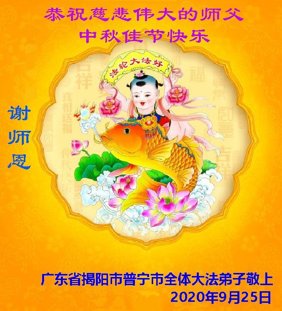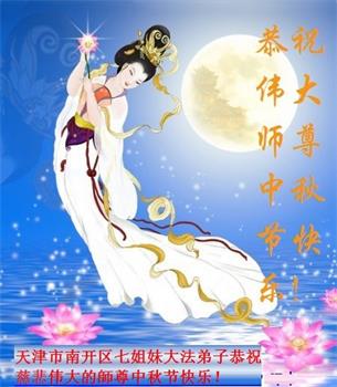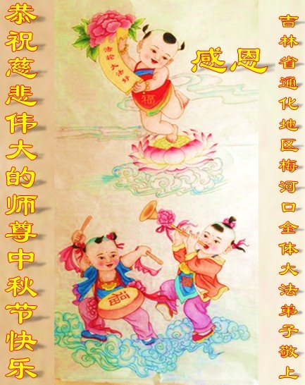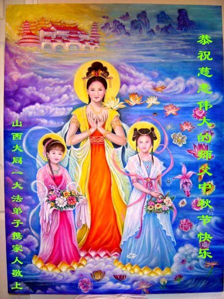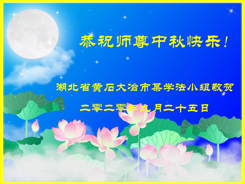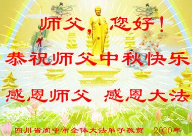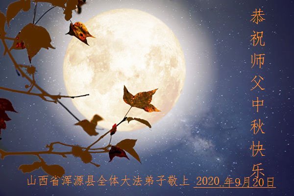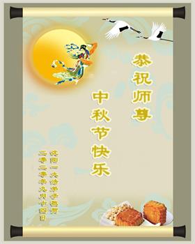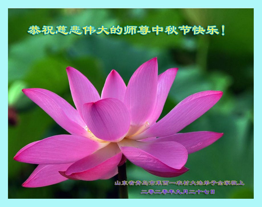中国民众在贺词中写道:在中秋节来临之际,感恩大法师父的慈悲保护!我们盼望您早日回归中土,恩泽百姓,让亿万个家庭解开中共的枷锁,让中华民族五千年的文明在中原再现。