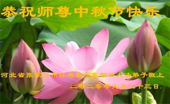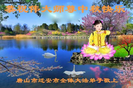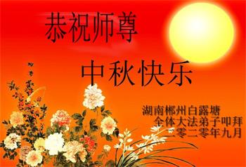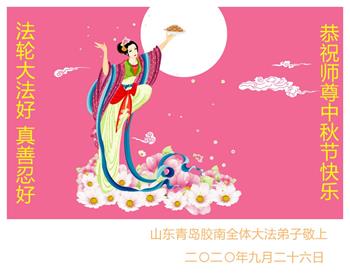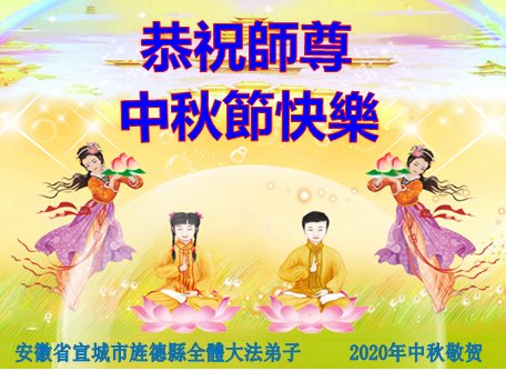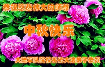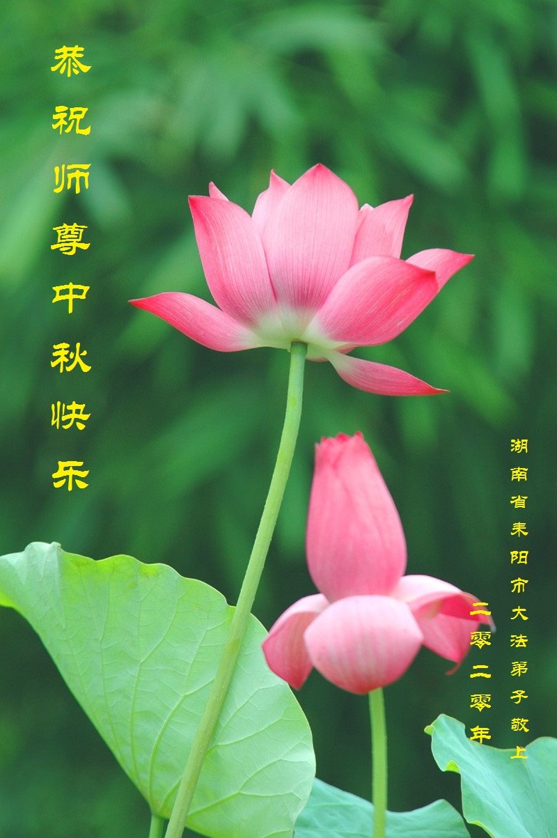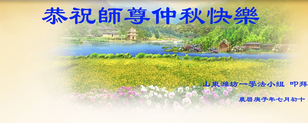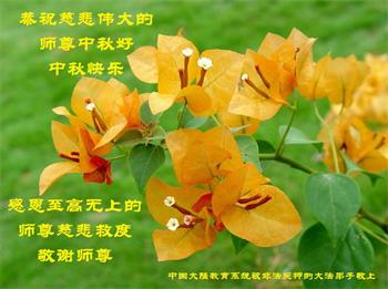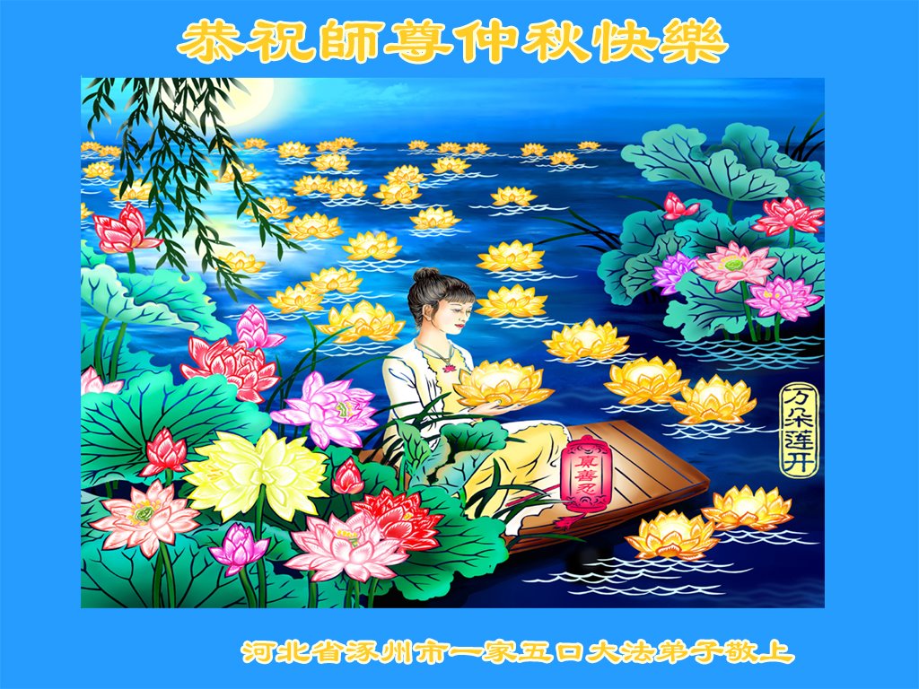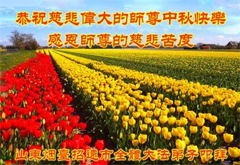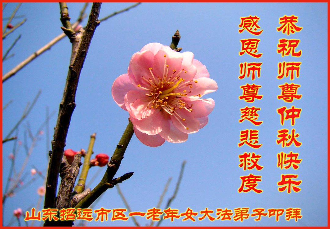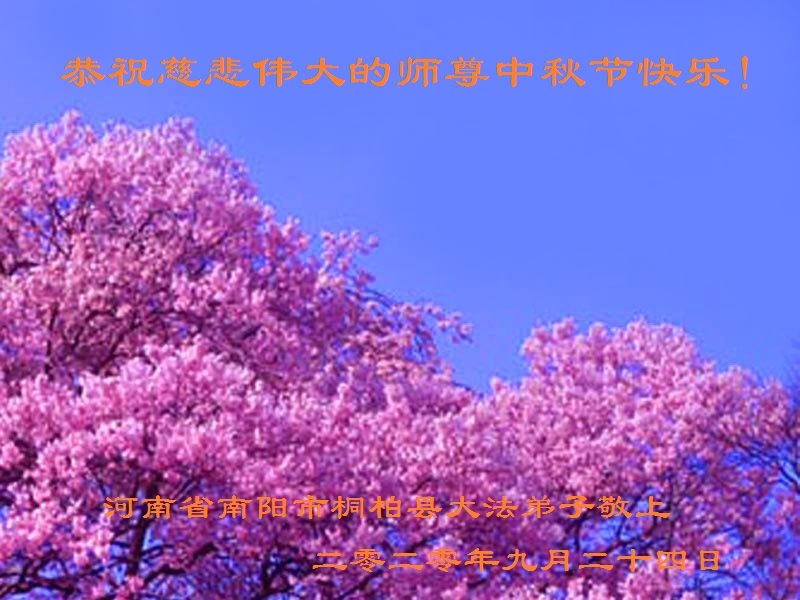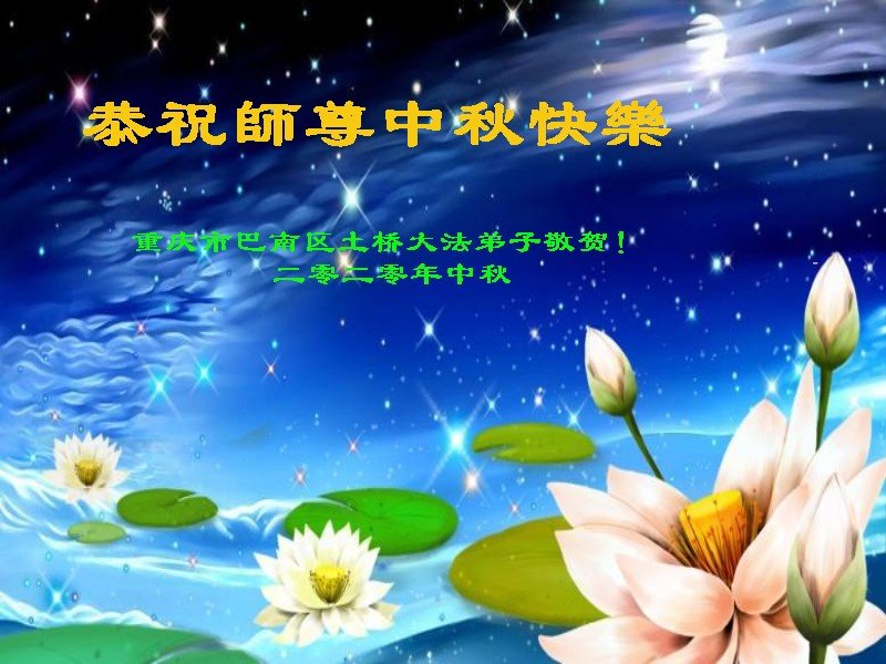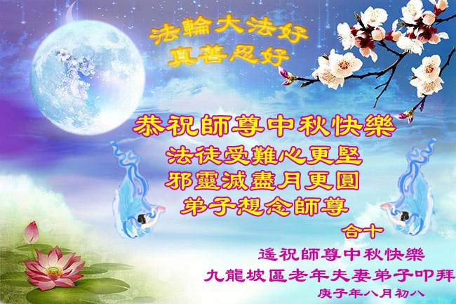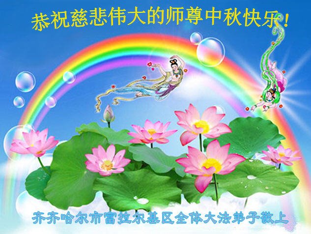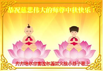 中国民众在贺词中写道:在中秋节来临之际,感恩大法师父的慈悲保护!我们盼望您早日回归中土,恩泽百姓,让亿万个家庭解开中共的枷锁,让中华民族五千年的文明在中原再现。