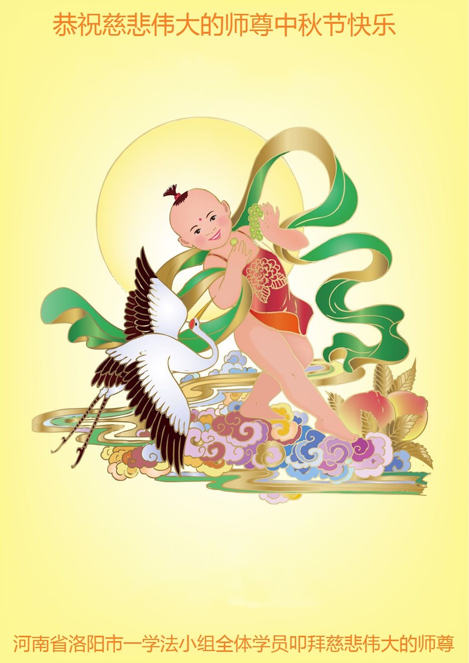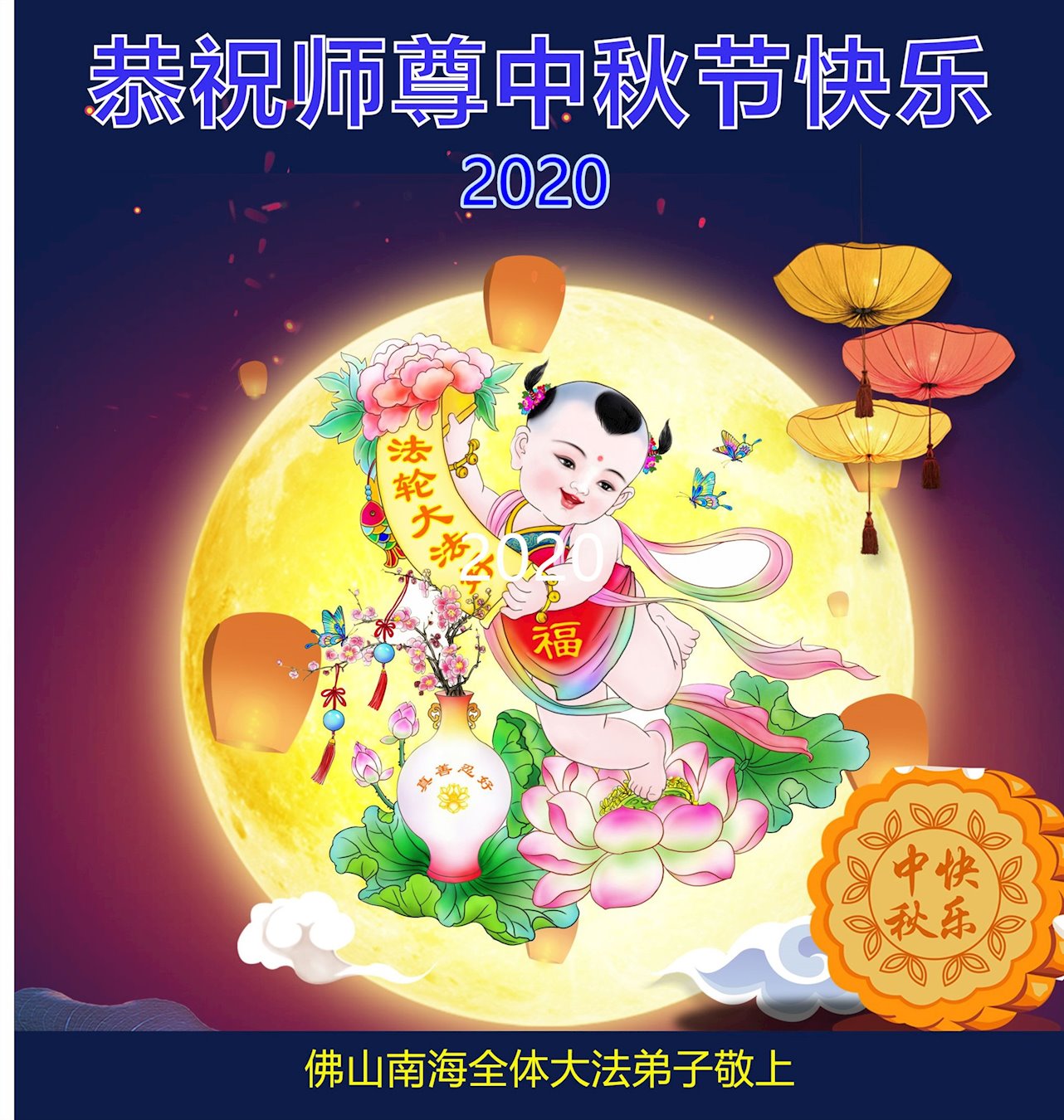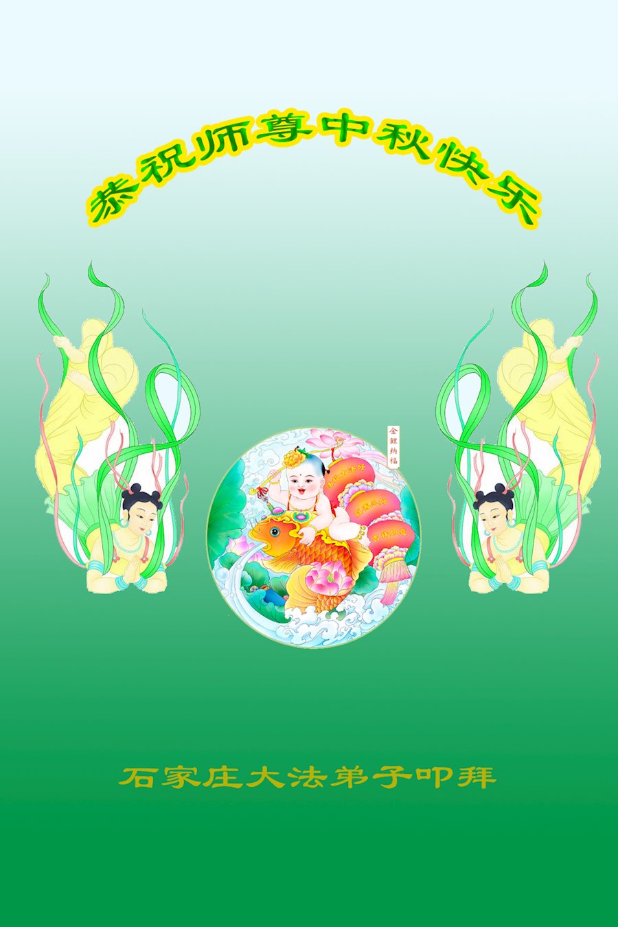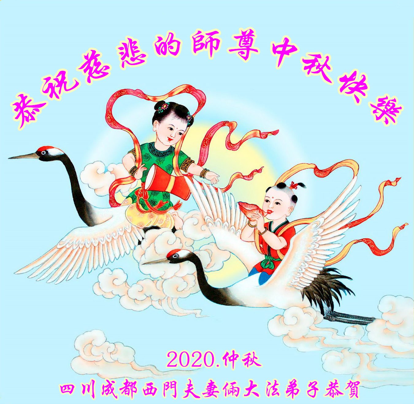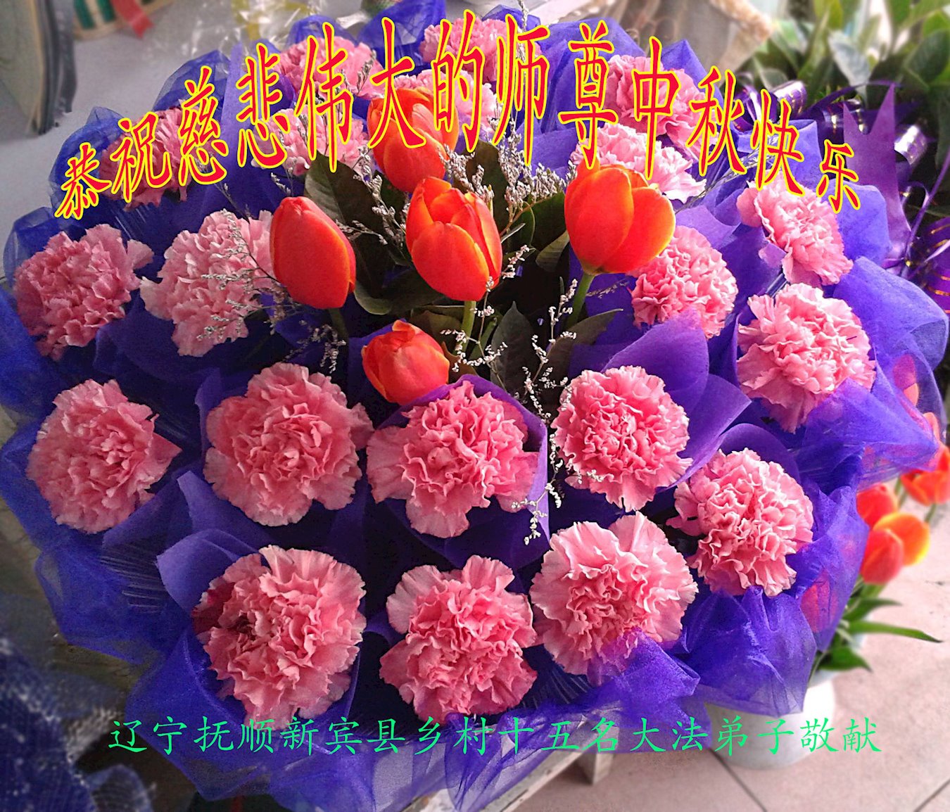 中国民众在贺词中写道:在中秋节来临之际,感恩大法师父的慈悲保护!我们盼望您早日回归中土,恩泽百姓,让亿万个家庭解开中共的枷锁,让中华民族五千年的文明在中原再现。