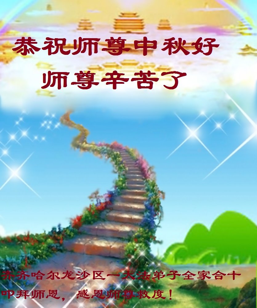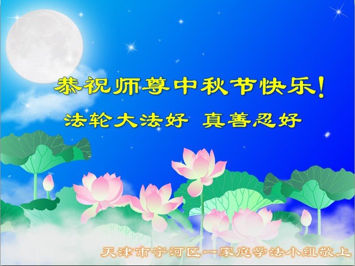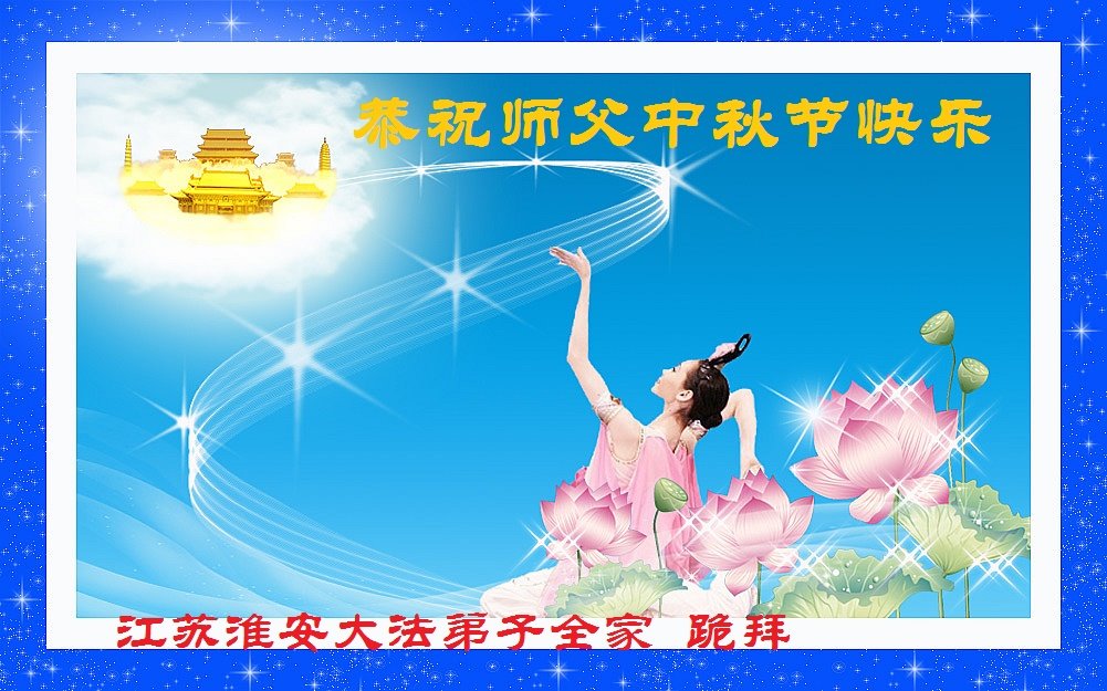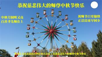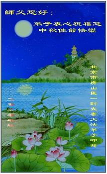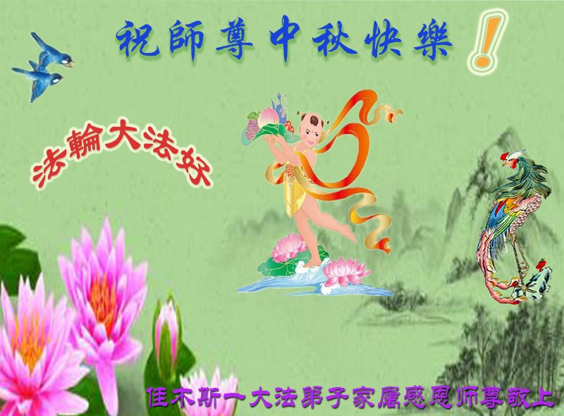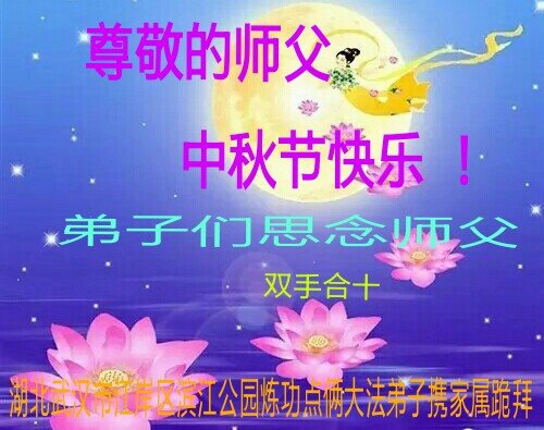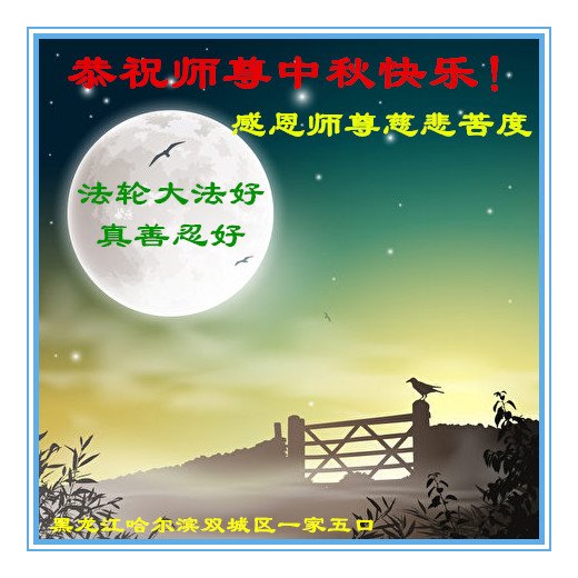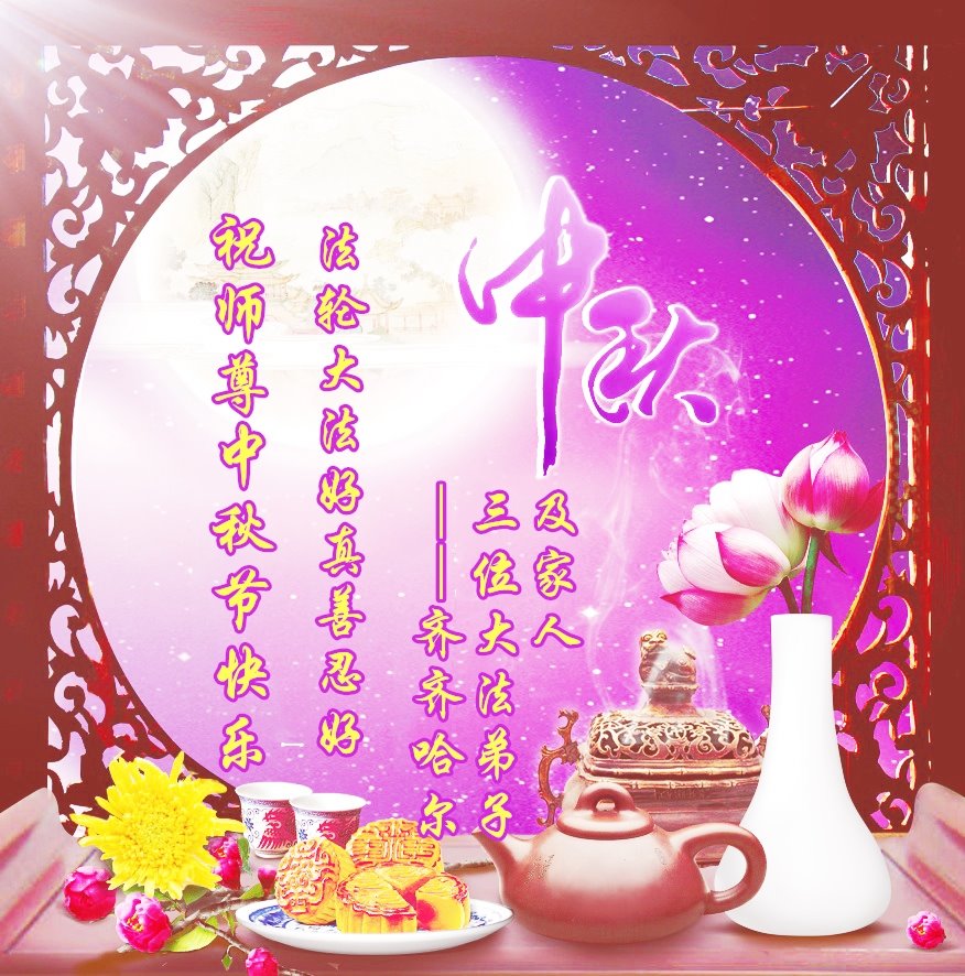作为大法弟子家属在此恭祝师父中秋节快乐!这些年我们见证了中共邪党的邪恶,也见证了法轮大法的伟大,希望真相早日大白于天下!