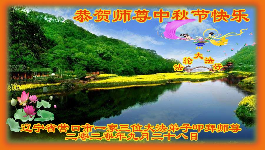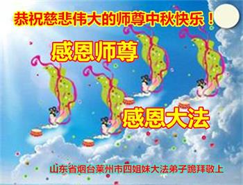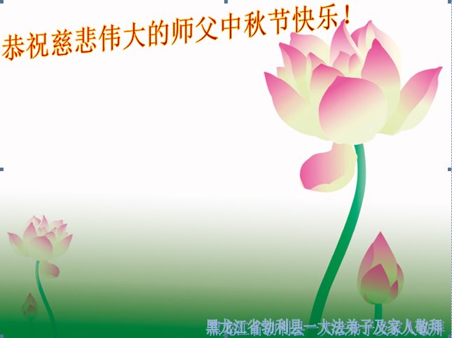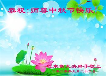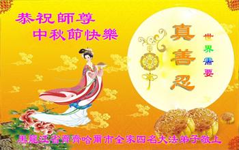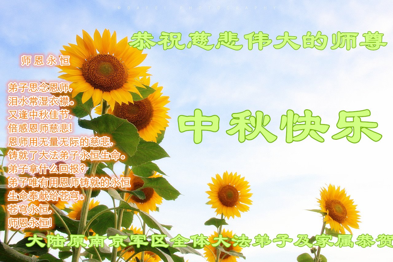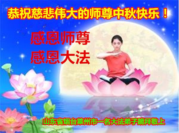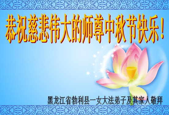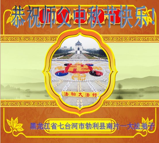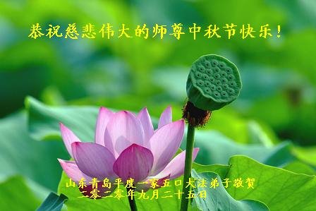 作为大法弟子家属在此恭祝师父中秋节快乐!这些年我们见证了中共邪党的邪恶,也见证了法轮大法的伟大,希望真相早日大白于天下!