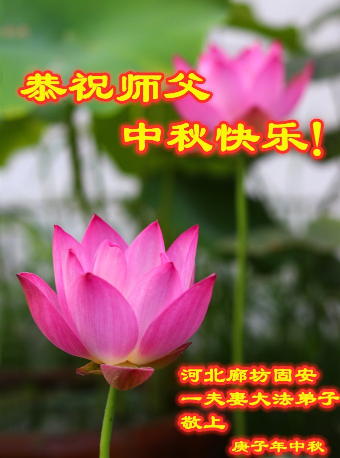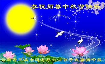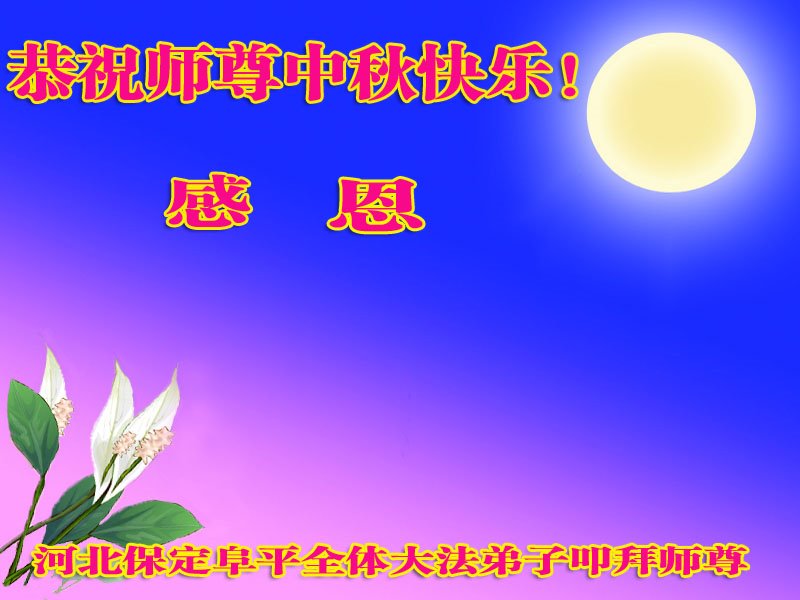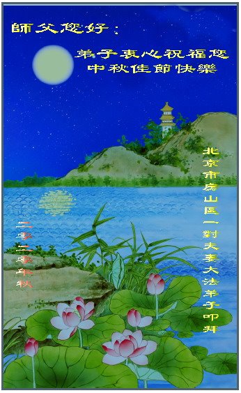 中秋节来临,今天我和丈夫表达心愿,一同说出:“祝法轮功师父中秋节快乐!法轮大法好!”