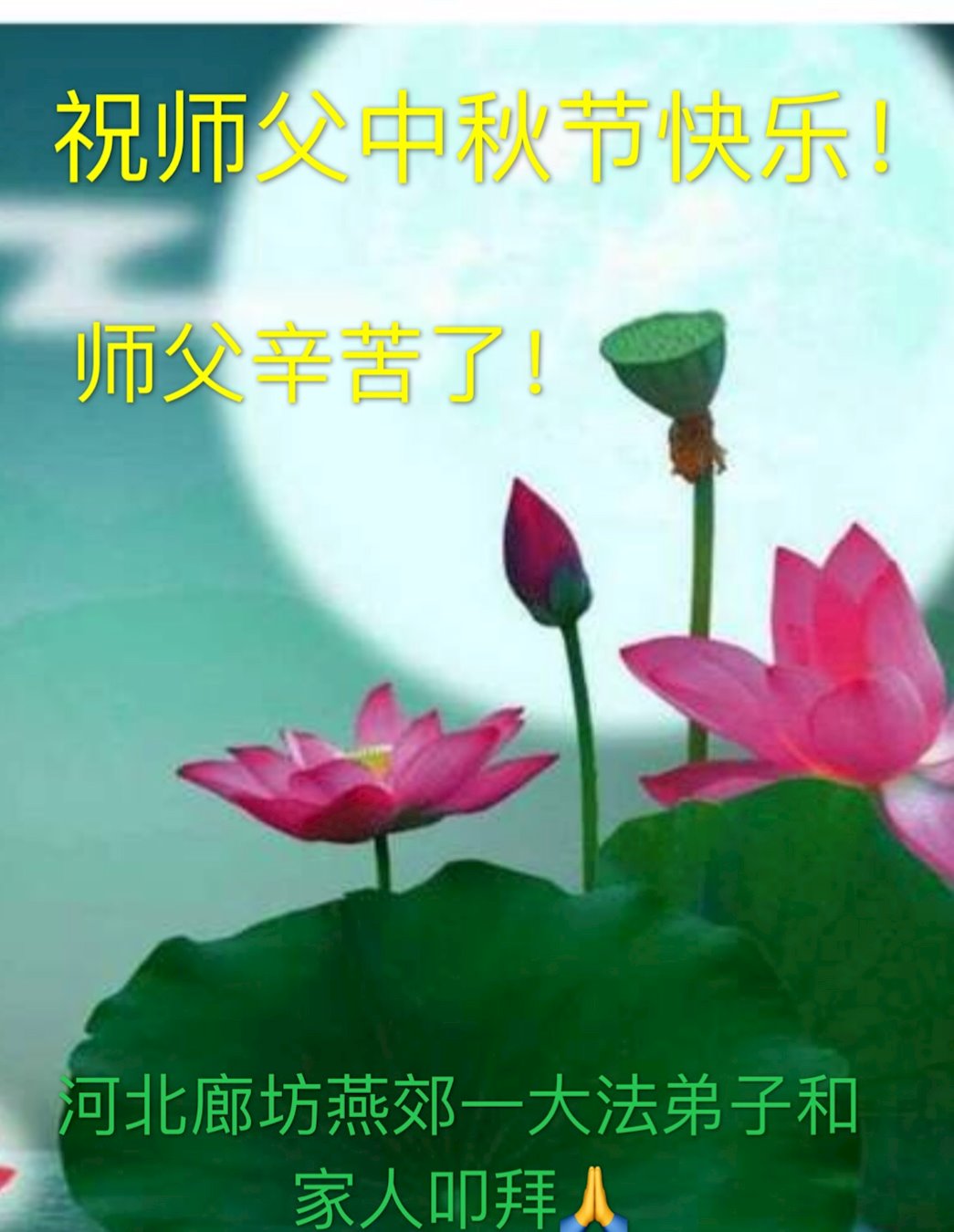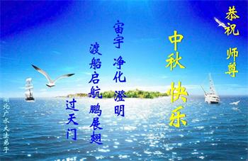 月圆时,人团圆,值此中秋佳节到来之际,弟子及明真相的家人恭贺师尊节日快乐!