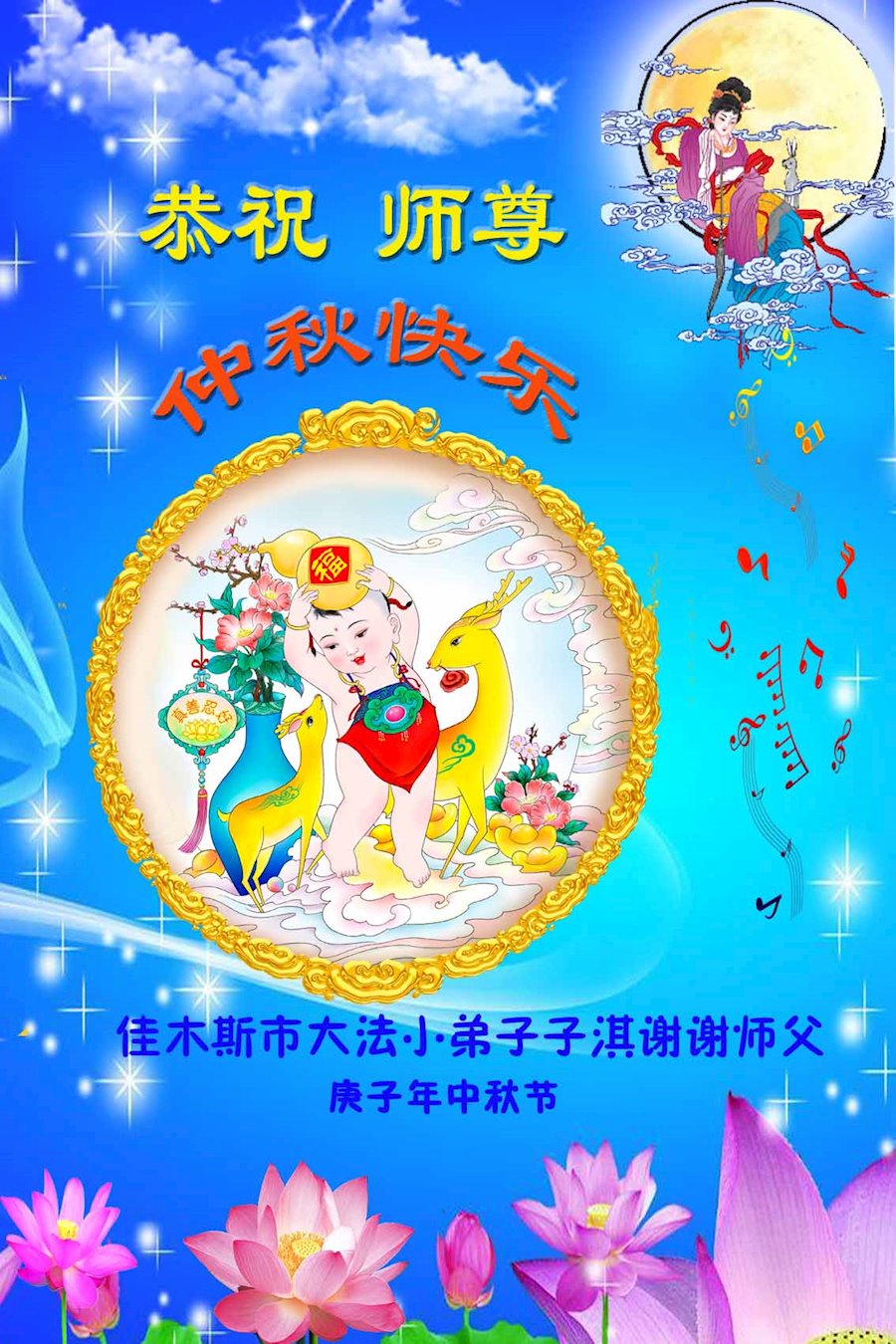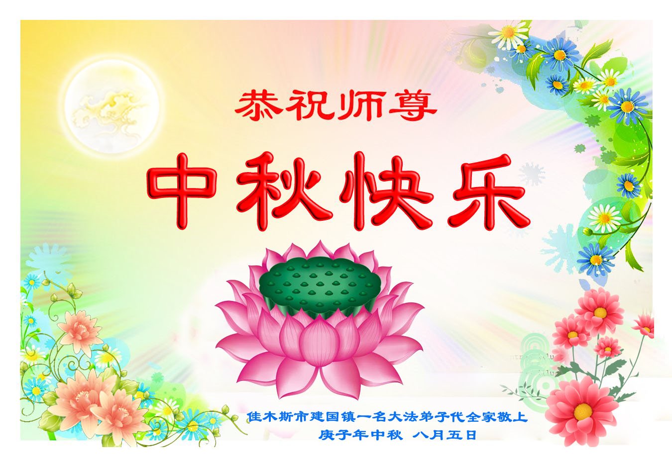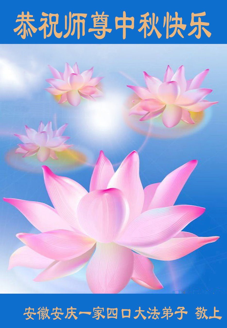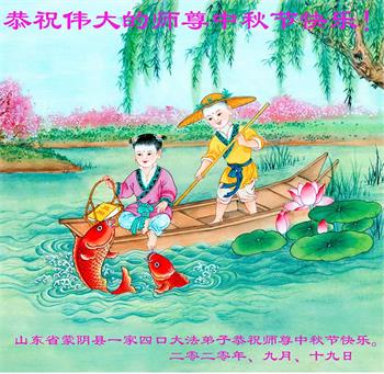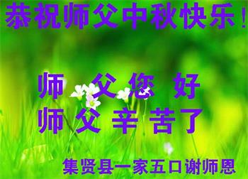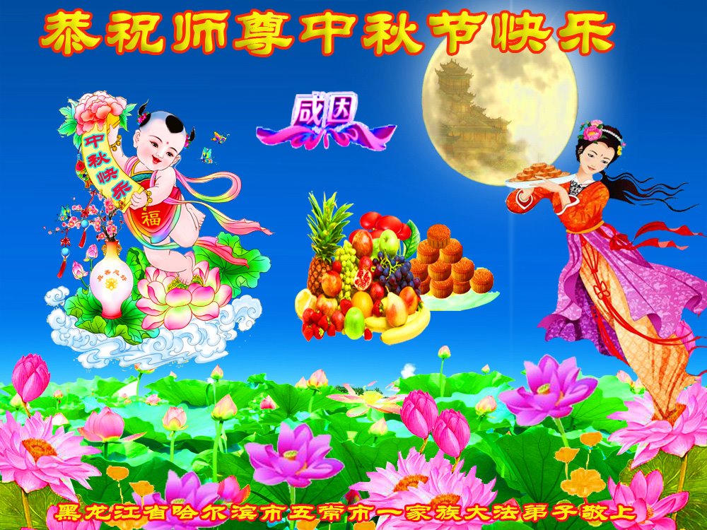 大法小弟子和父母同修及明白真相的家人恭祝伟大的师尊中秋节快乐!