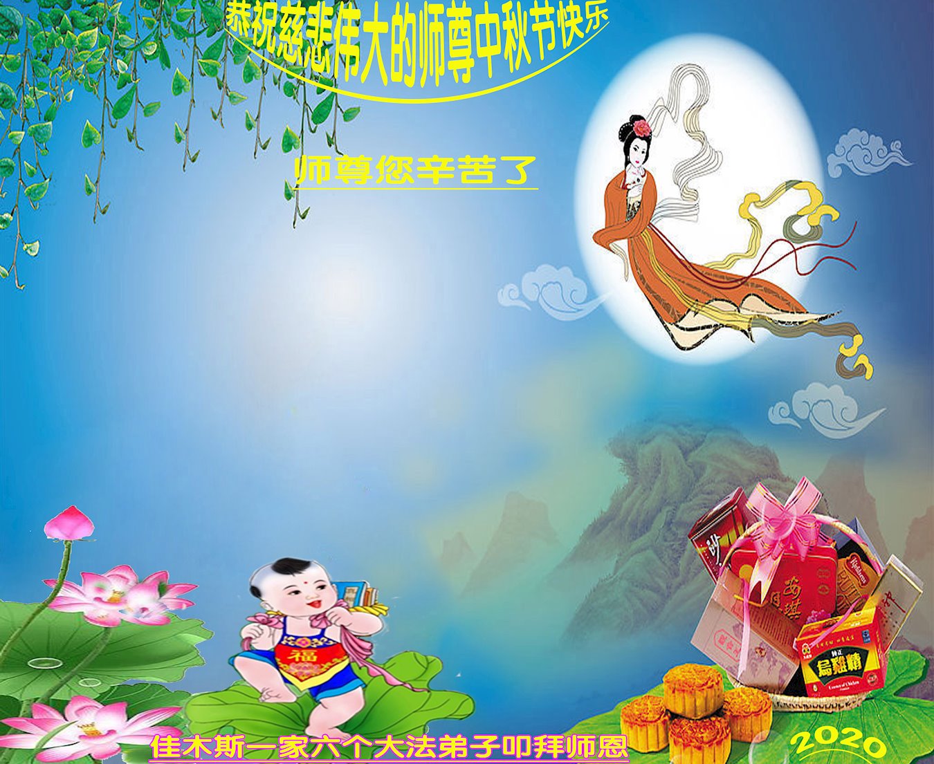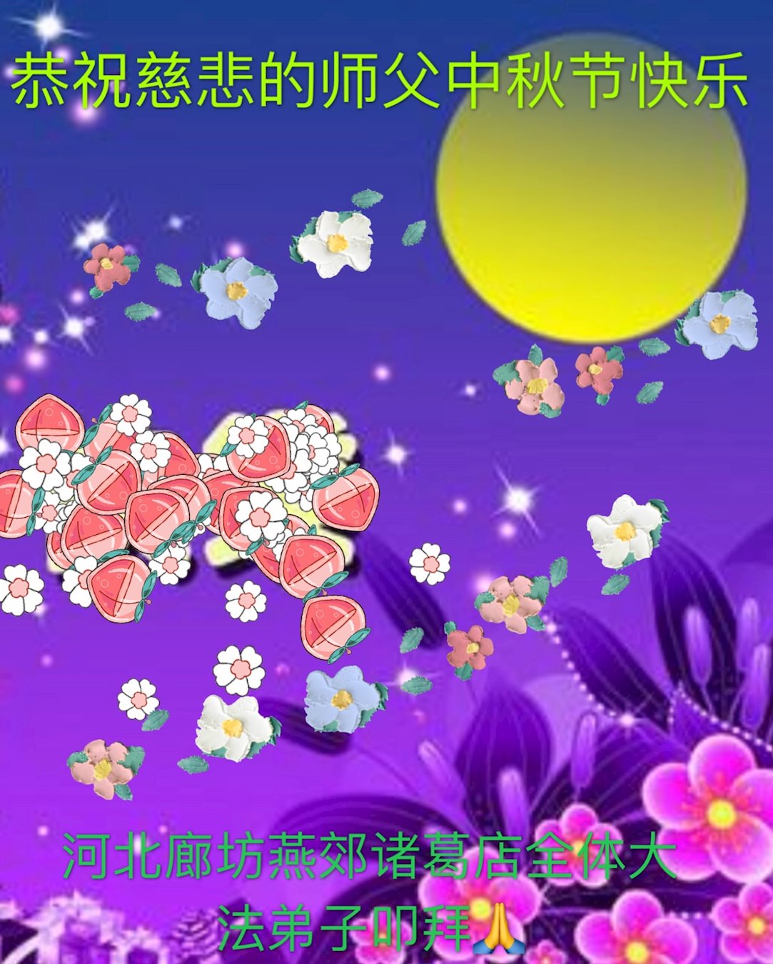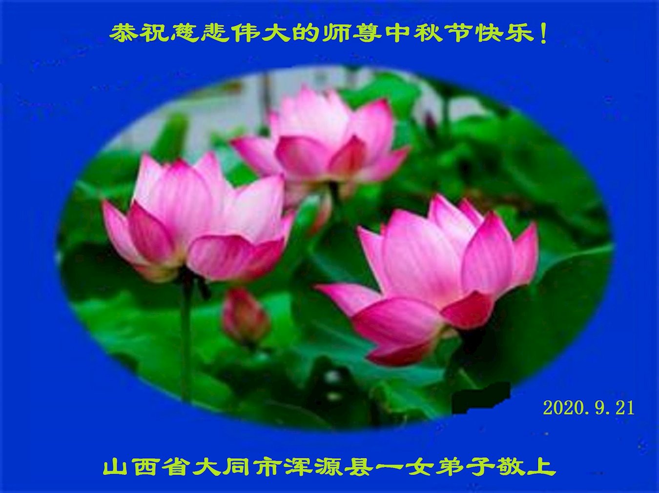 大法小弟子和父母同修及明白真相的家人恭祝伟大的师尊中秋节快乐!