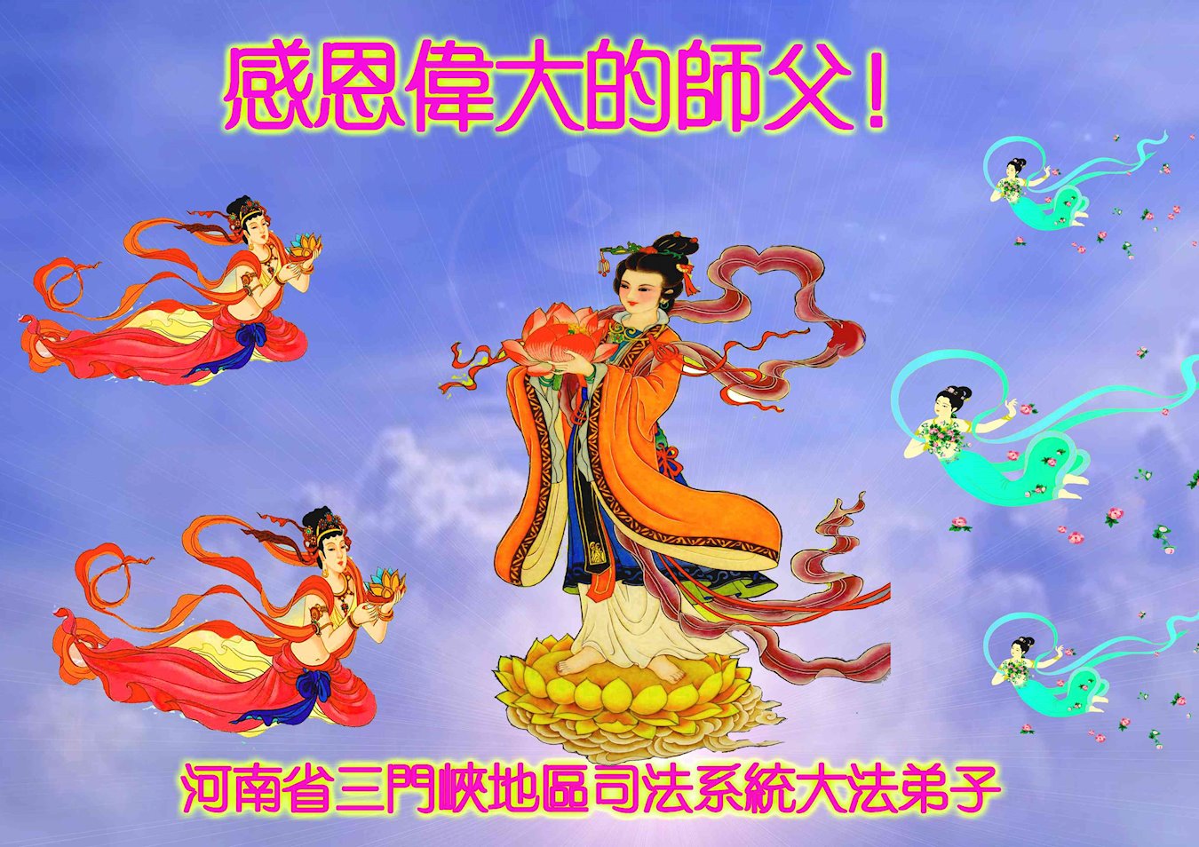 在这佳节到来之日,我代表全家谢谢慈悲伟大的师尊,叩拜师尊。
