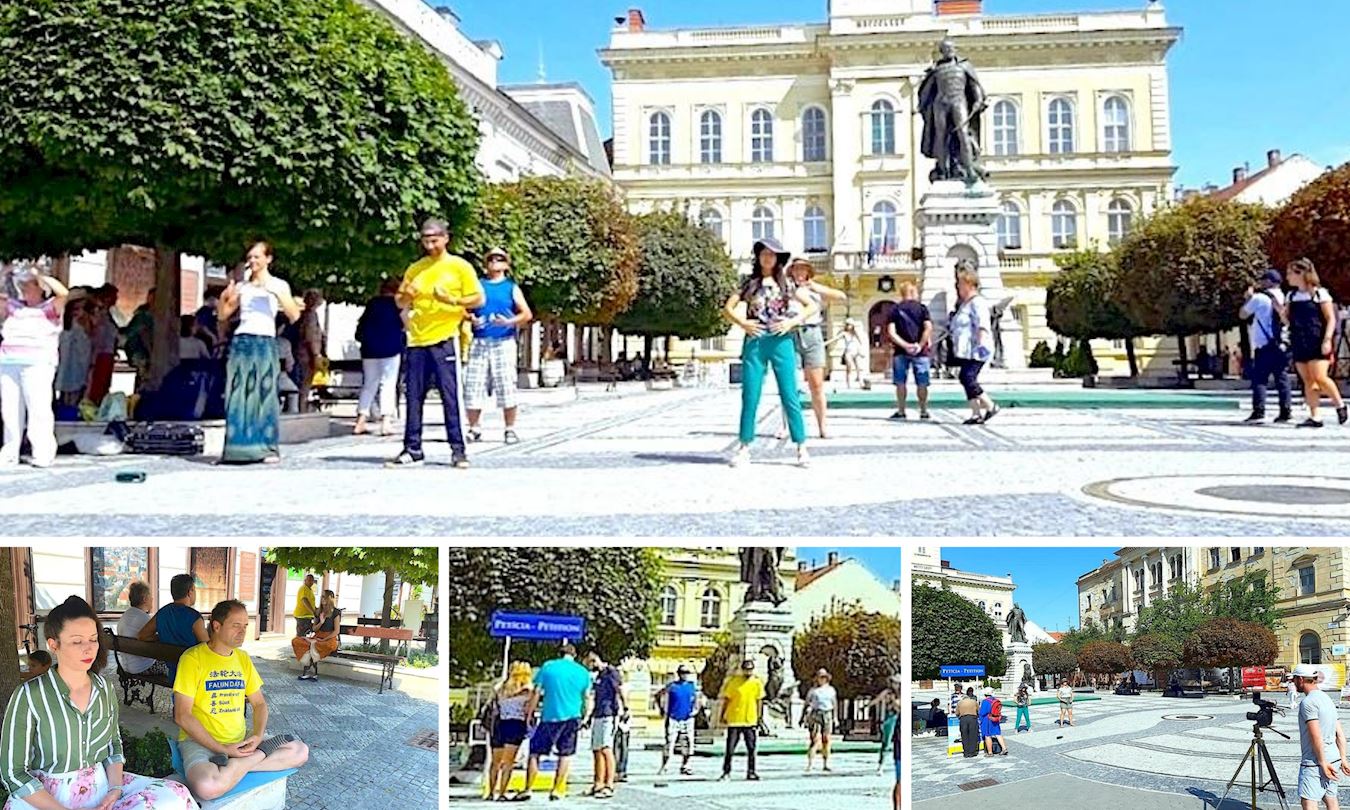 一对来自德国的老年夫妇被学员们的炼功场景所吸引,驻足观看并与学员交谈了起来。当了解到善良的法轮功学员因为坚持信仰,坚持“真善忍”的修炼原则而遭到中共的无端抓捕、残酷迫害乃至虐杀,甚至被强行活摘器官的真相后,他们非常震惊。他俩都为能够签名反迫害而感到高兴。与他们同行的还有一位年轻的摄影师,他拍摄了这对老夫妻倾听真相和签名的全过程以及学员们的功法演示。摄影师告诉学员,他俩从多瑙河的发源头开始旅行一直到黑海,他们正在拍摄关于旅行的纪录片, 所以这个反迫害的正义活动会在这个纪录片中出现。