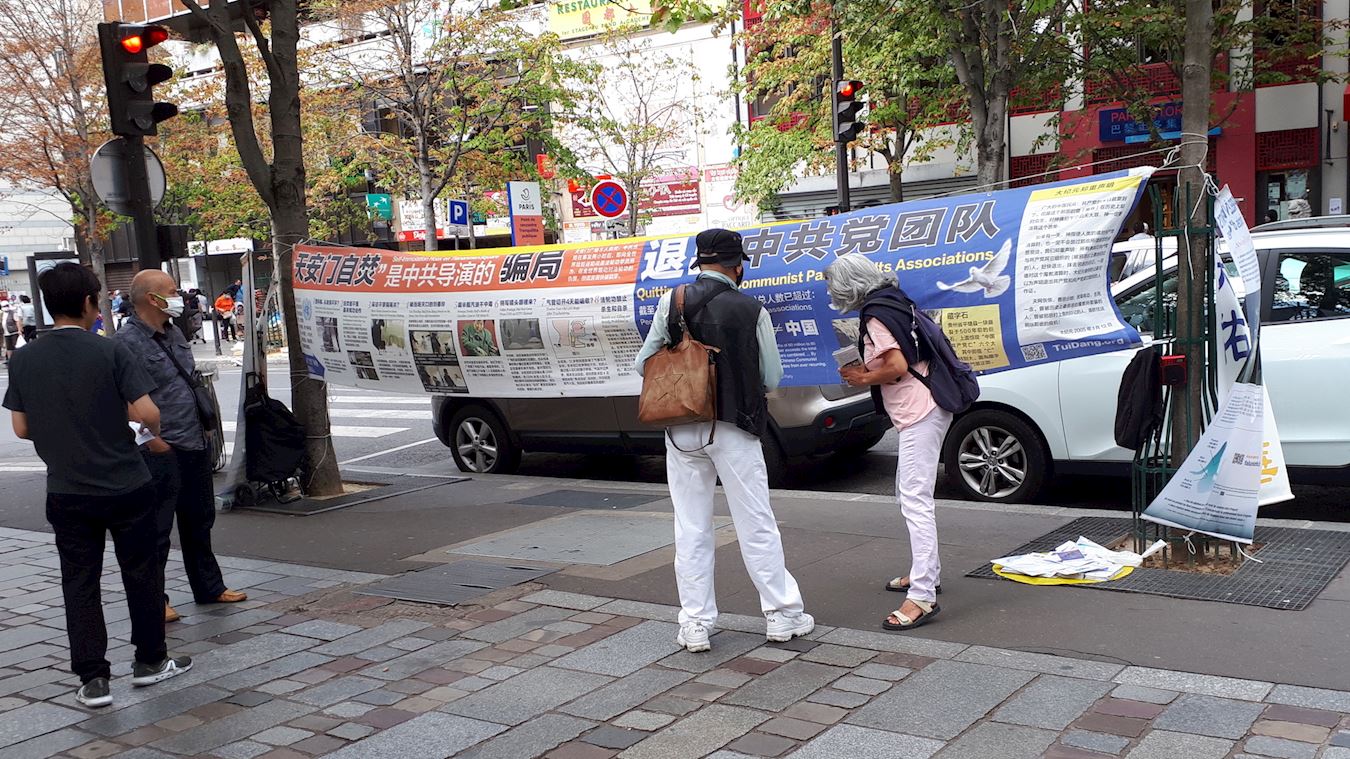 ![]() 图1~2:今年夏天七月中至八月末,法轮功学员在巴黎十三区中国城进行了暑期讲真相的活动。 |